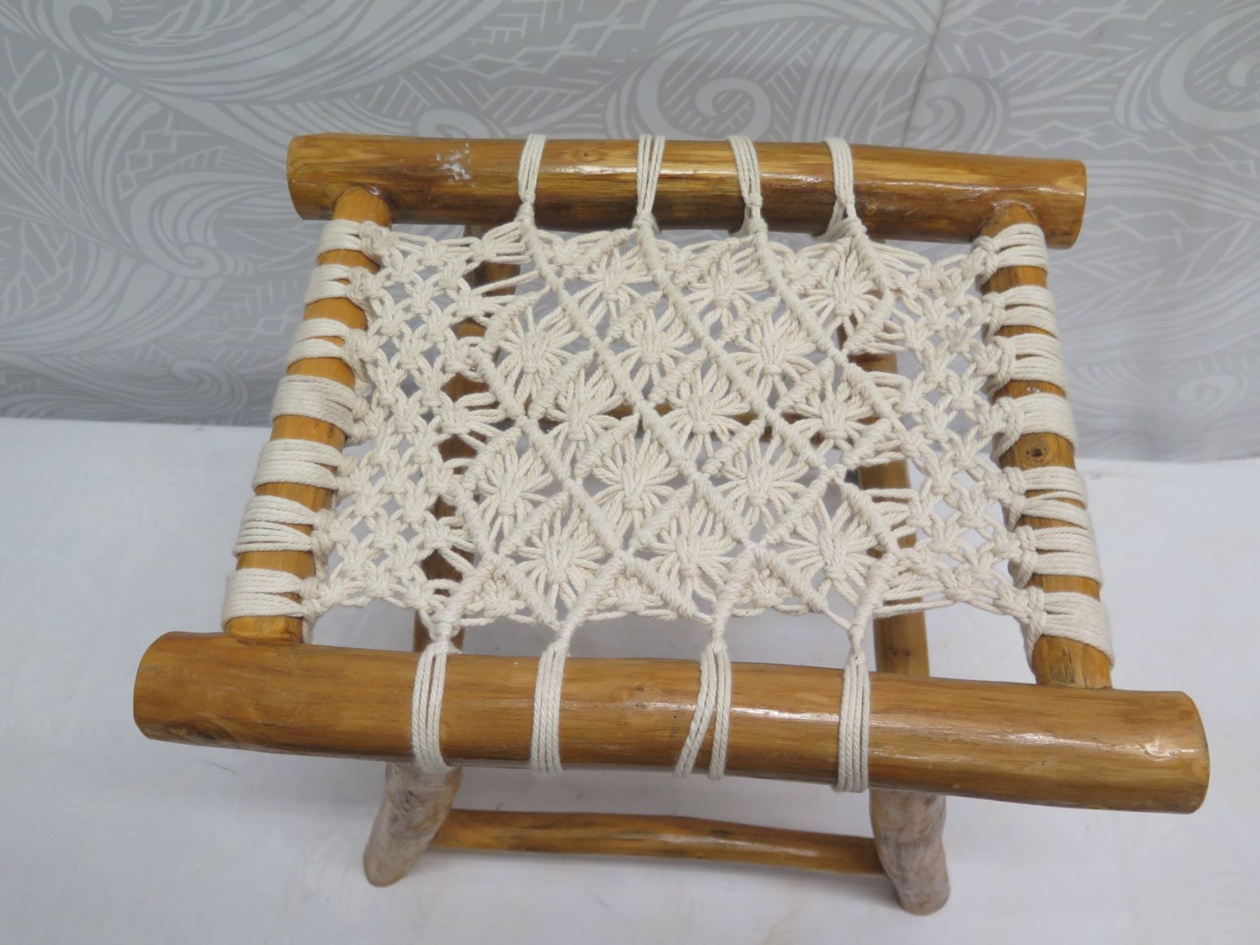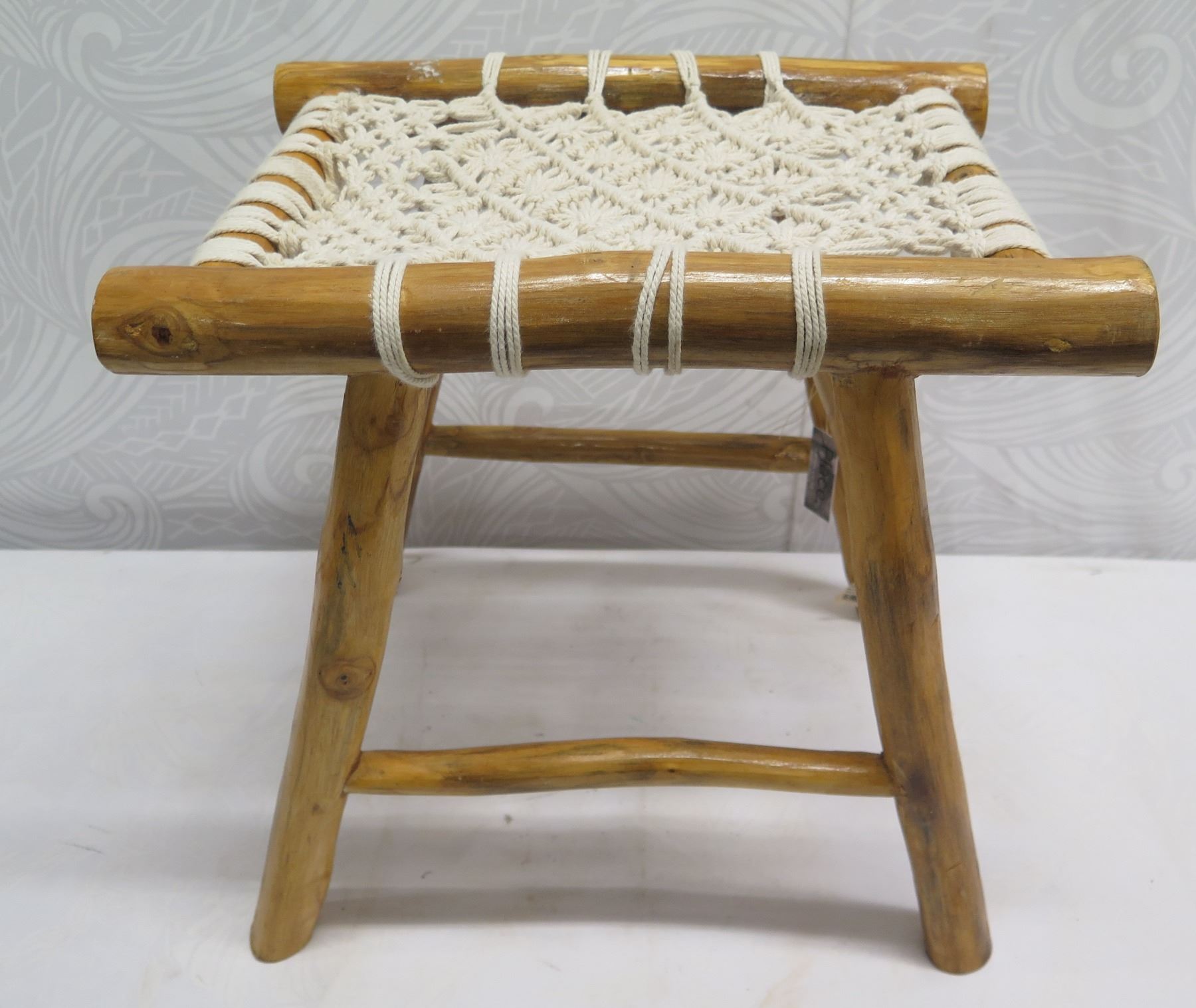 Teak Macrame Stool 18"x15"x18"H (Retail $225)