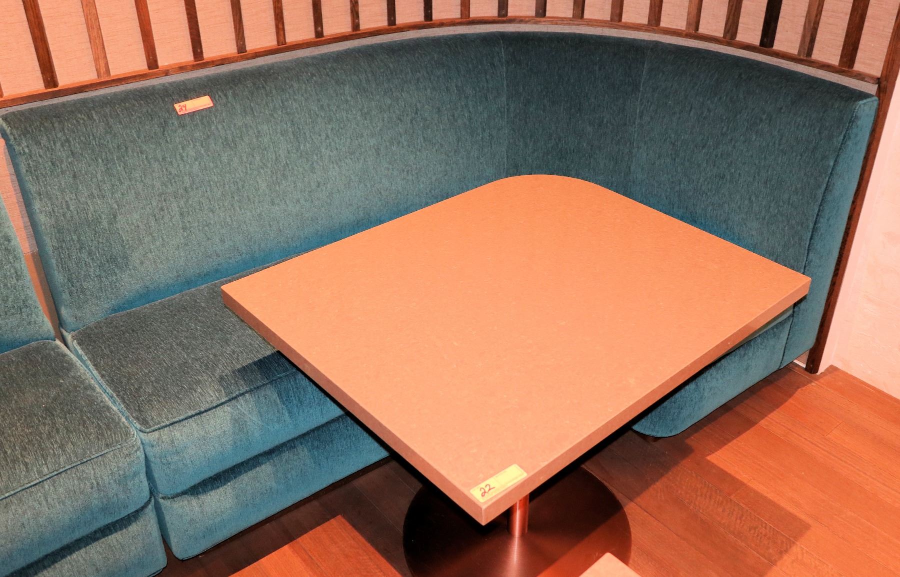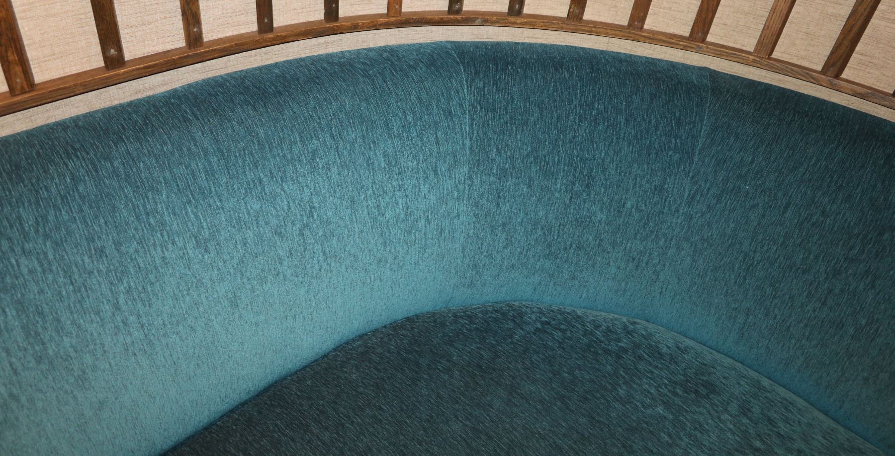 Teal Blue Curved Banquette (Chenille Upholstered), Approx. 6' Overall L, 27.5" Depth