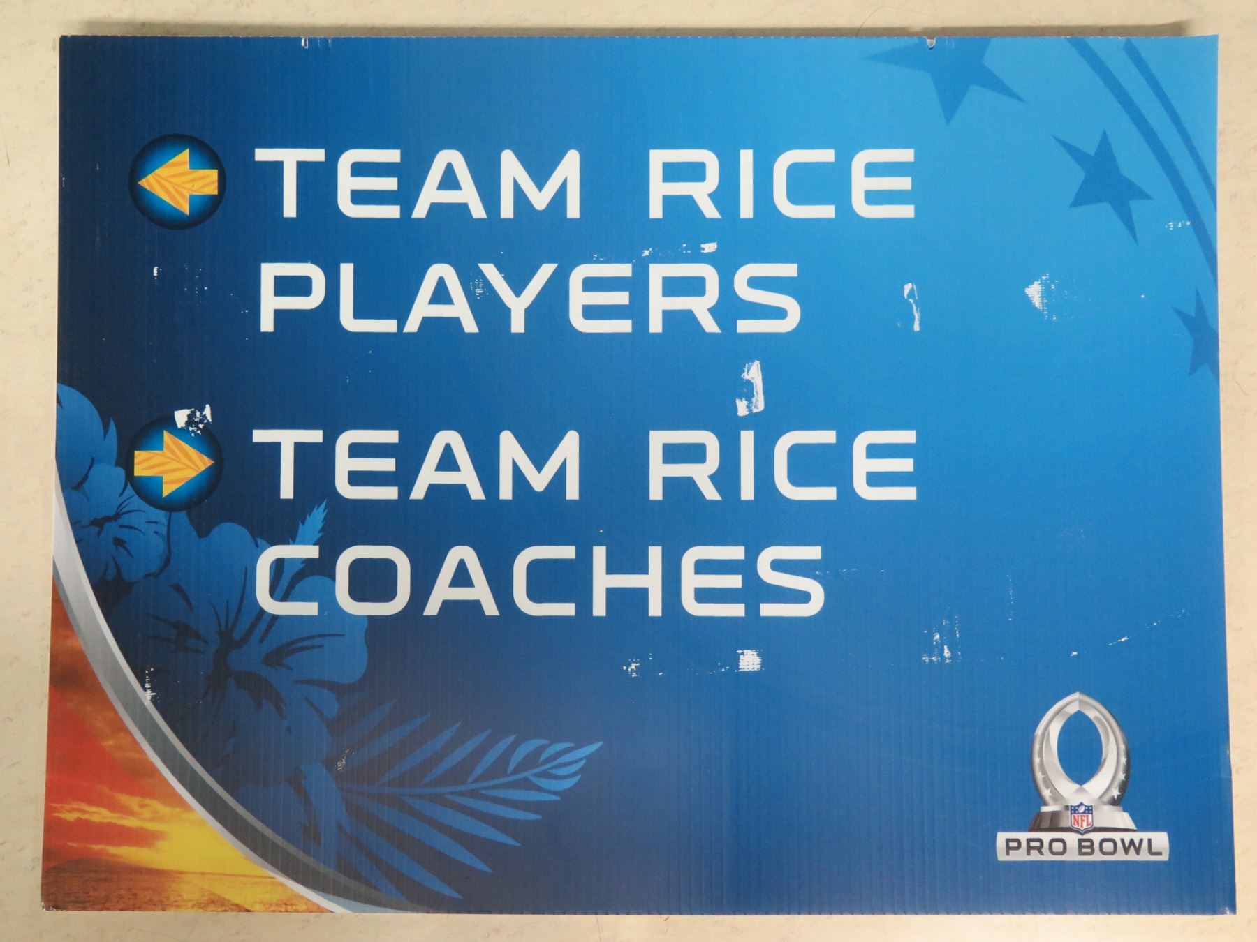 Team Rice Players & Coaches w/ Arrows Pro Bowl Sign 24"x18". Note: Signs will be removed if hanging prior to pick up