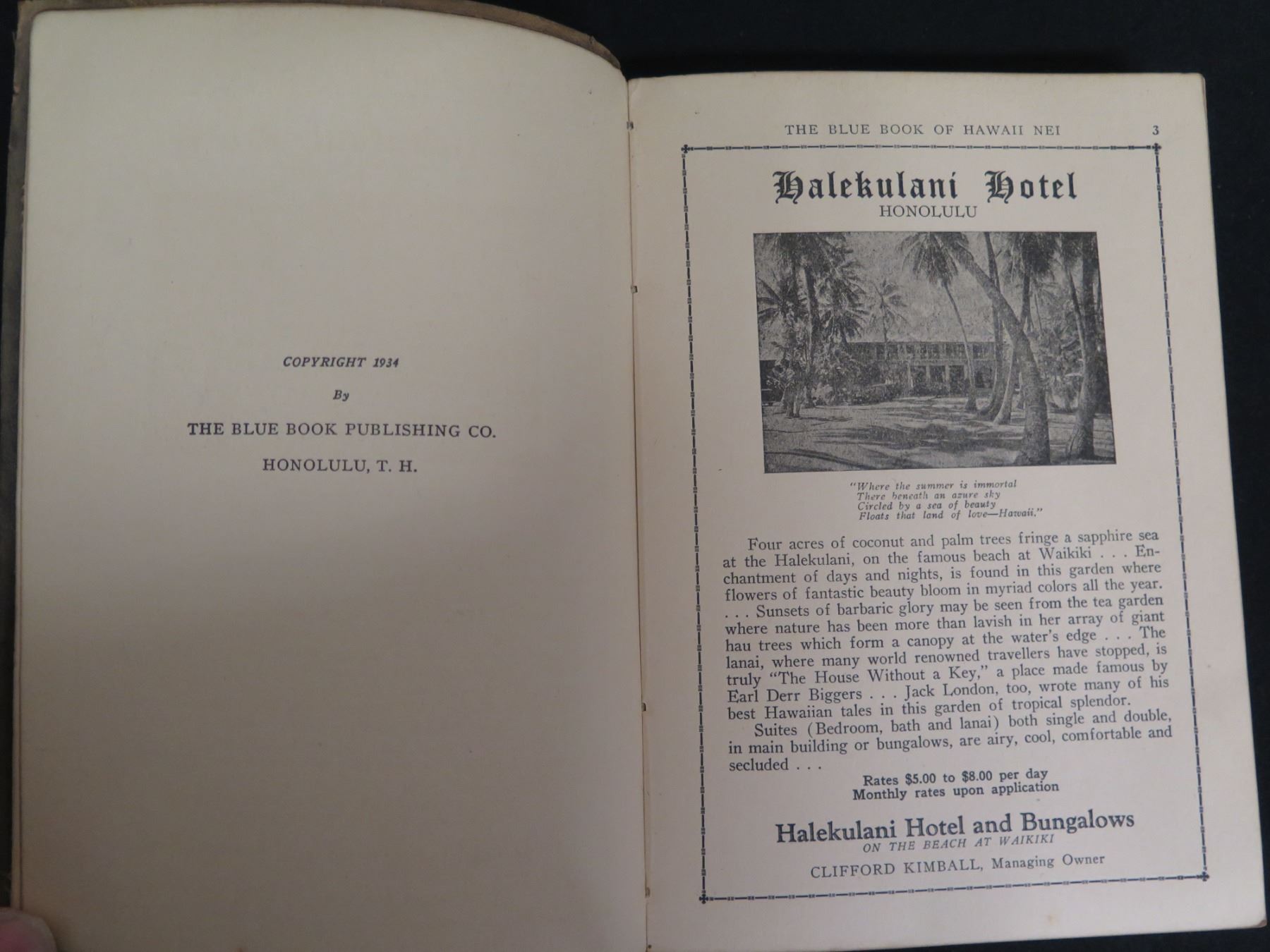 The Blue Book of Hawaii New 1933-34 A Society Directory of Hawaiian Islands Book