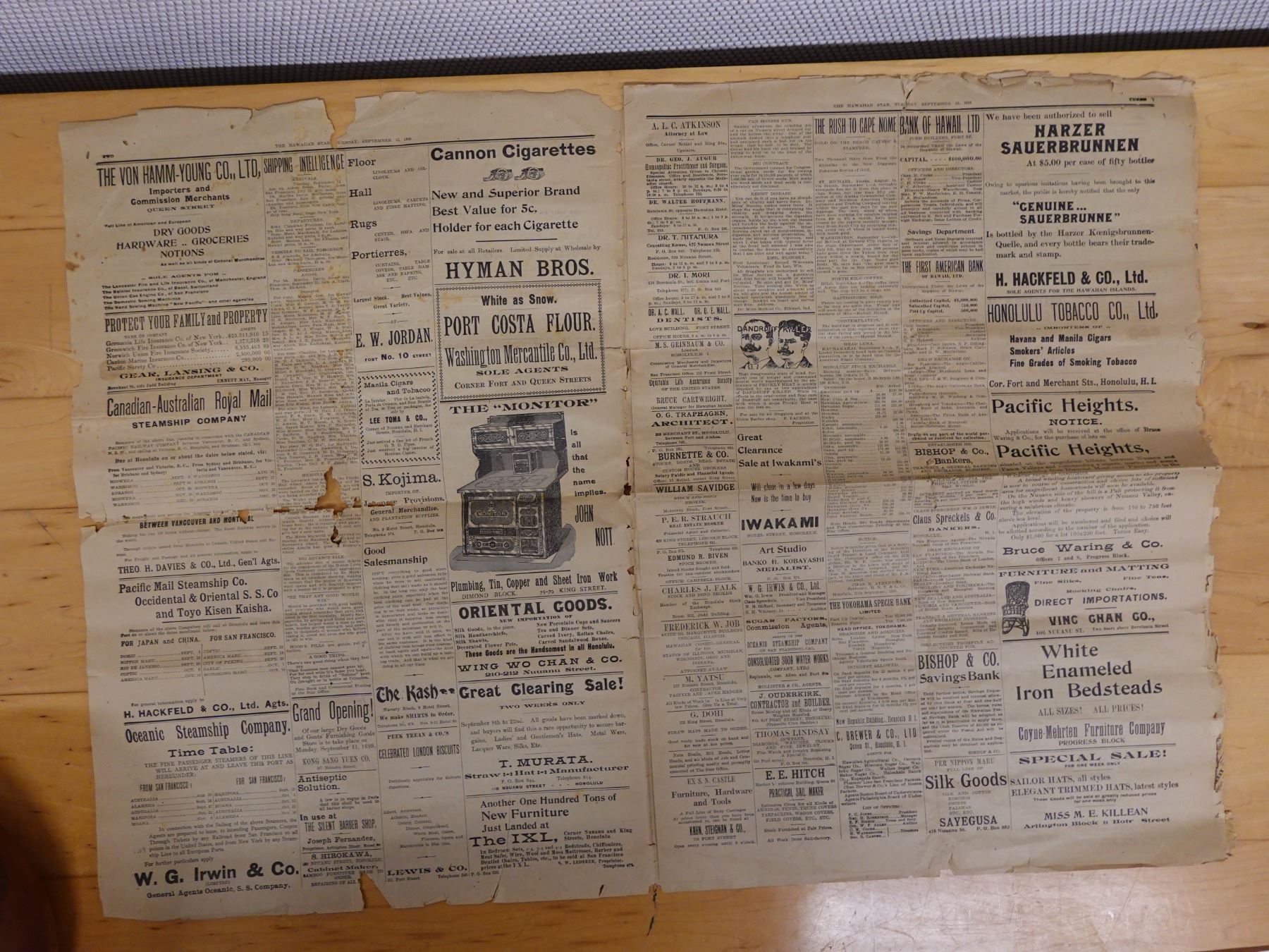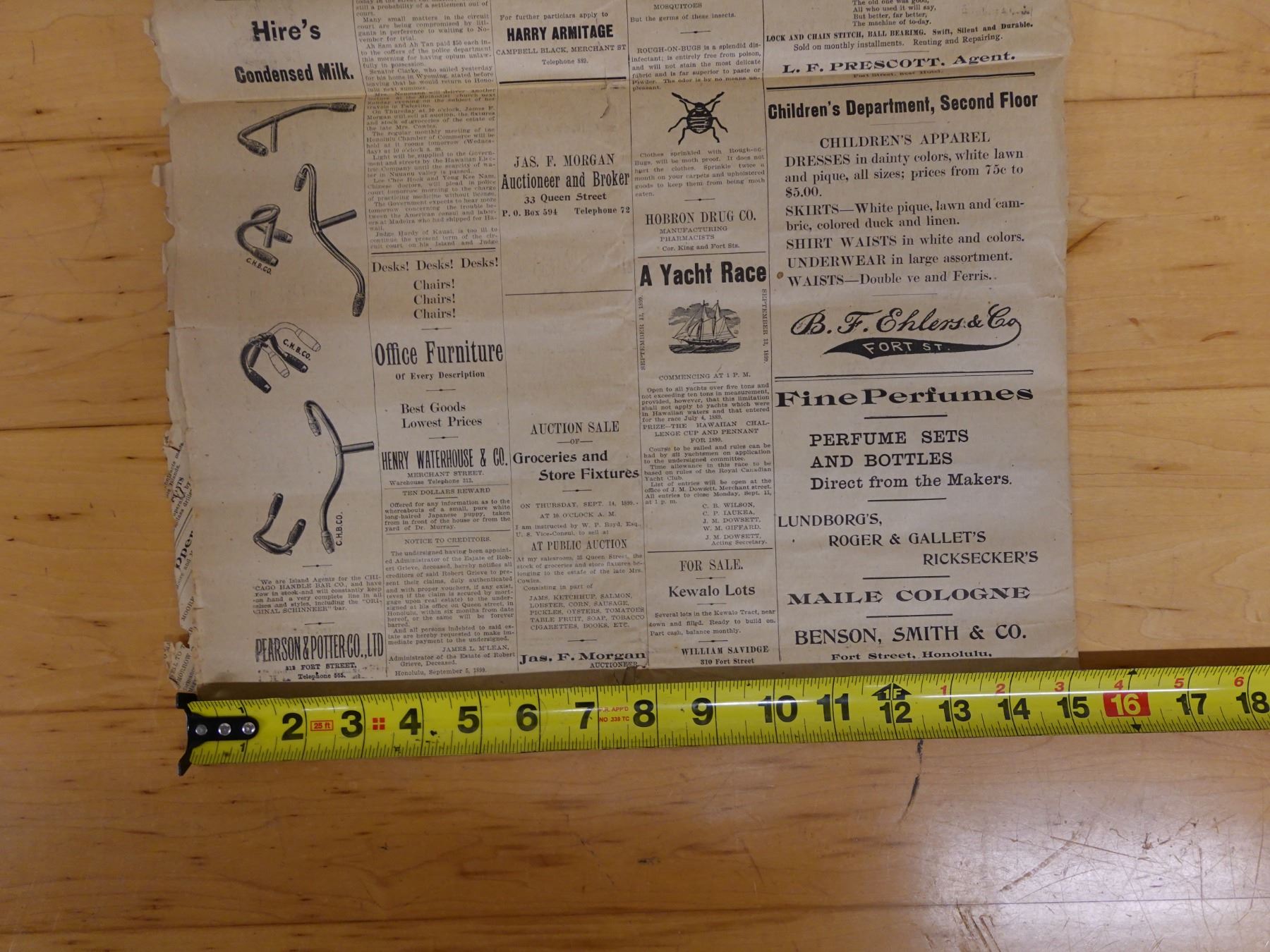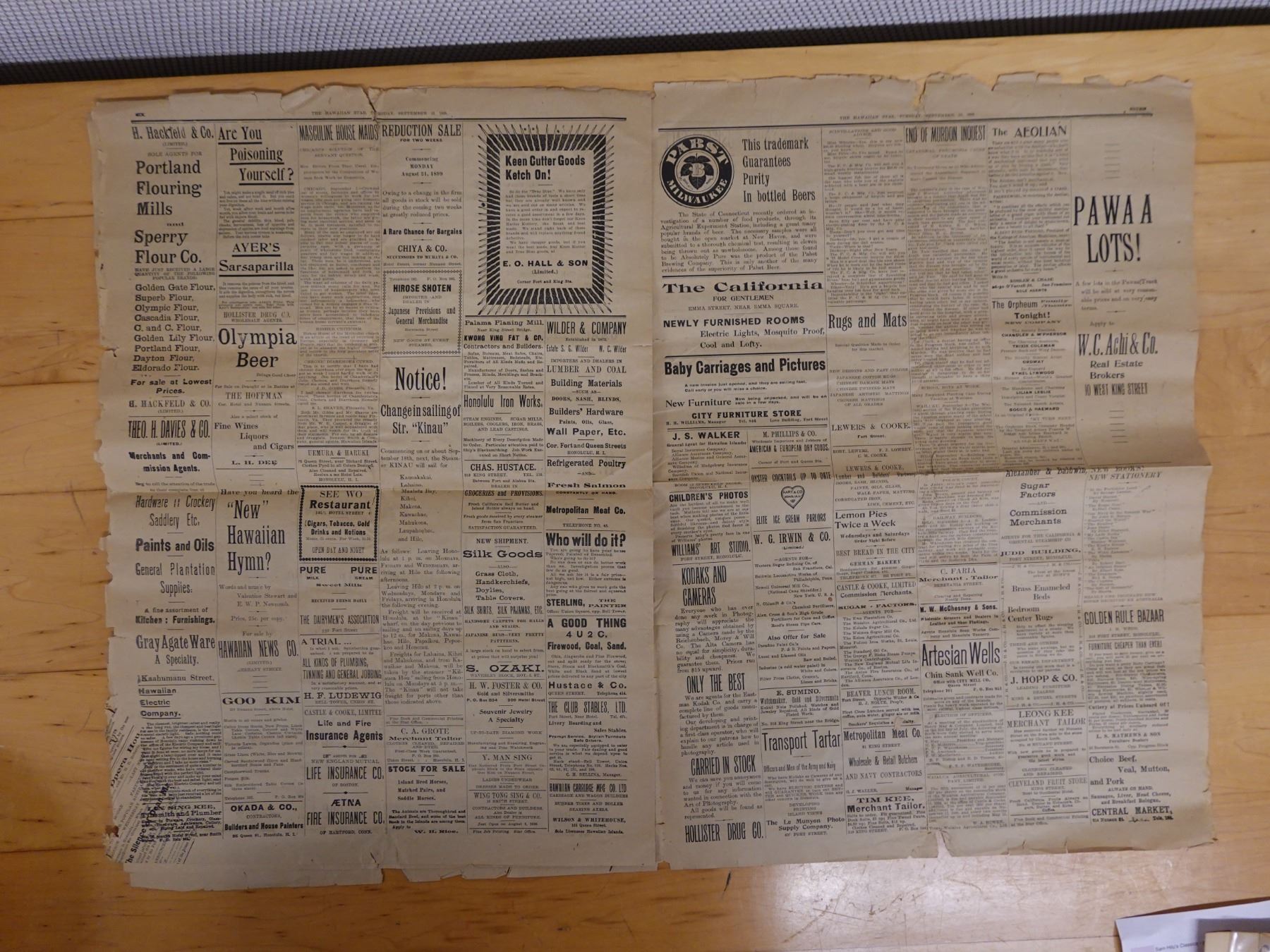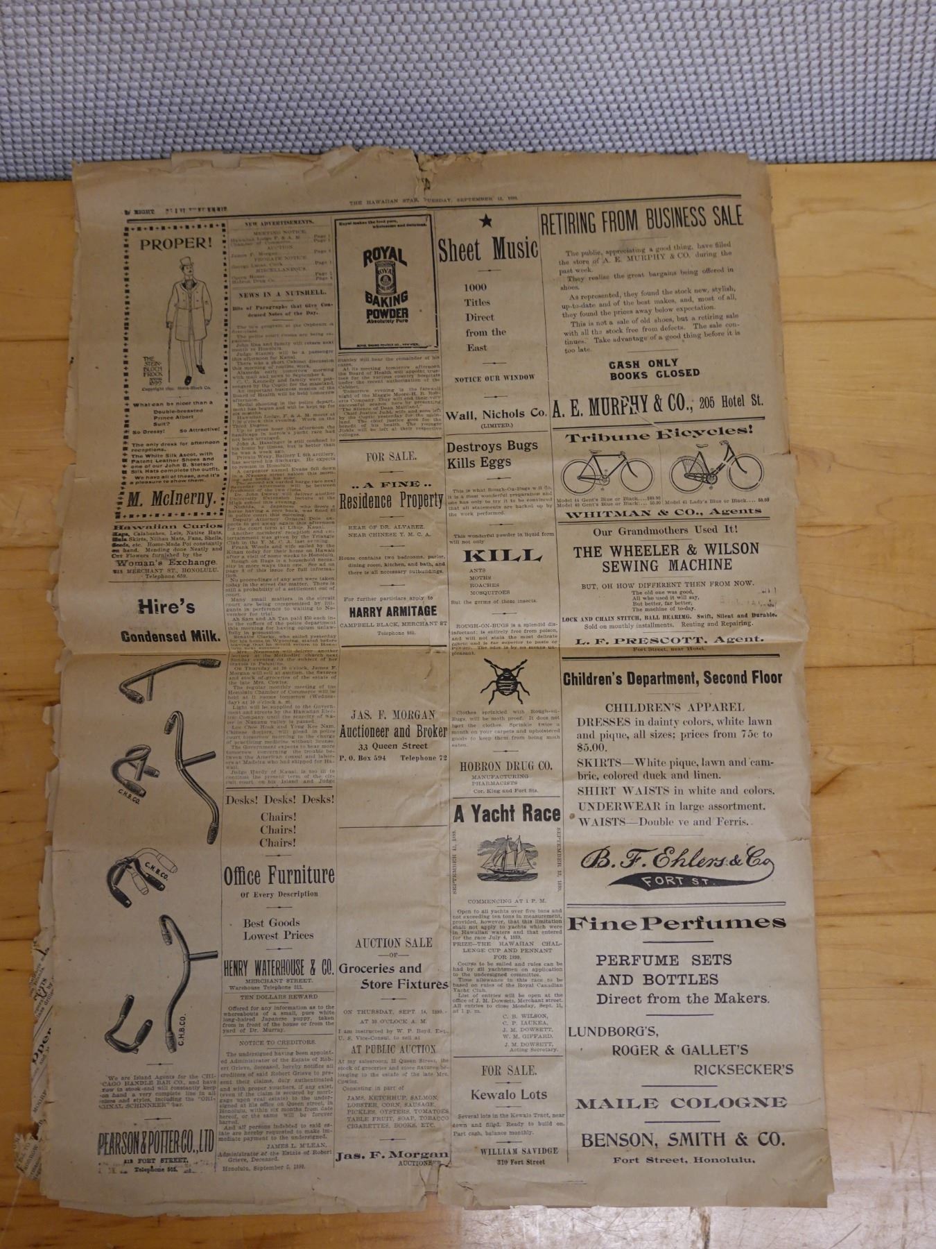 The Hawaiian Star Newspaper Dated 9/12/1899, 15" x 21"