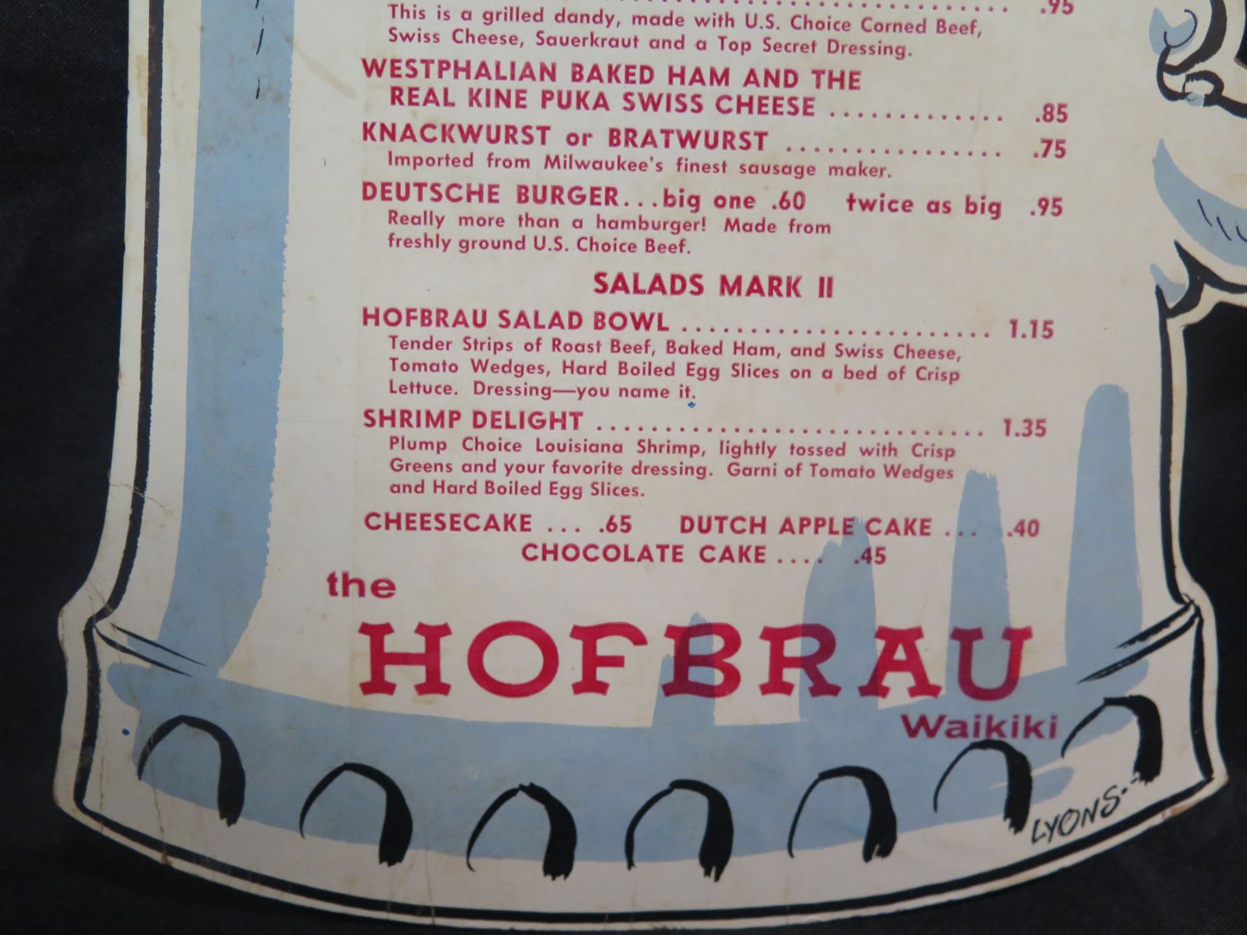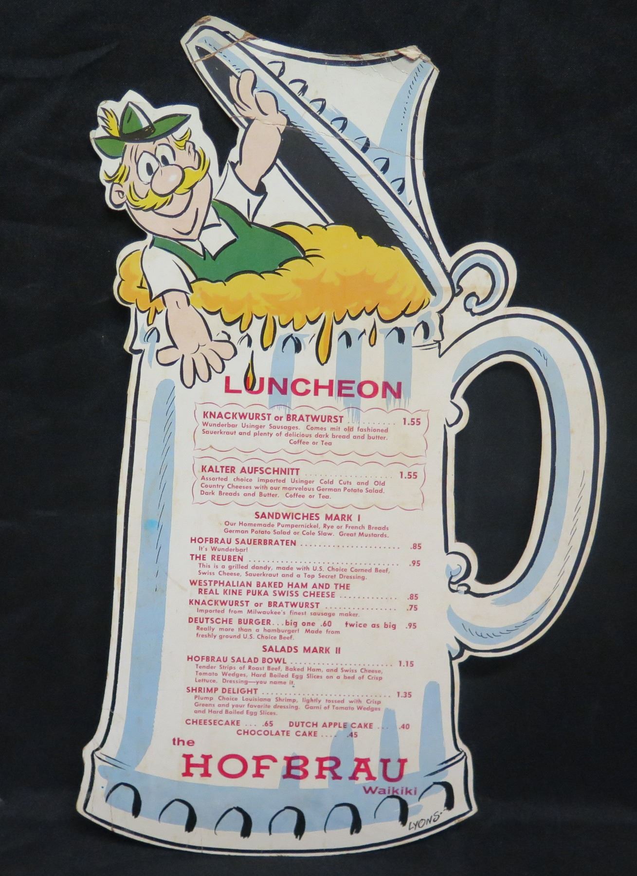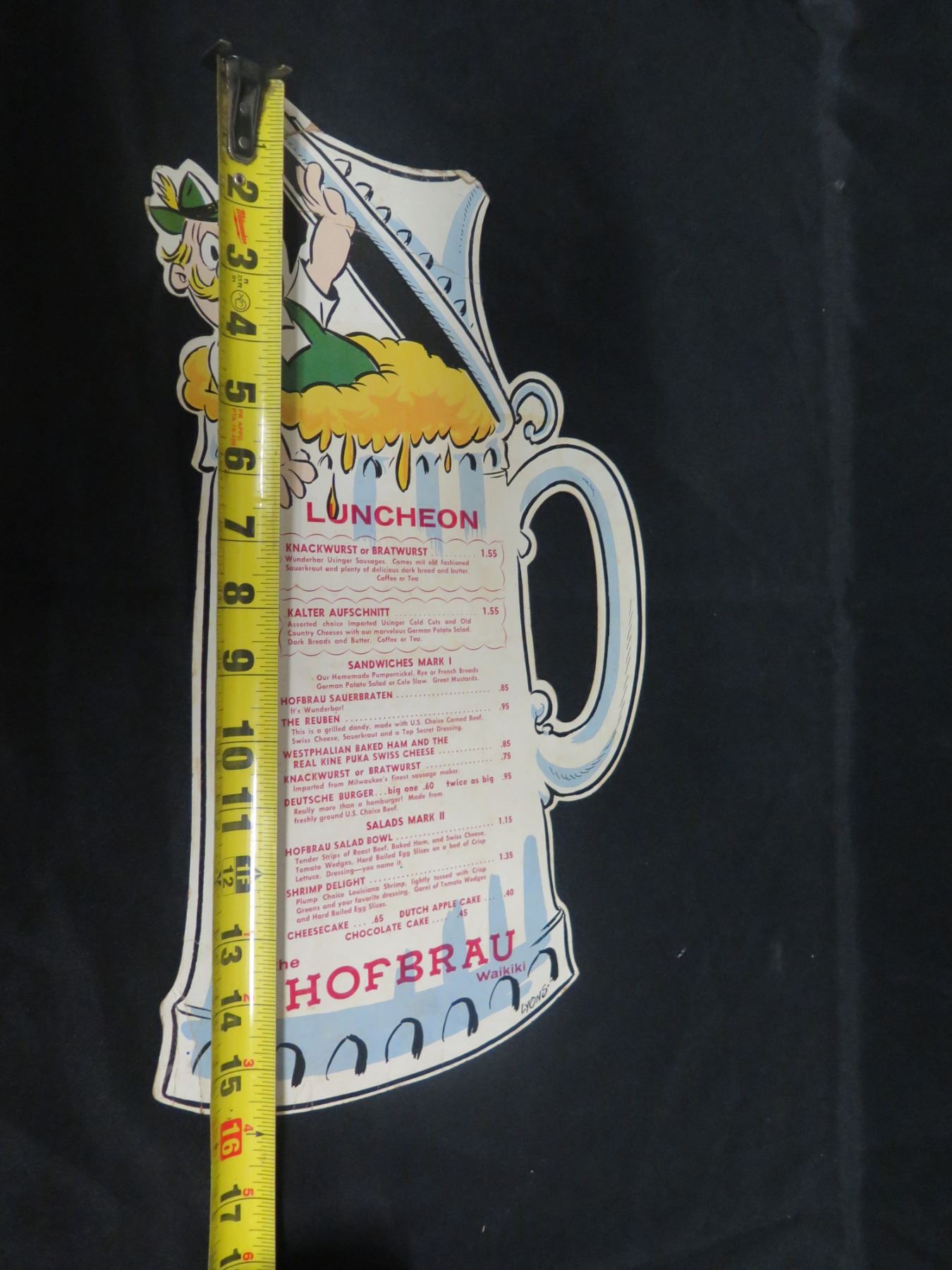 The Hofbrau Waikiki Luncheon Menu Stein Shape 9"x15"