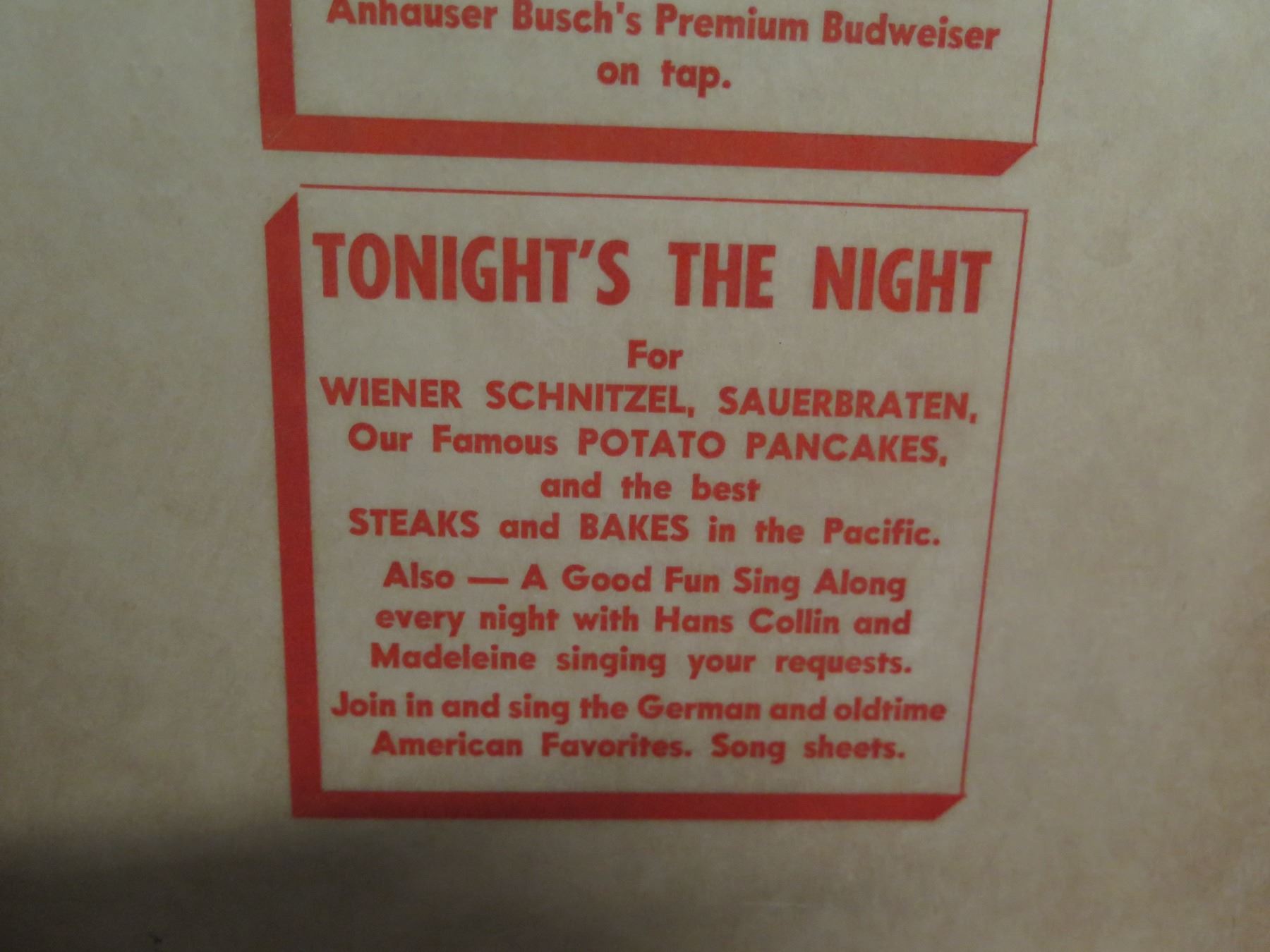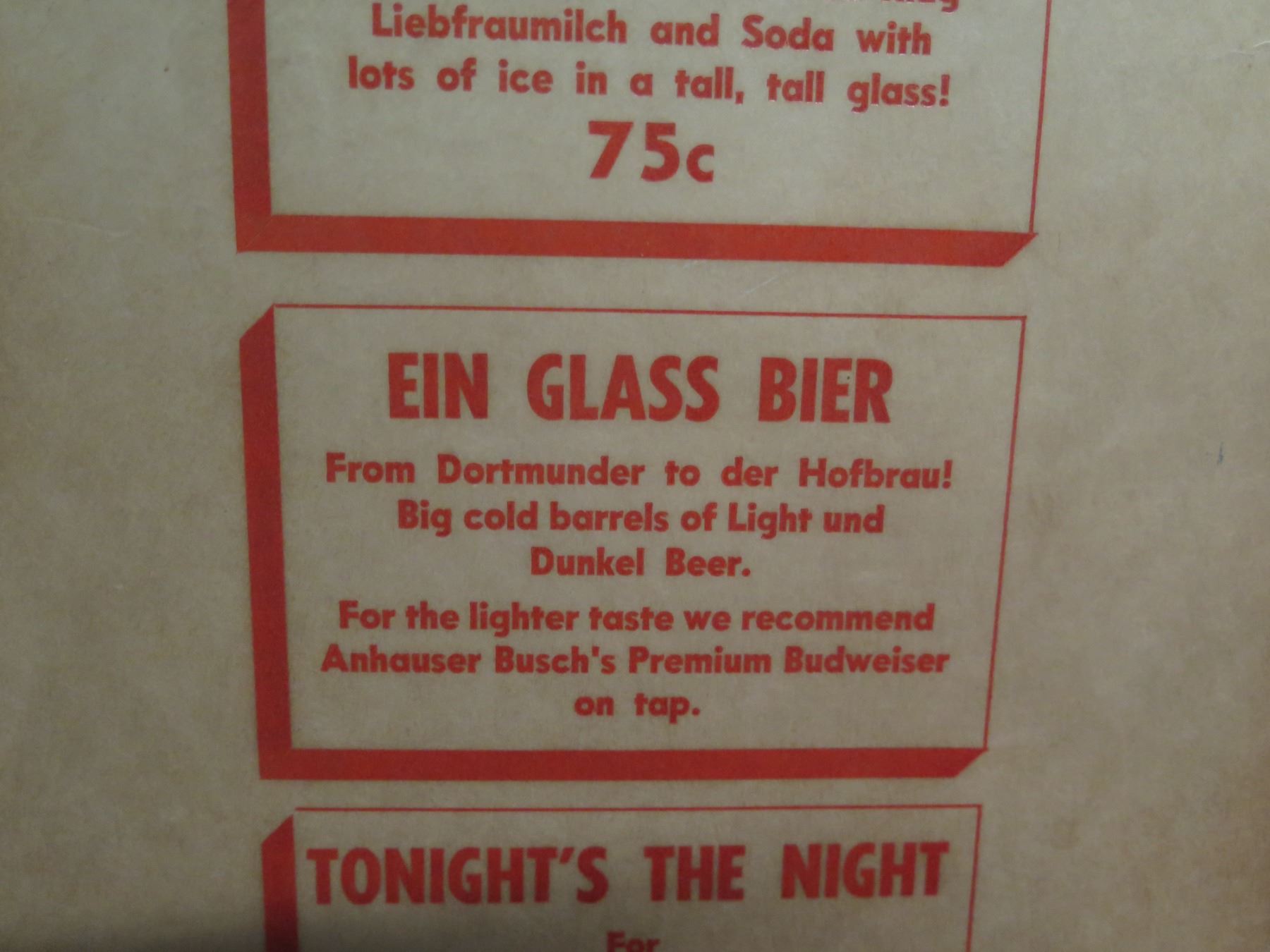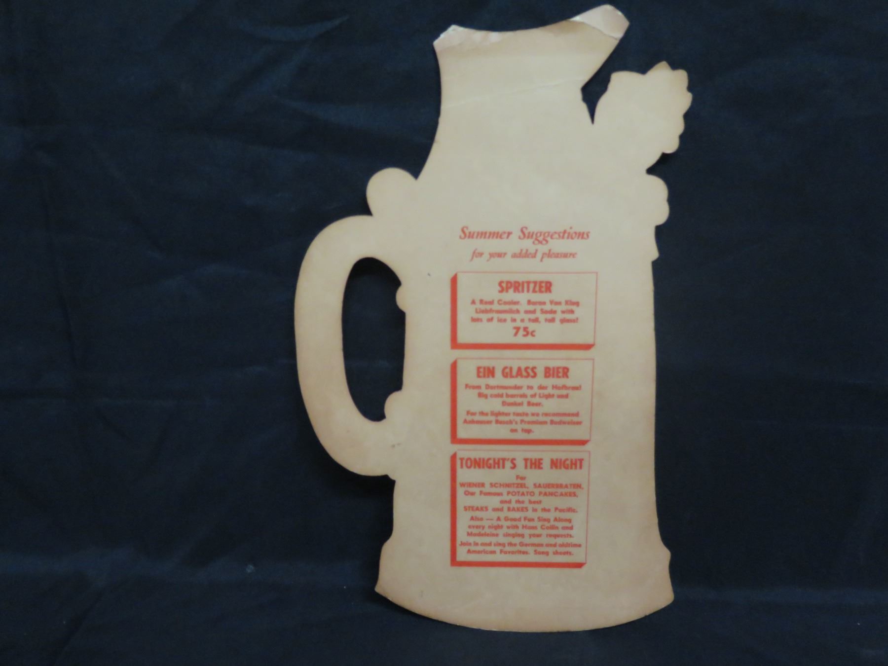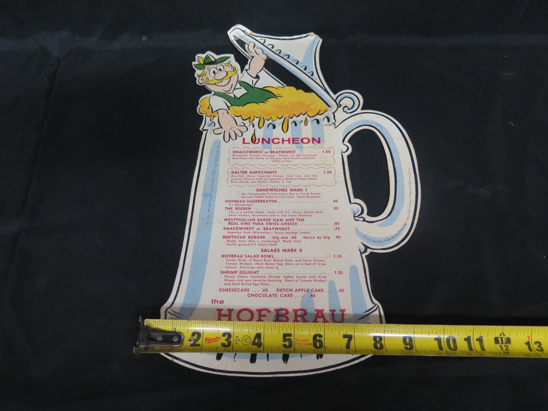 The Hofbrau Waikiki Luncheon Menu Stein Shape 9"x15"