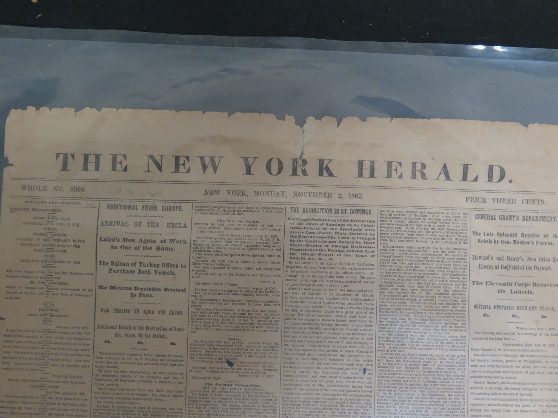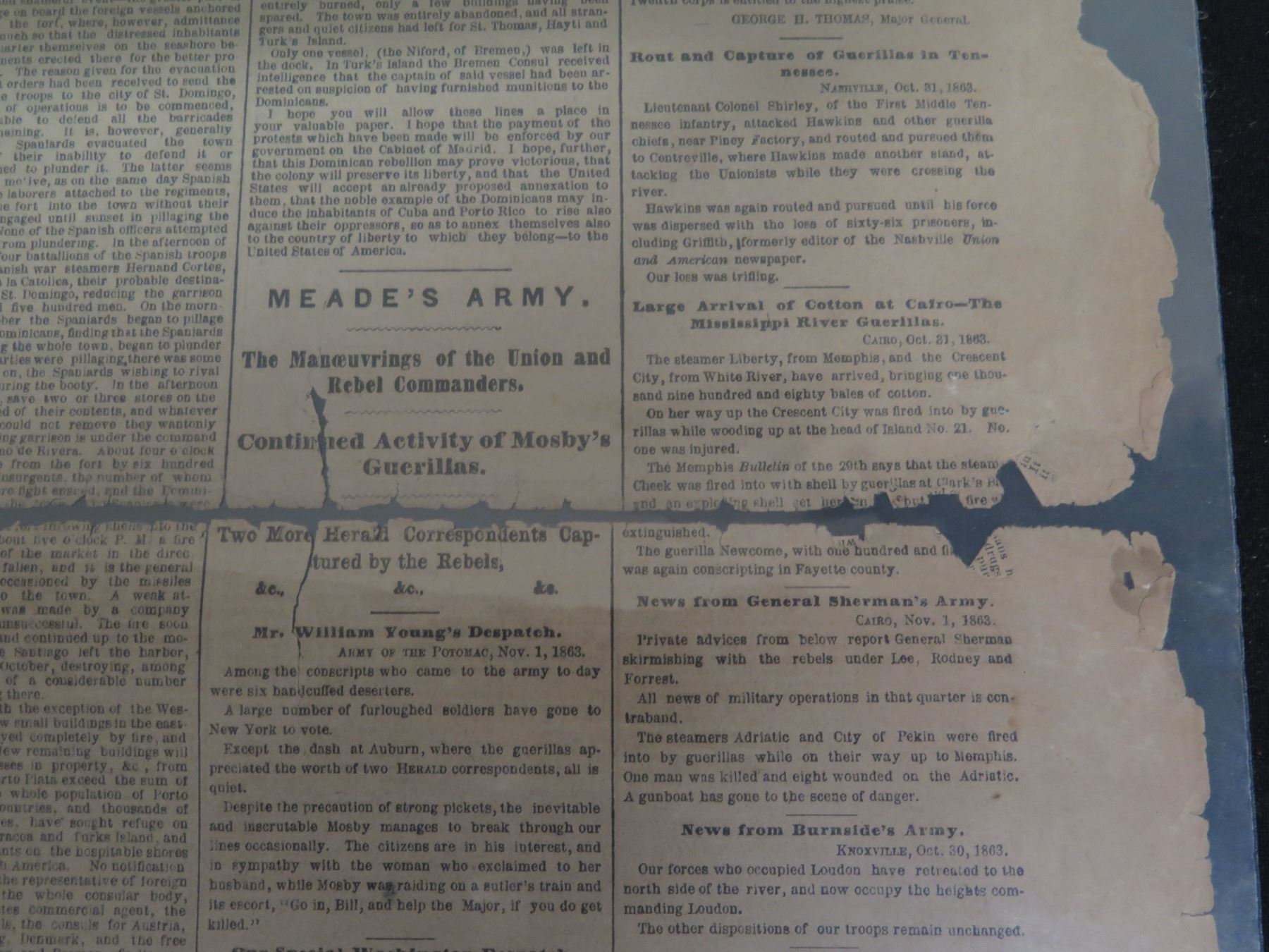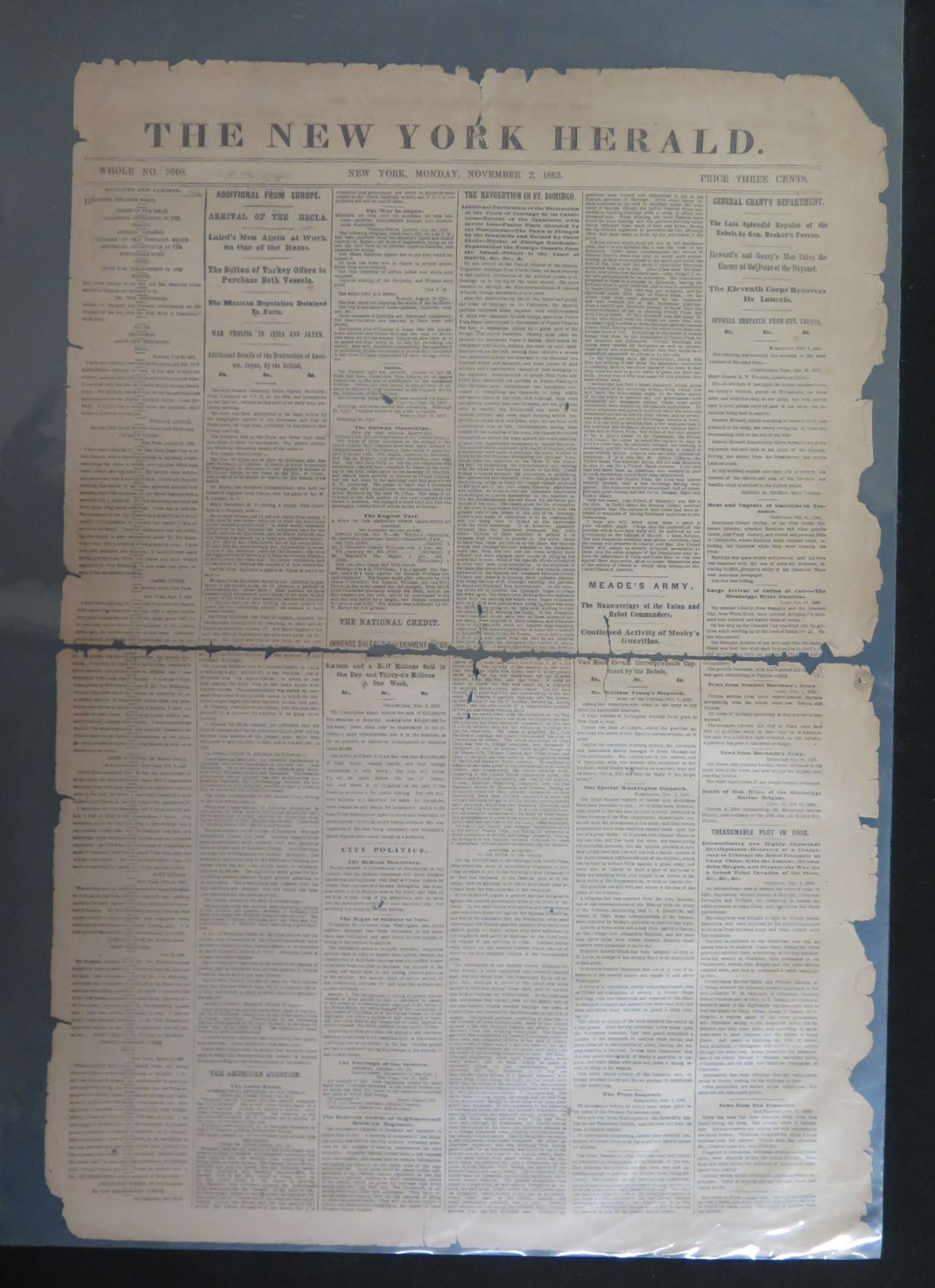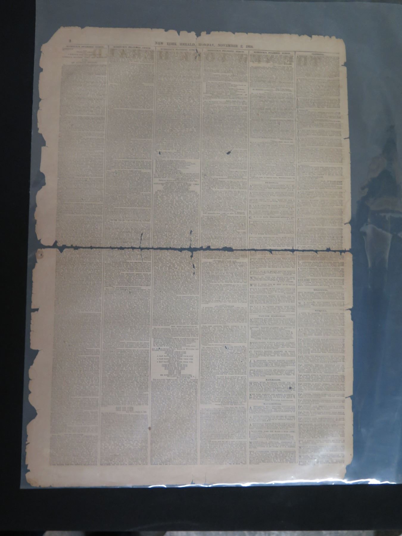 The New York Herald Newspaper Page Monday November 2, 1863 (one page)