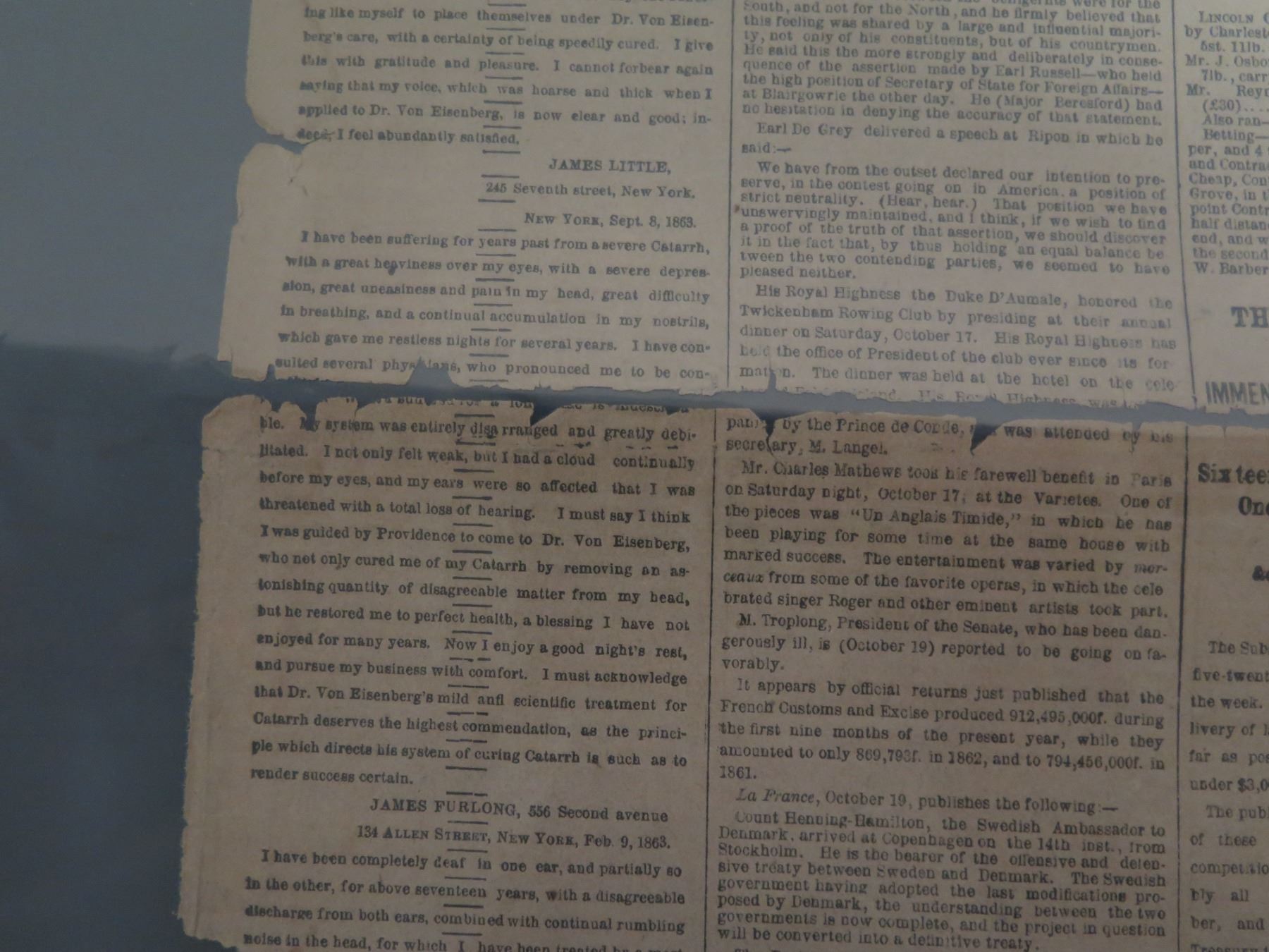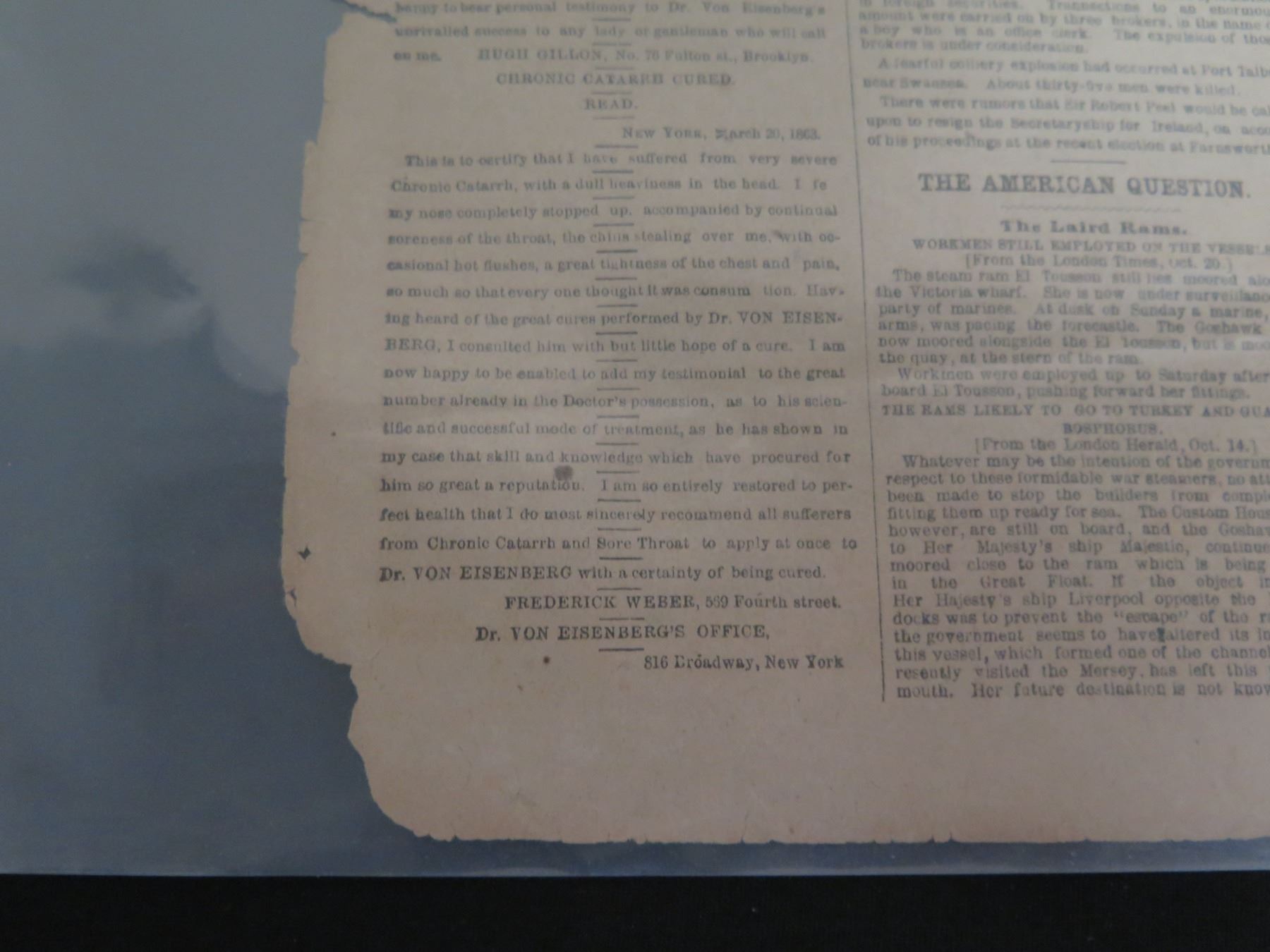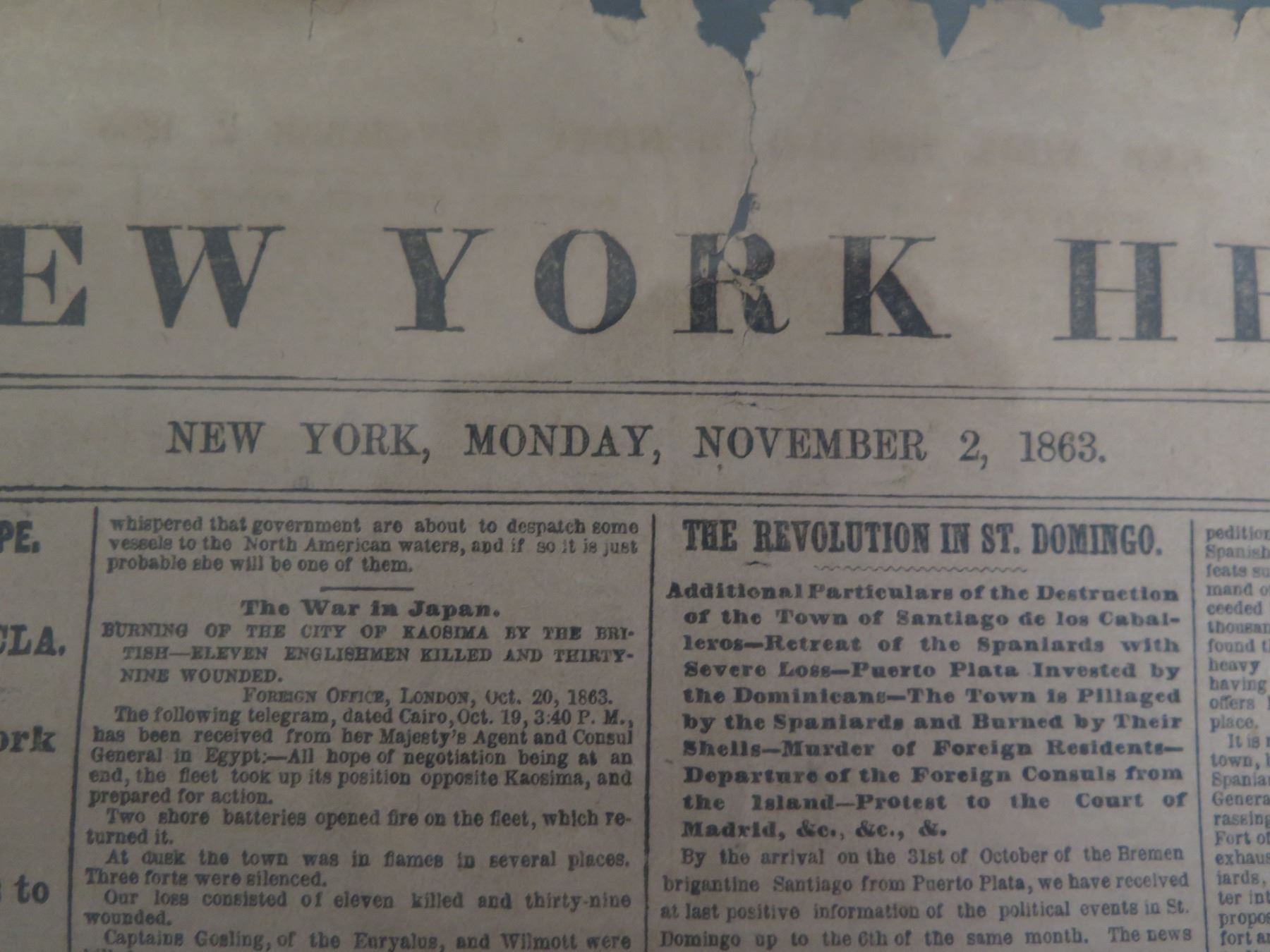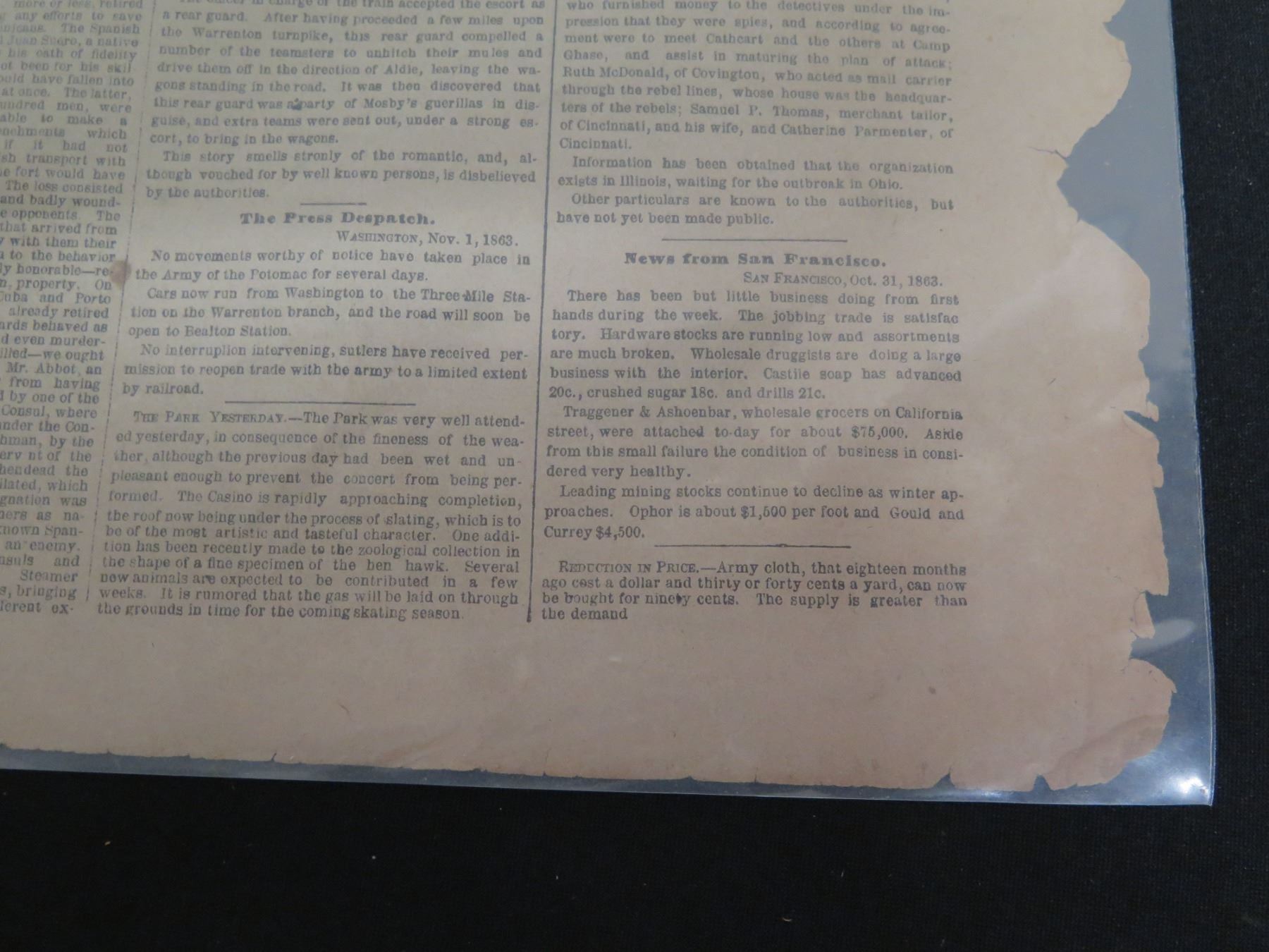 The New York Herald Newspaper Page Monday November 2, 1863 (one page)