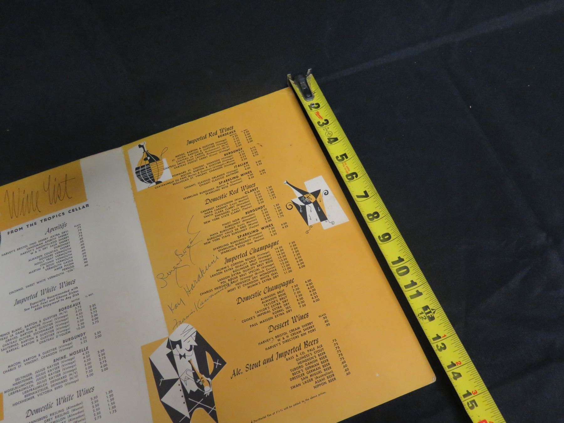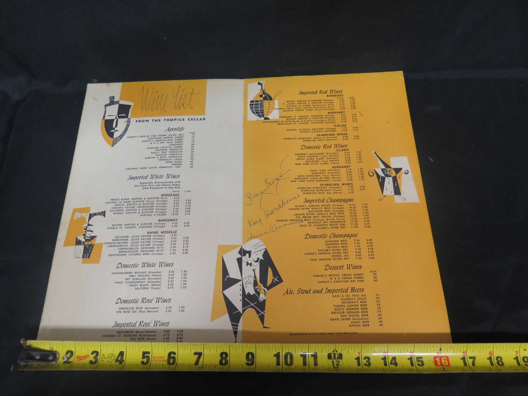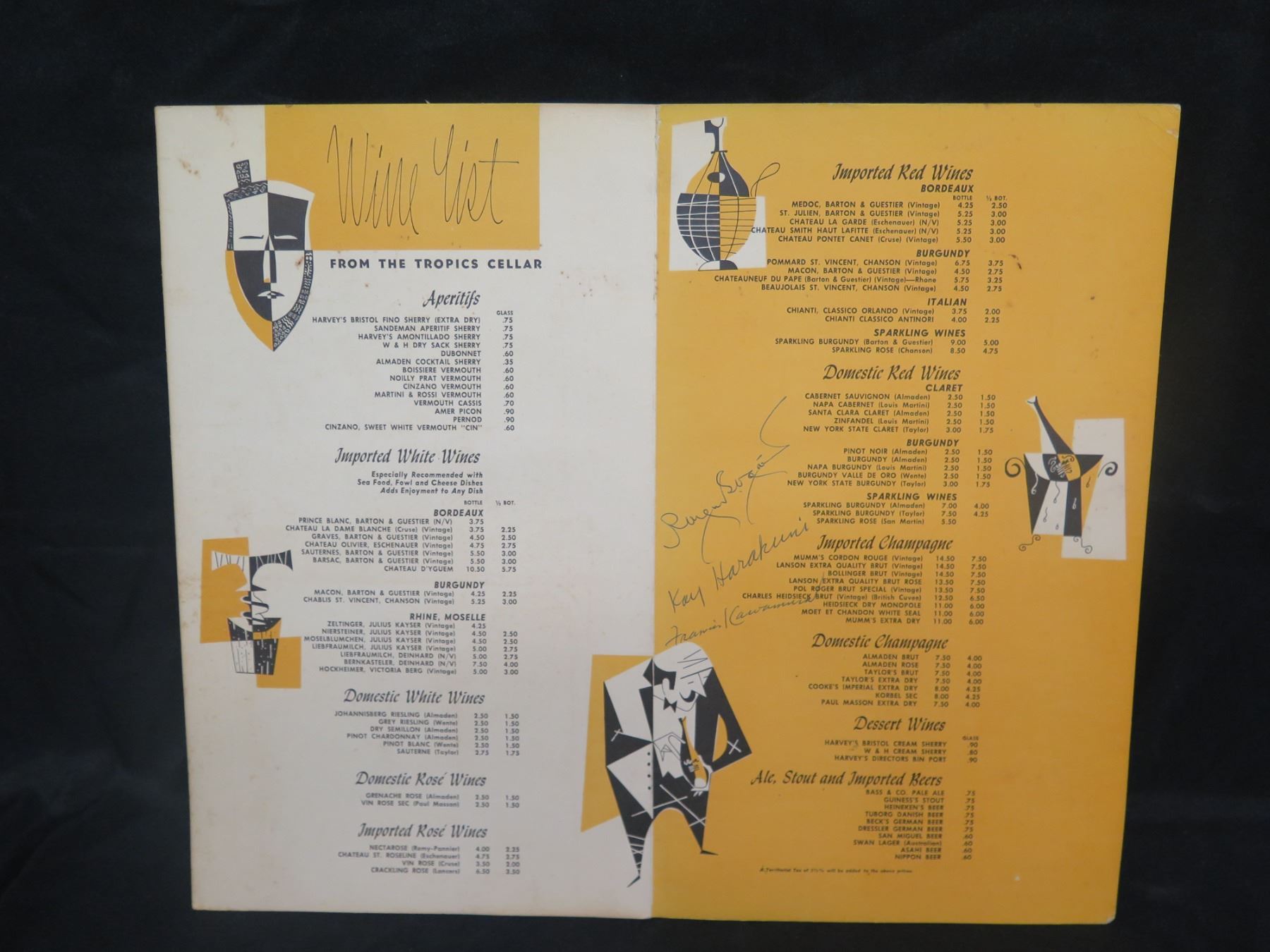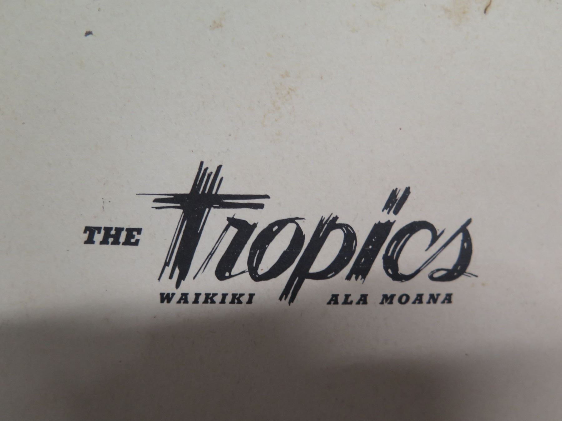 The Tropics Waikiki & Ala Moana Wine & Beer Menu, Signed 16"x14"