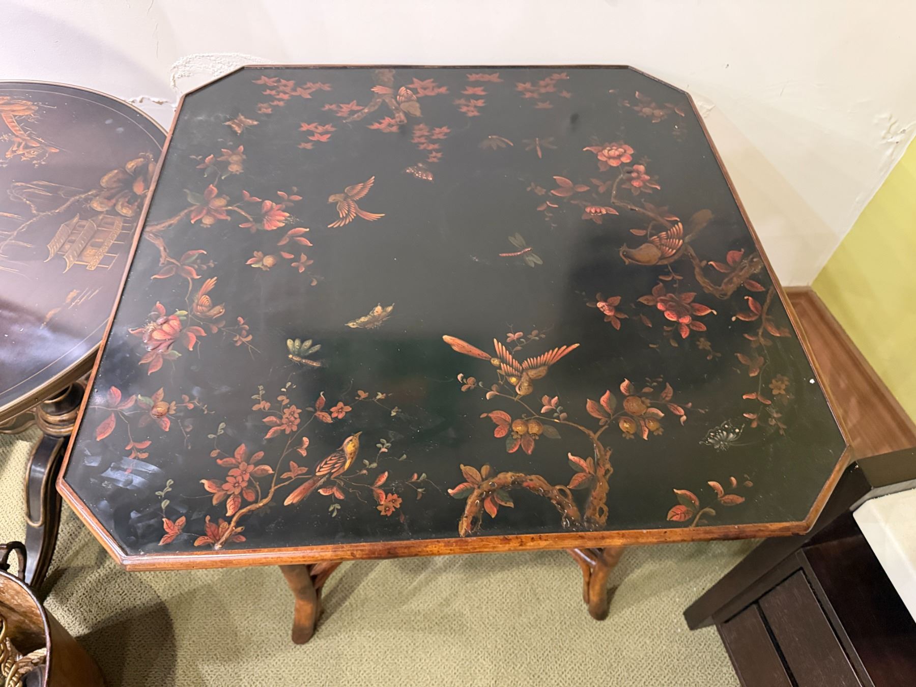 Theodore Alexander Octagonal Side Table w/ Asian Floral Top 32" x 32" x 30"H
