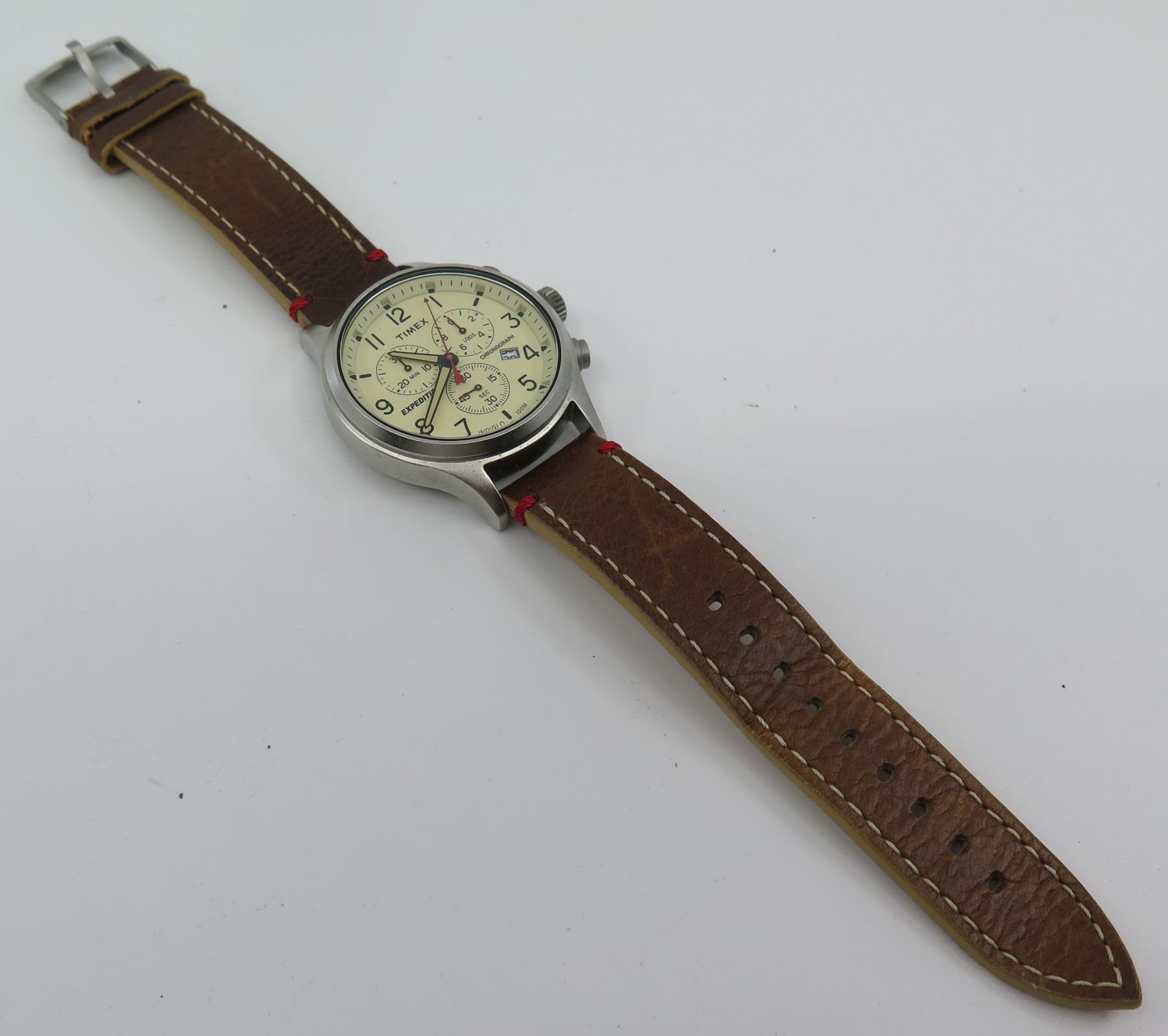 Timex Expedition Chronograph Indiglo Watch - 100m Stainless Steel w/ Leather Band (untested, may need repair, may need batteries)