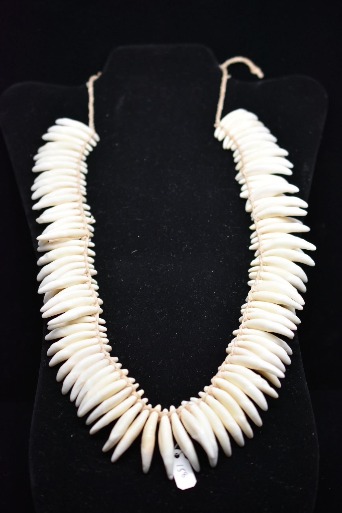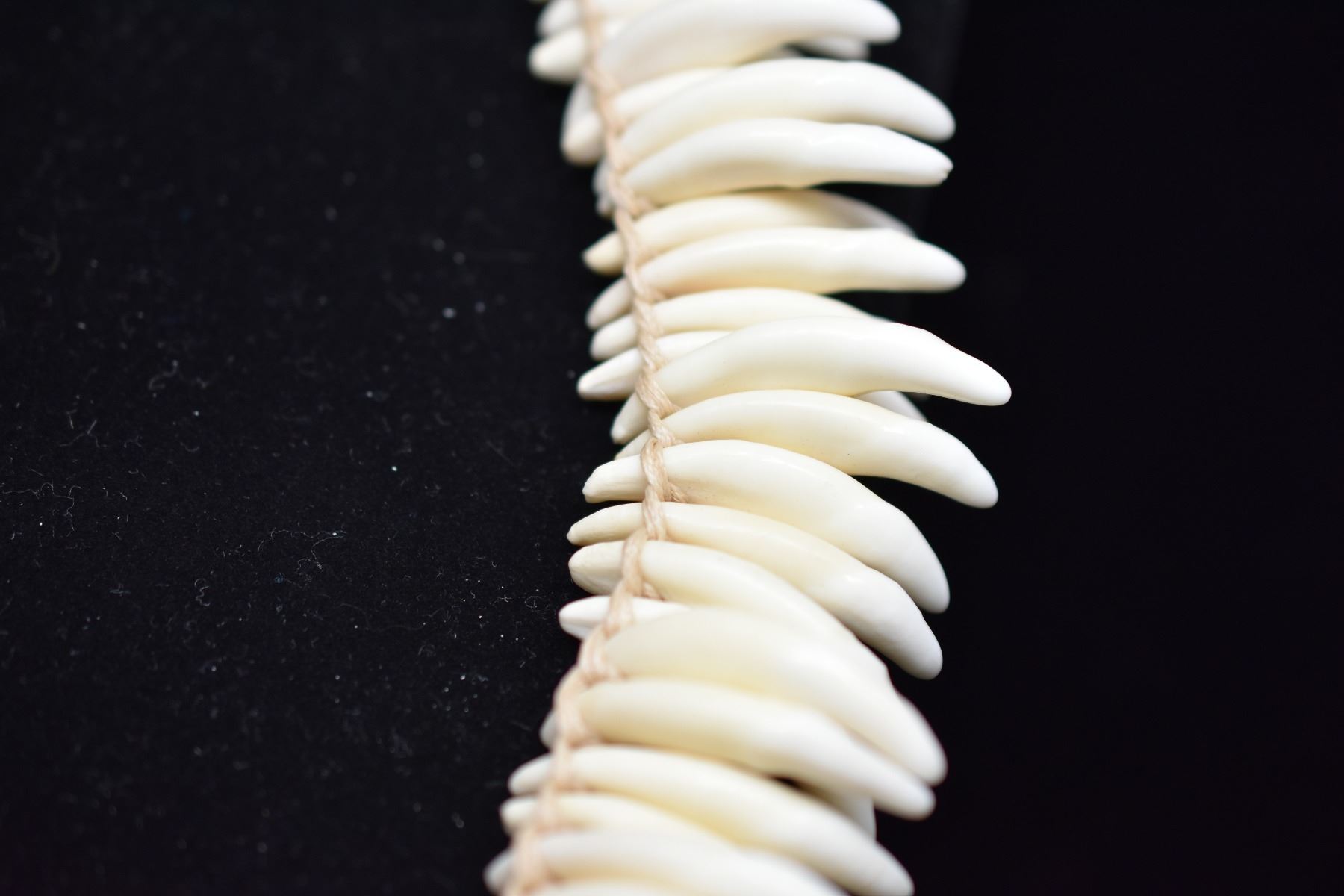 Tooth Necklace w/Braided Cord Tie, 20" Length, Period Reproduction