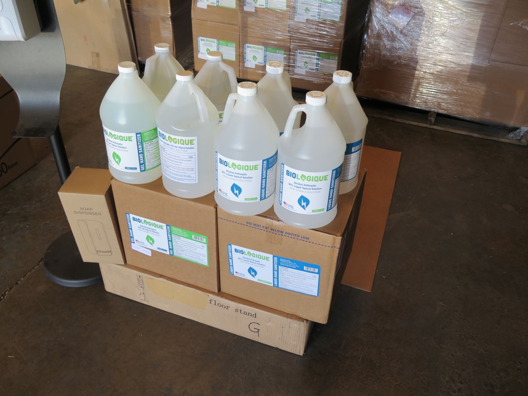 Touchless Auto Dispenser, Floor Stand & 8 Gal Bottles Sanitizer 80%Liq/70%Gel