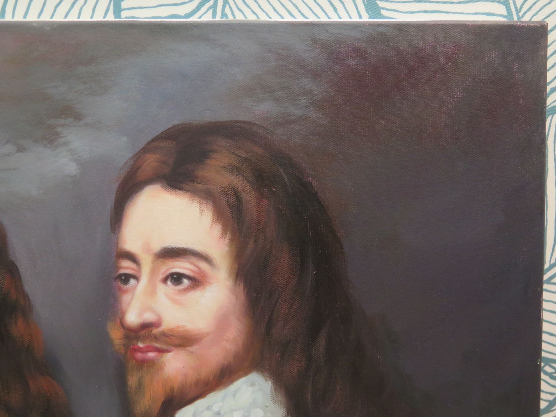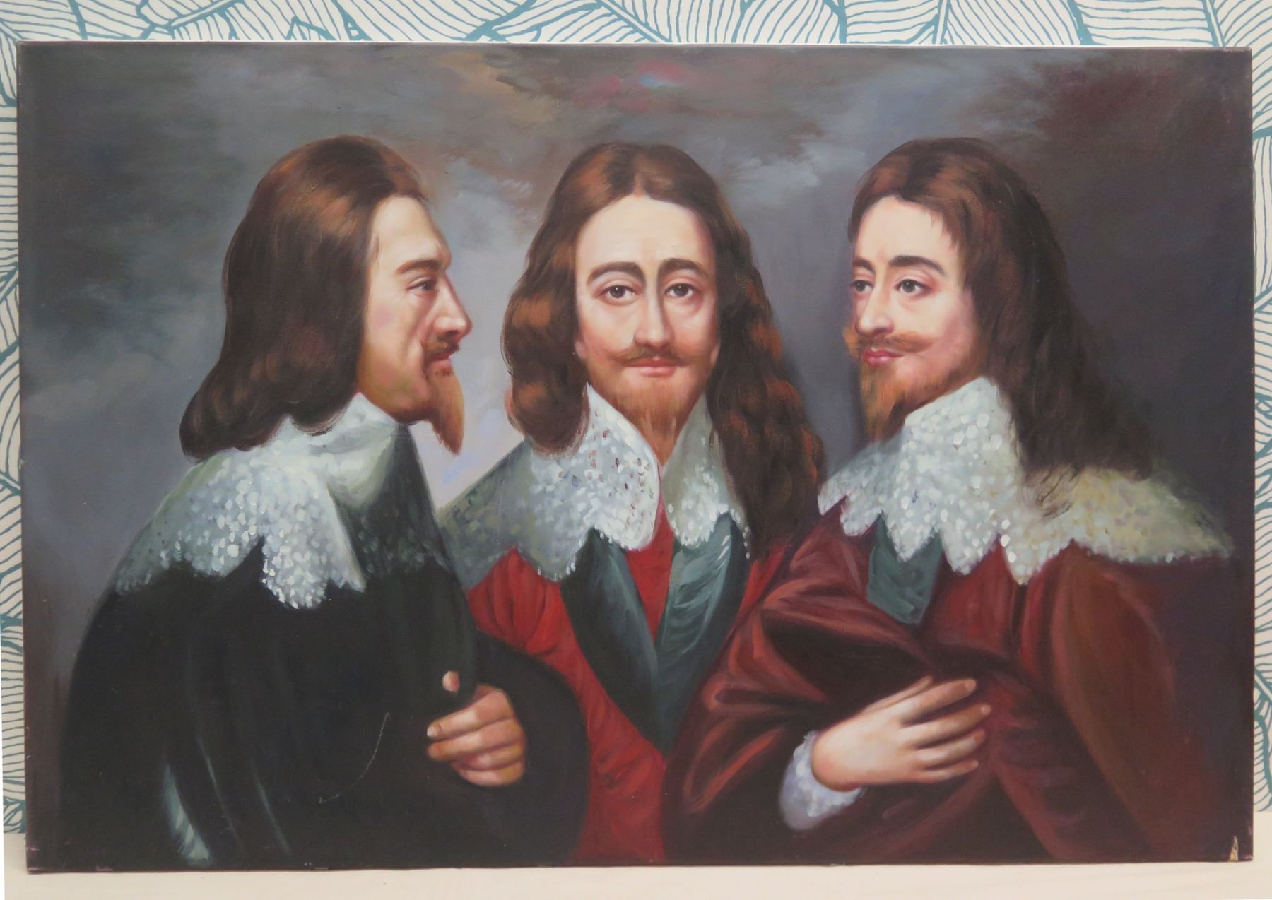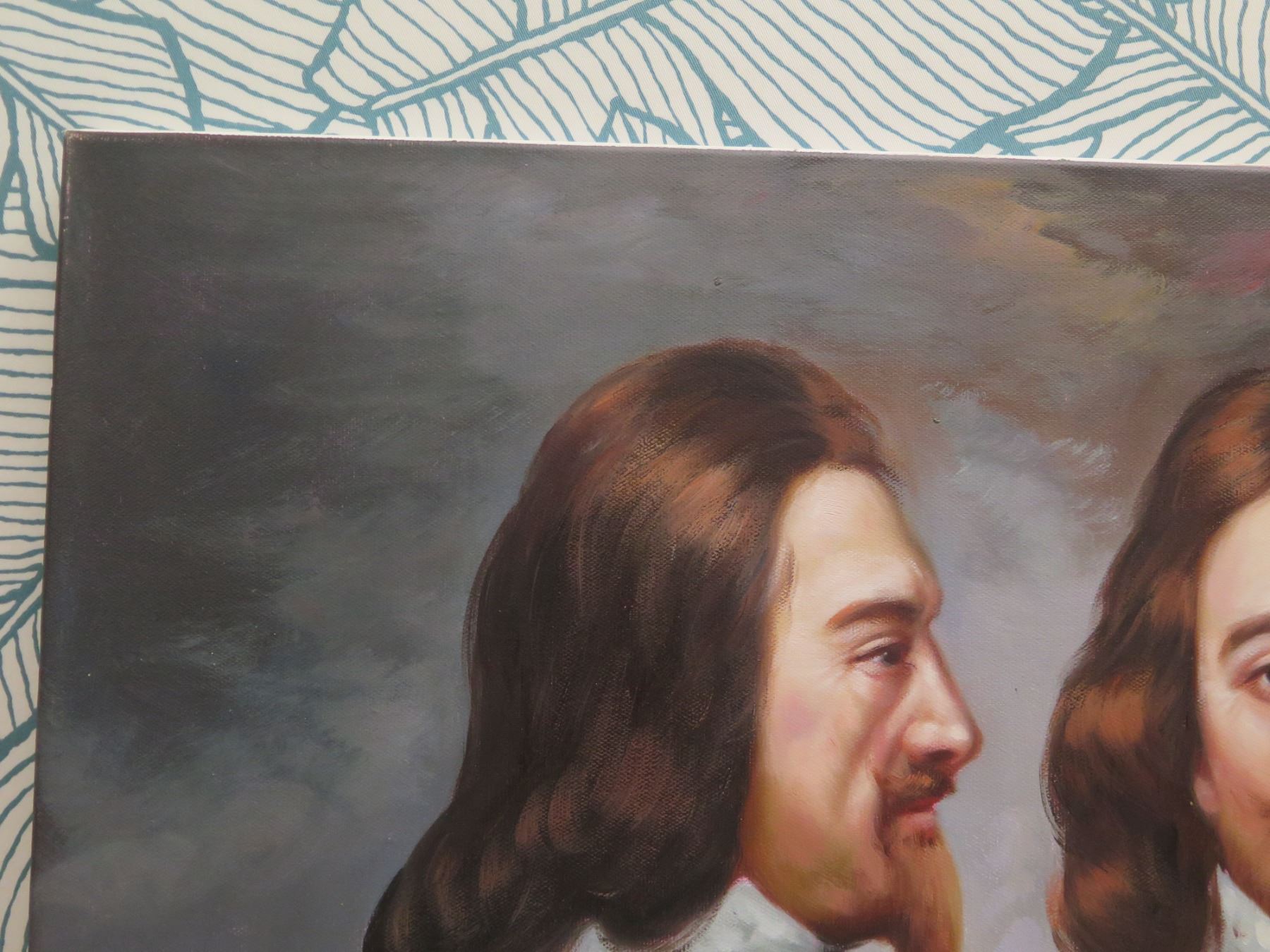 Trio of Male Figures Artwork Stamped Fredrix 36, Unframed, 36"x24"