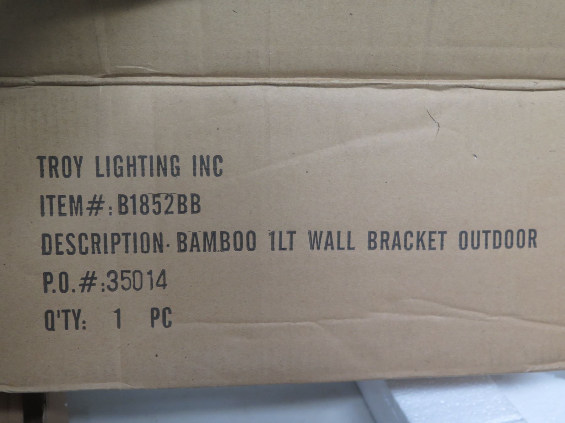 Troy Lighting B1852BB Bamboo One Light Outdoor Wall Bracket 26"x8"x7". This is a stock photo, representative of item. Condition may vary.