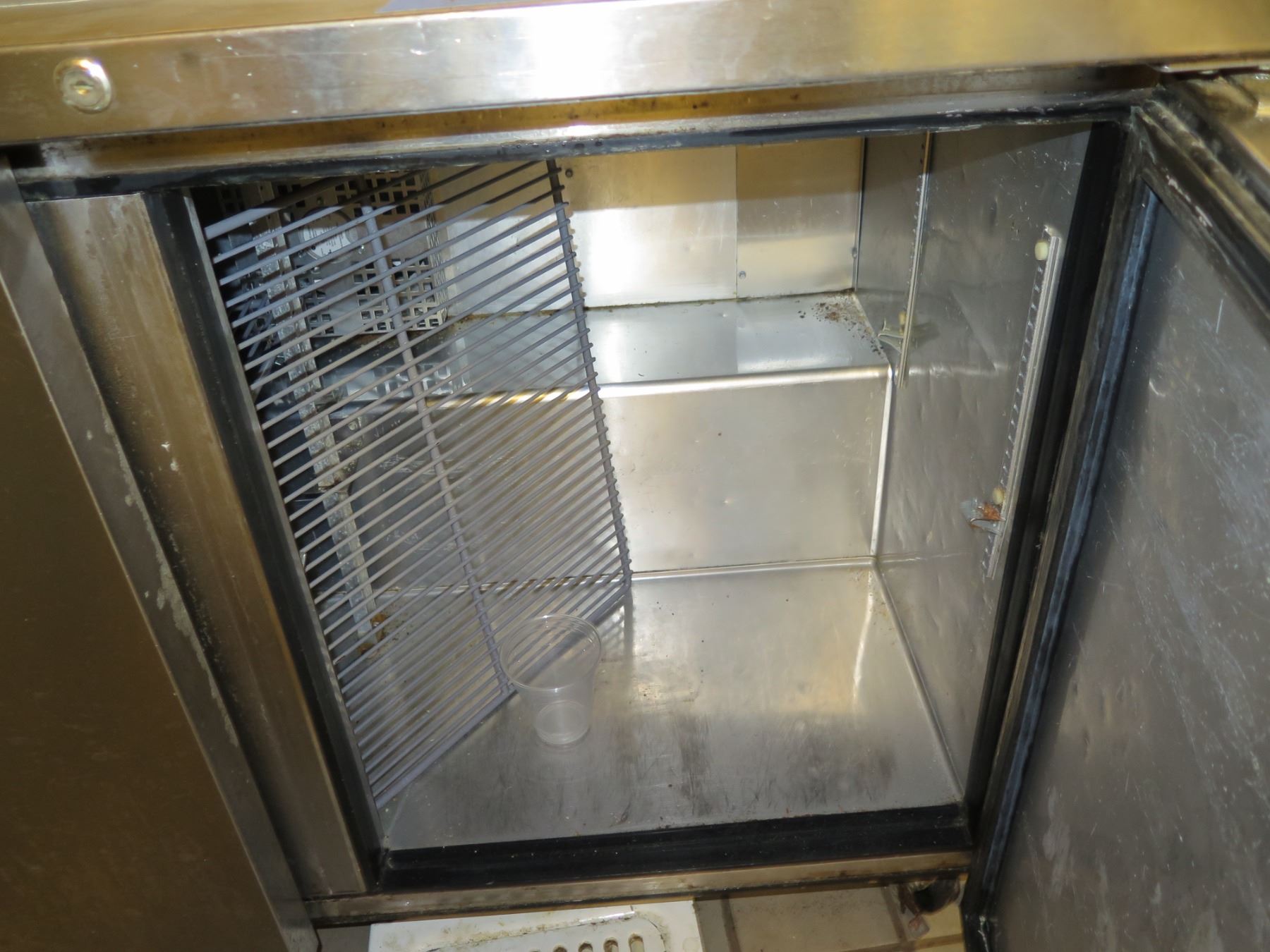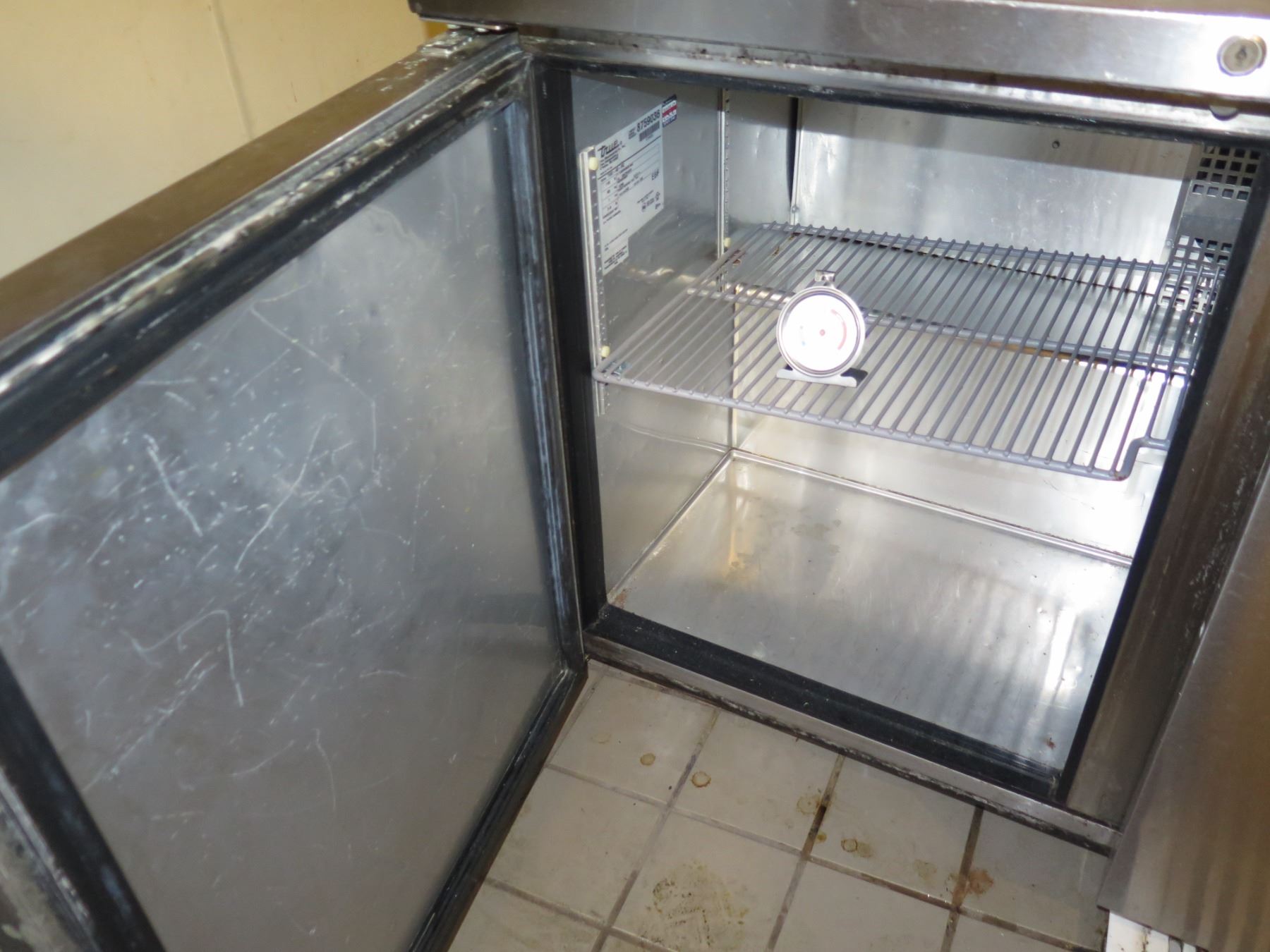 The blue strip of tape with notes that appears in the pictures represents assessment comments from an unknown third-party who went through the space and attempted to check various refrigeration units at some point before we arrived on the scene. These notes may or may not be accurate. There may be additional deficiencies that we’re unaware of. Please examine the photos where we show the current temperature of this unit (via manual thermometer) at the time that we took these pictures. The manual thermometers you see in the pictures are not included. At the same time, please consider that these units were in kitchens that were in full operation before the space was shut down.