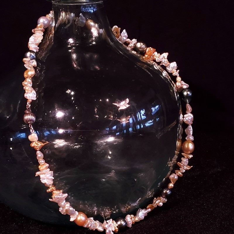 18.25 inches, mix of Keshi, Tahitian & South Sea pearls.
