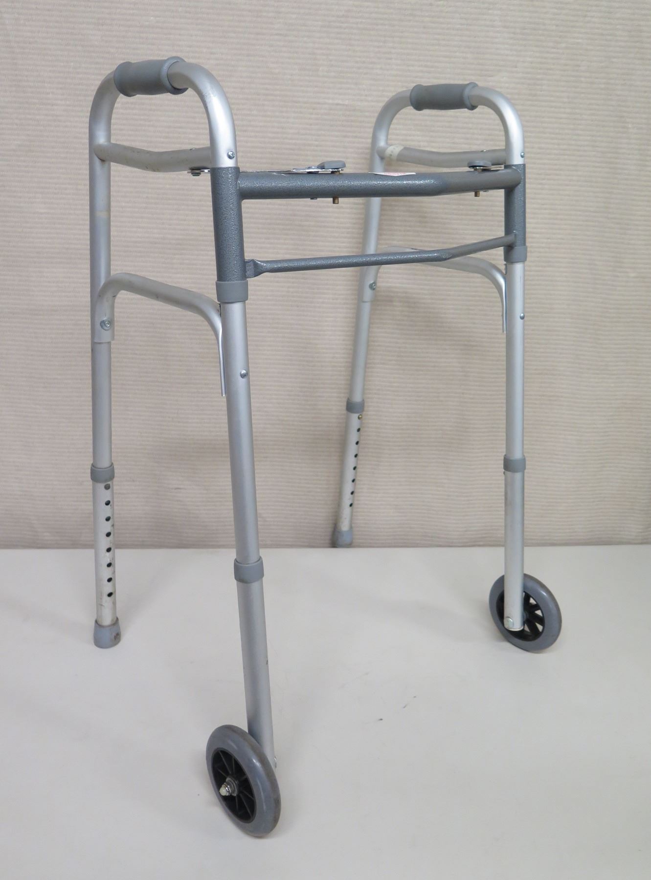 Two Button Folding Health Aid Walker w/ Wheels