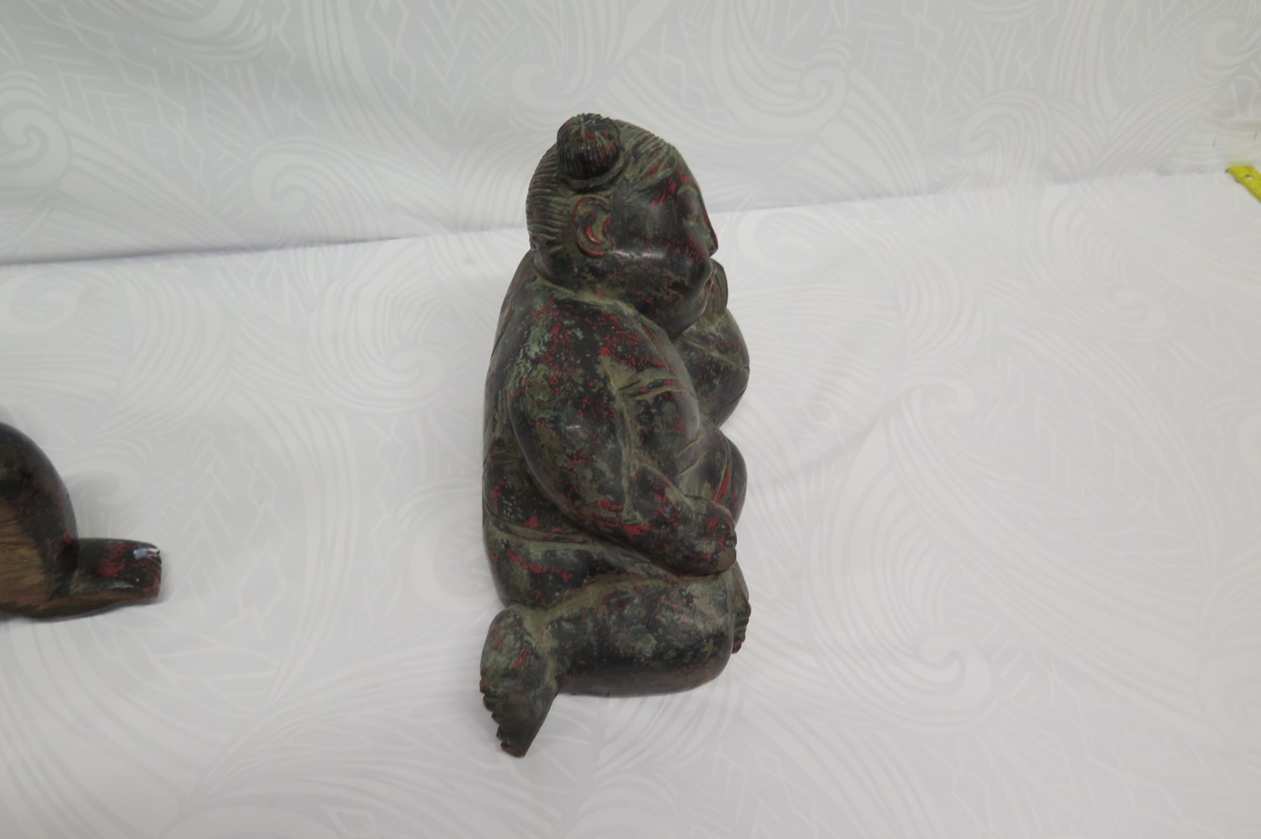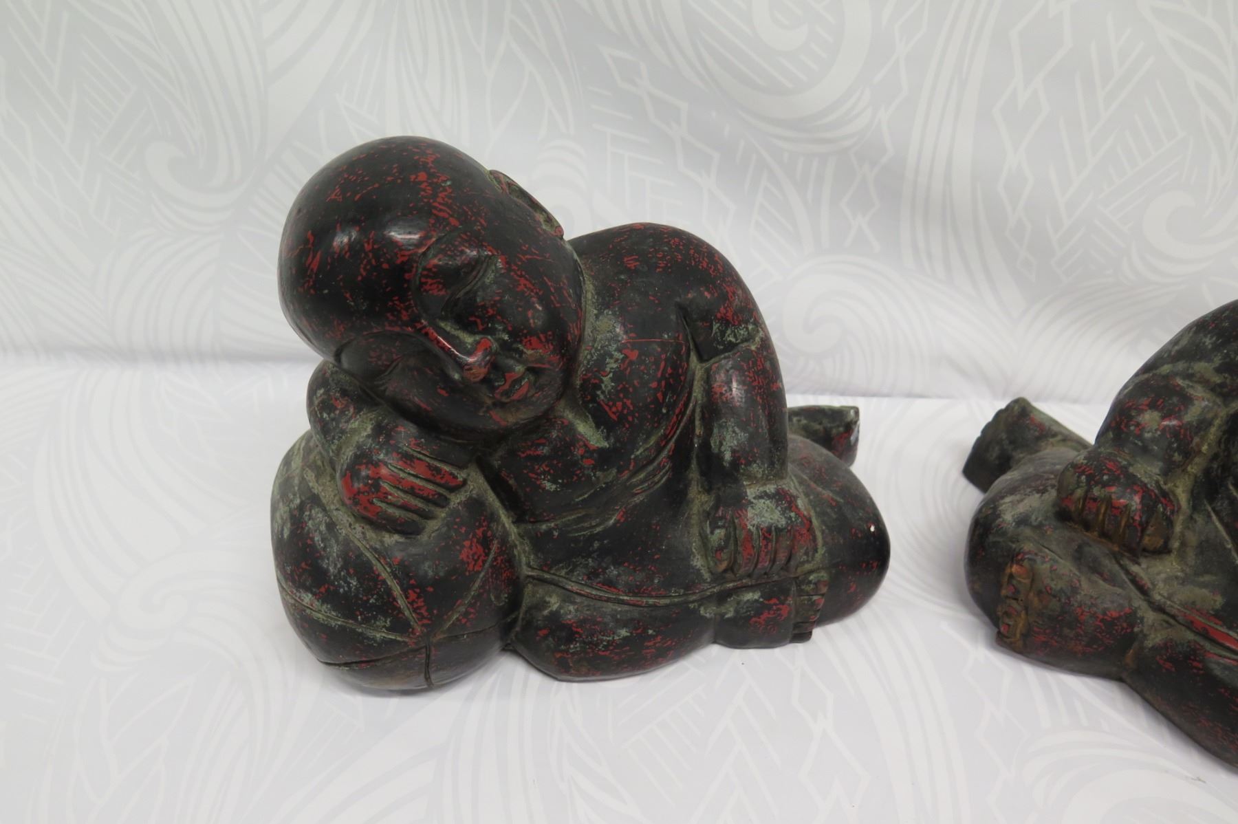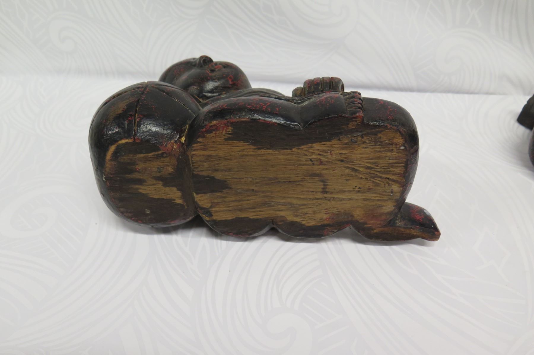 Two Carved Wooden Reclining Figures, Approx. 12" Wide, 11" Tall