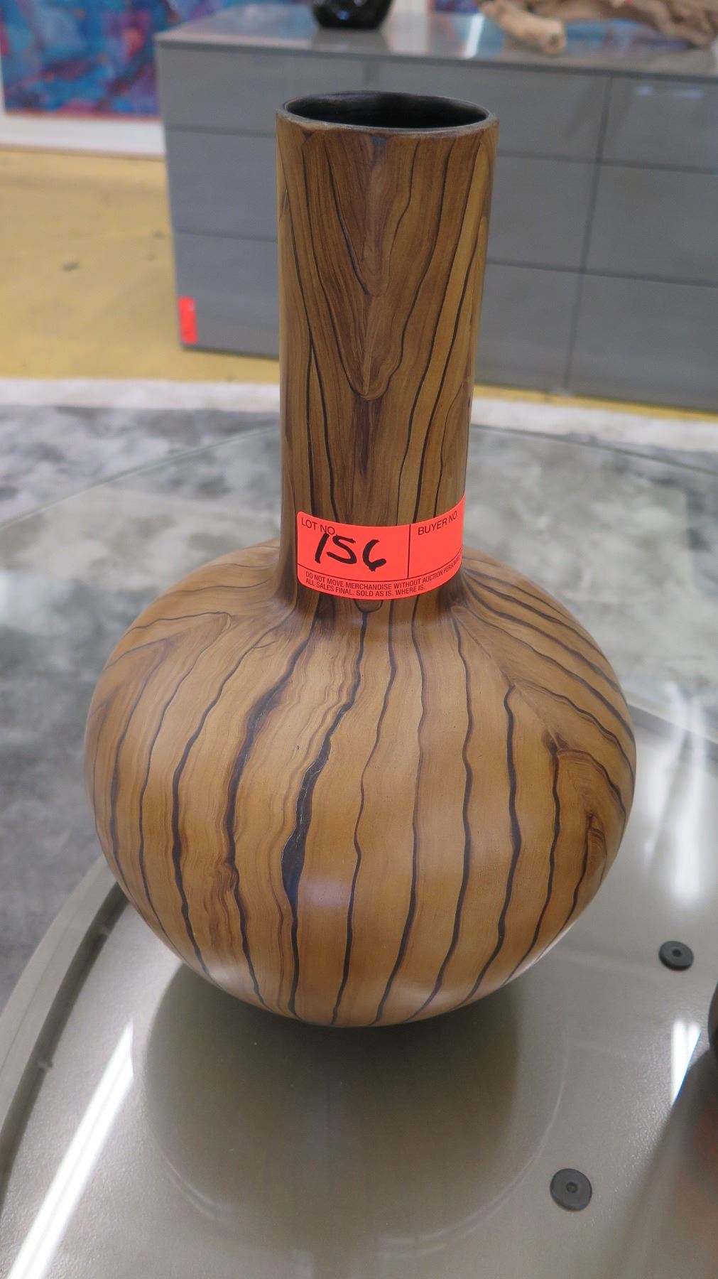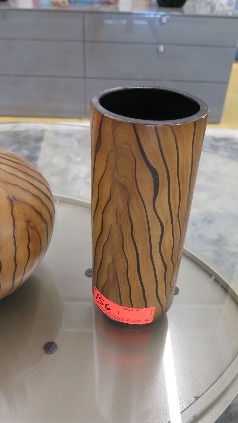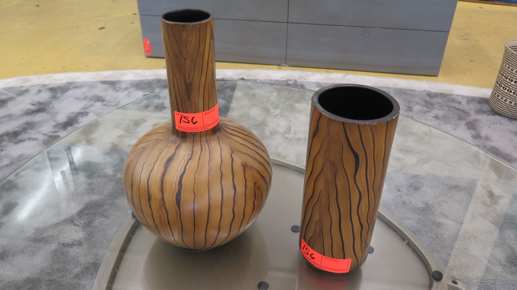 Two Decorative Wood-Veneer Vases (10" and 14" tall)