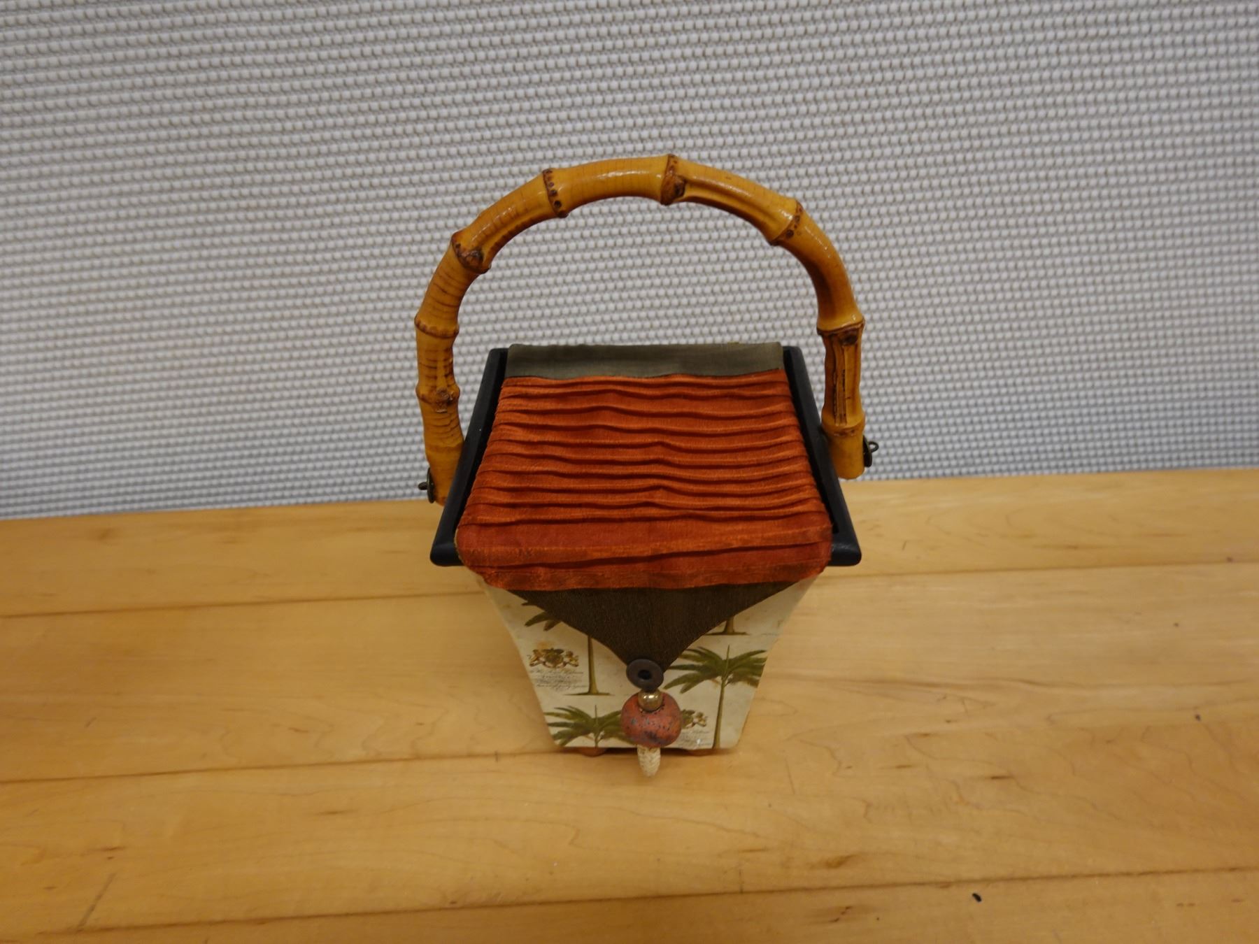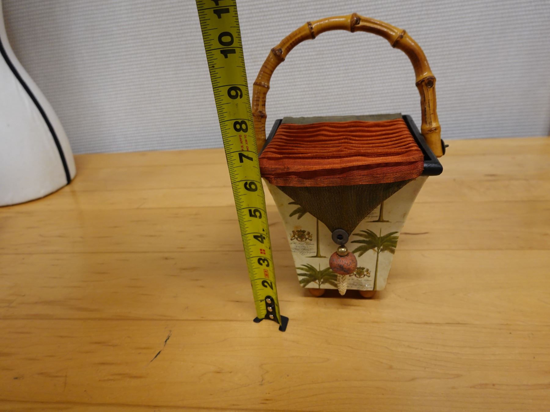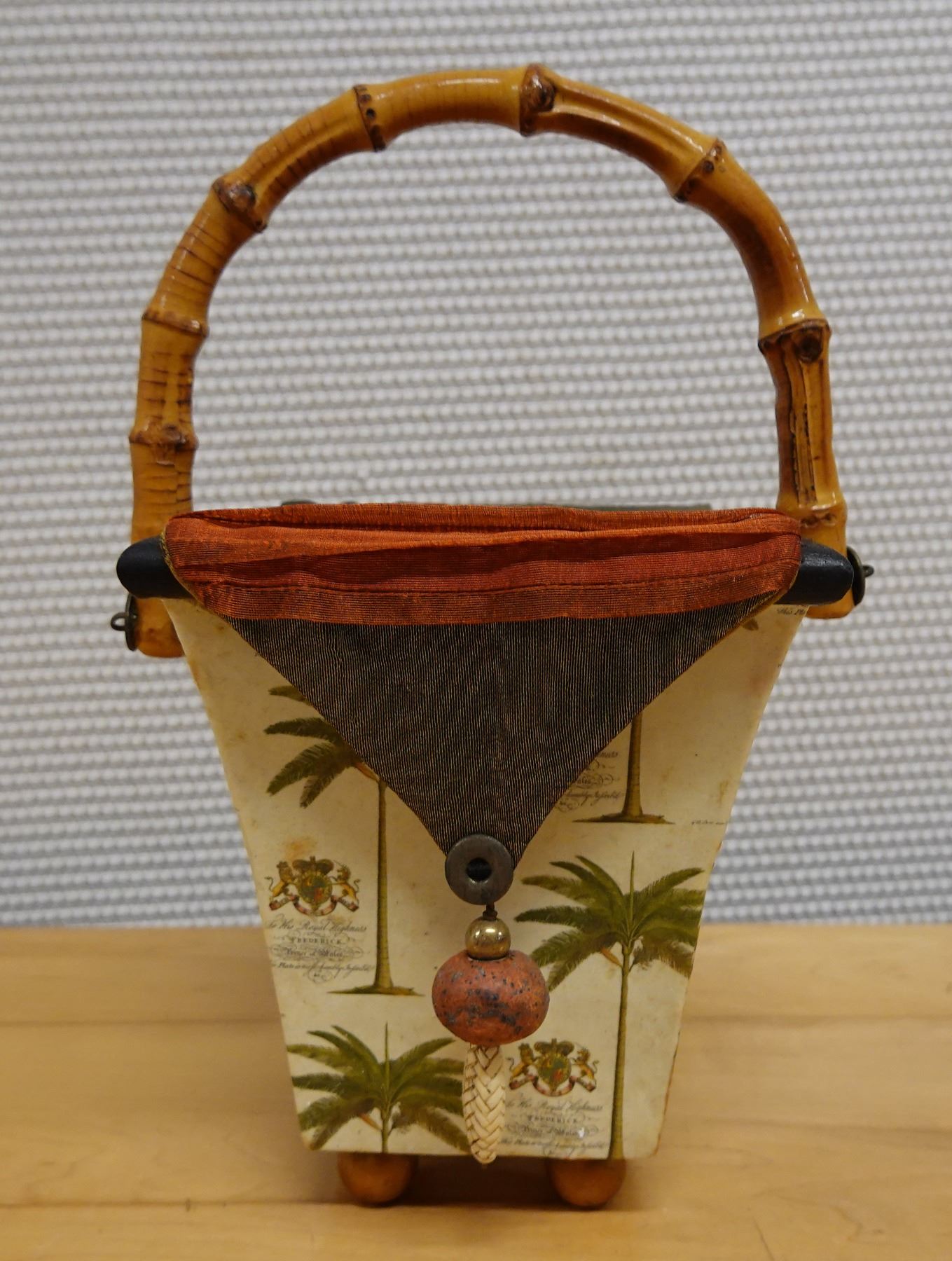 Two Ladies Bag w/ Palm Trees & Cinnabar Closure, Made in Hawaii by Rachael 6.5" x 6.5" x 10"H