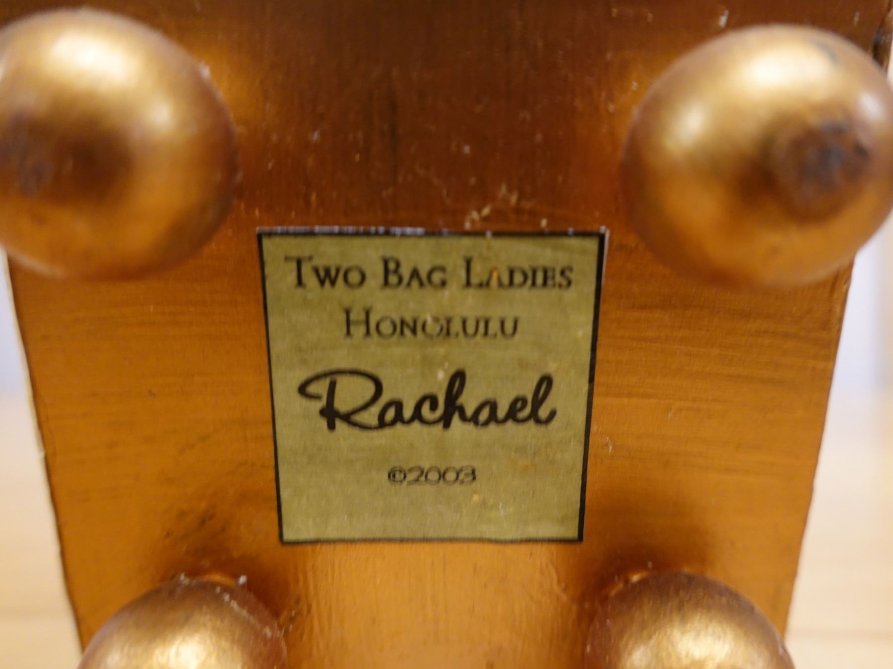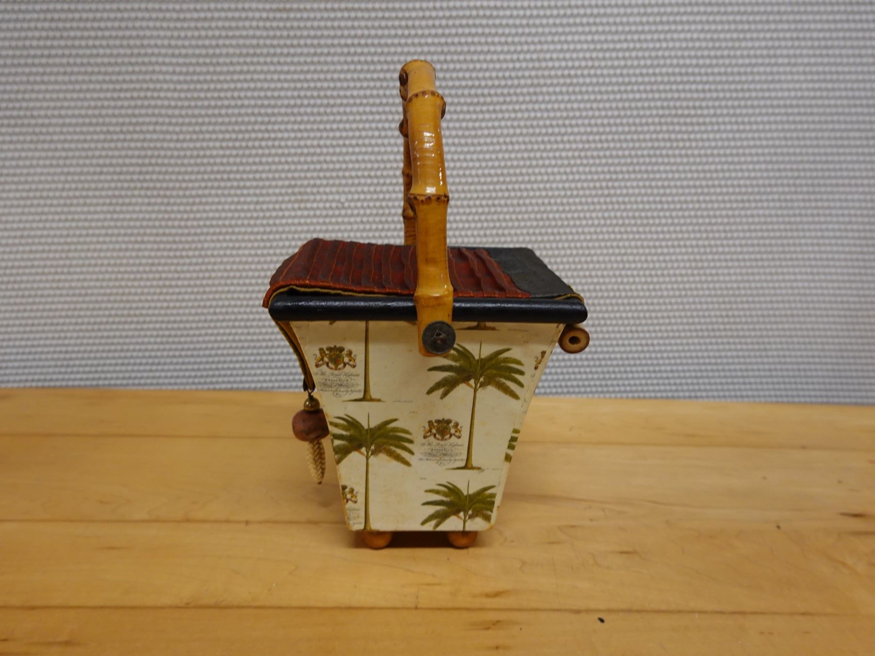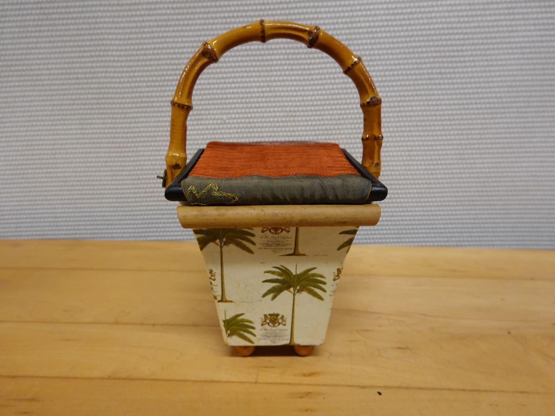 Two Ladies Bag w/ Palm Trees & Cinnabar Closure, Made in Hawaii by Rachael 6.5" x 6.5" x 10"H