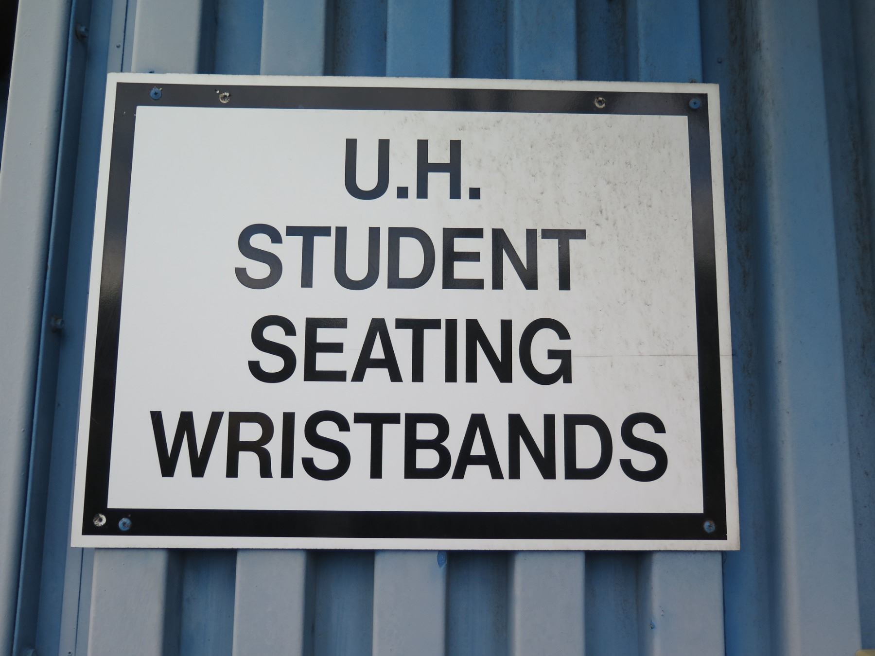 U.H. Student Seating Wristbands Sign 18"x24". Note: Signs will be removed if hanging prior to pick up