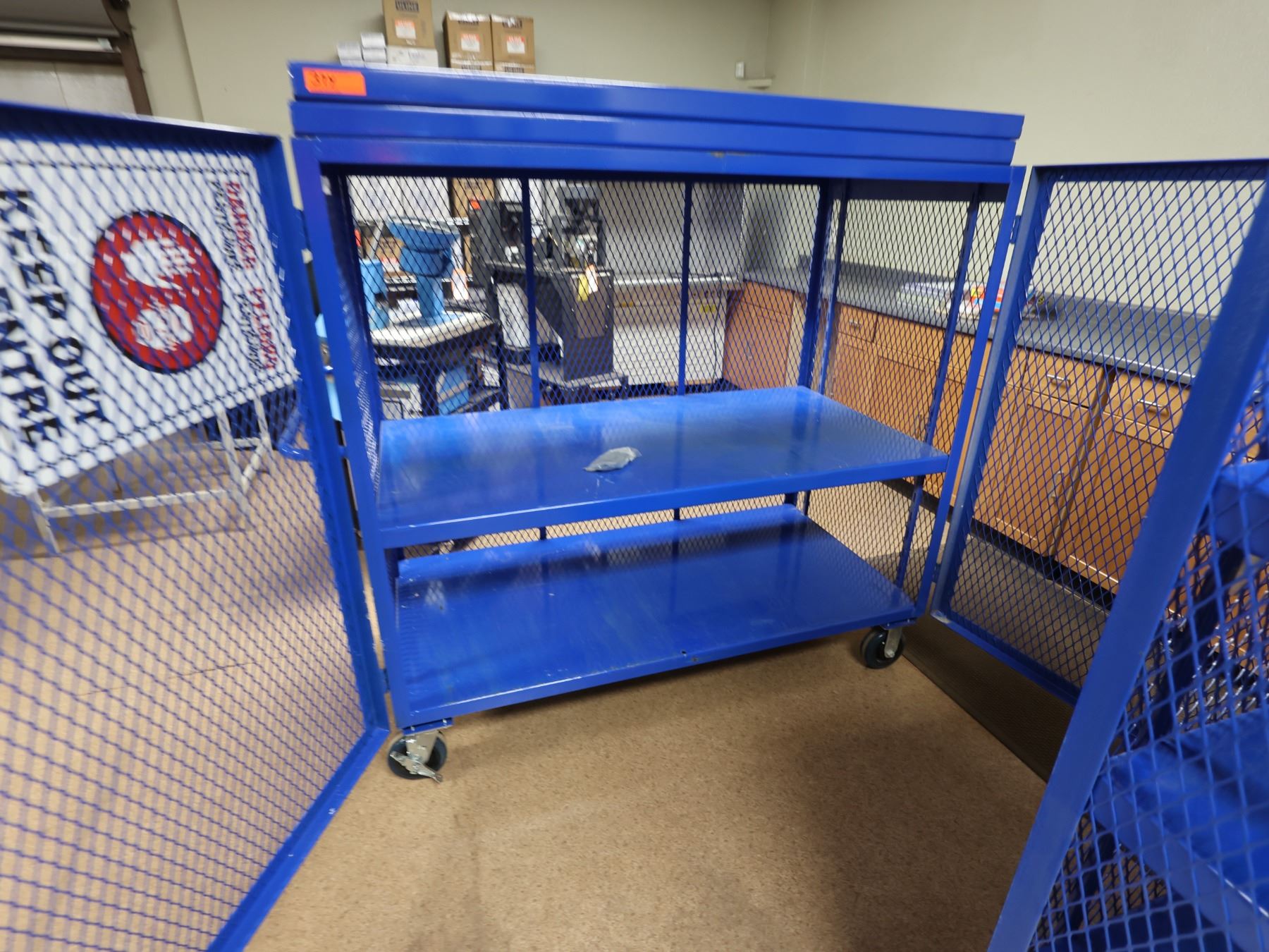 ULINE Metal Mesh Mobile Security Cage w/ 2 Shelves on Top