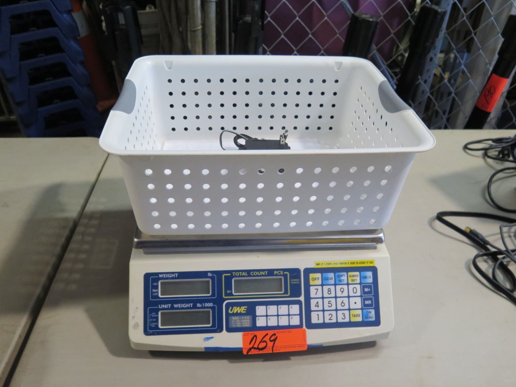 UWE Scale. Scale with the ability to tare the basket for weighing tickets. Great for weighing tickets or produce. Purchased from Young Scale in Honolulu.