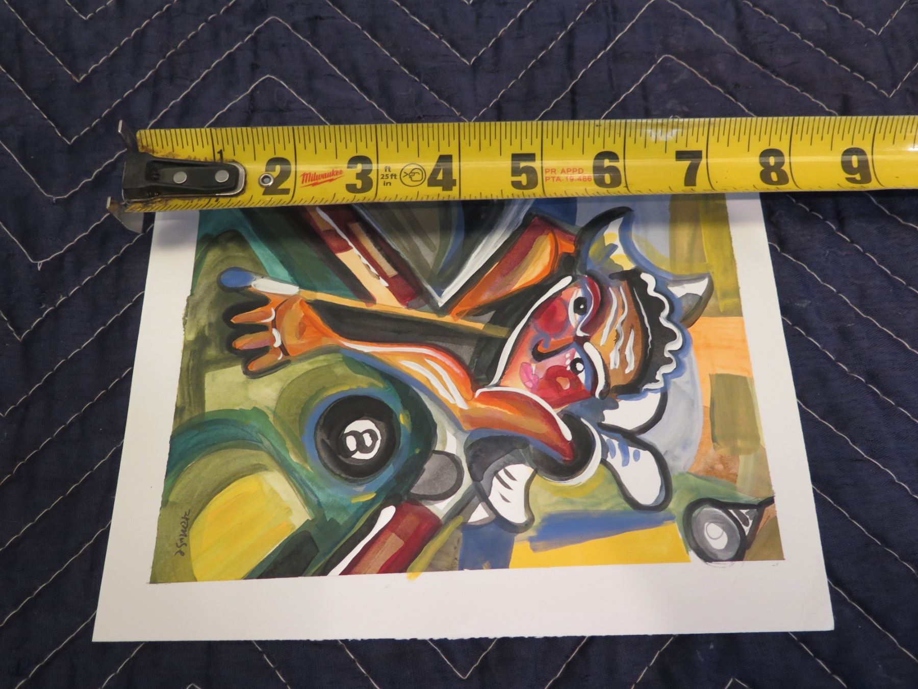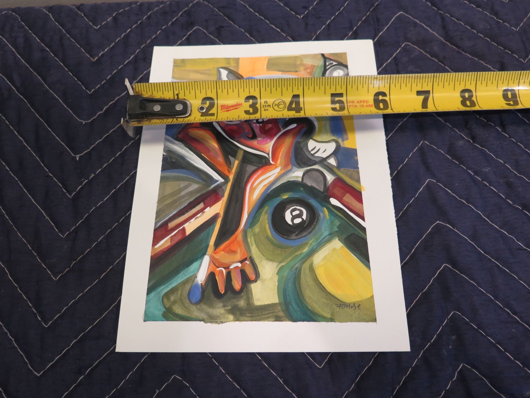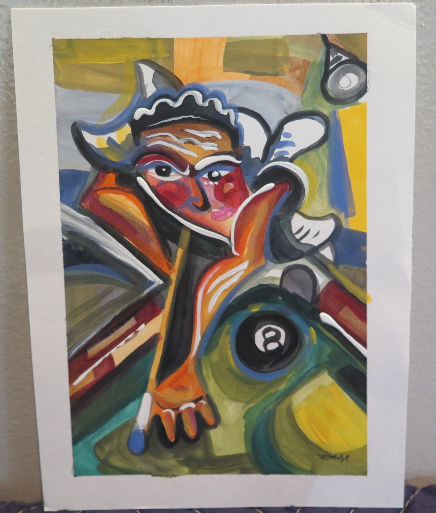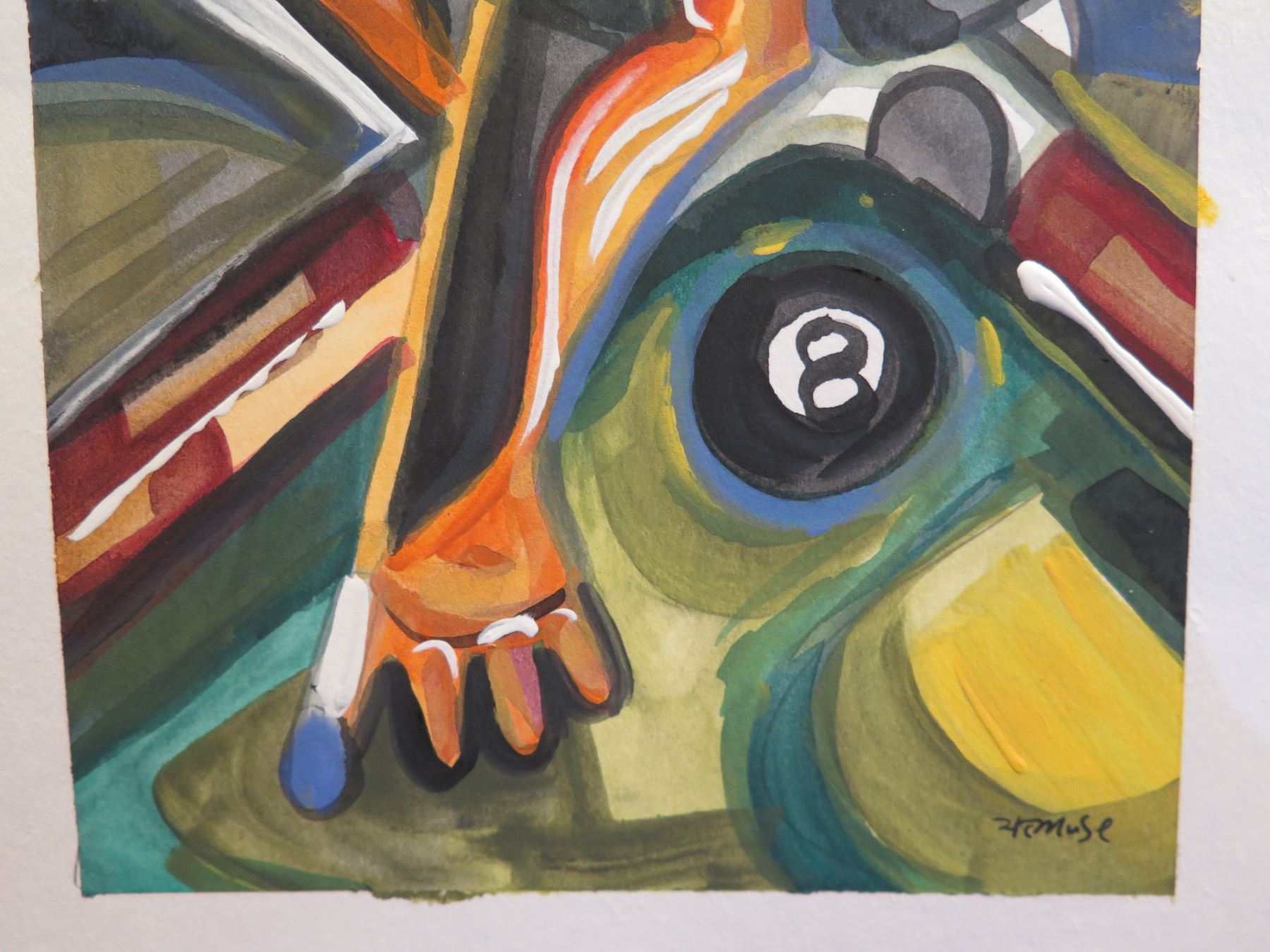 Unframed Abstract Artwork Billiard Pool Themed Signed Henry Muse 2011 8"x6"