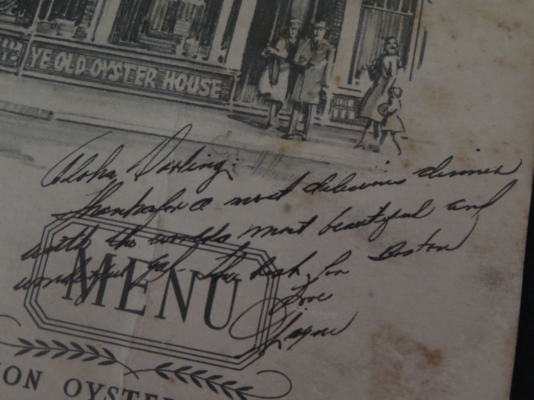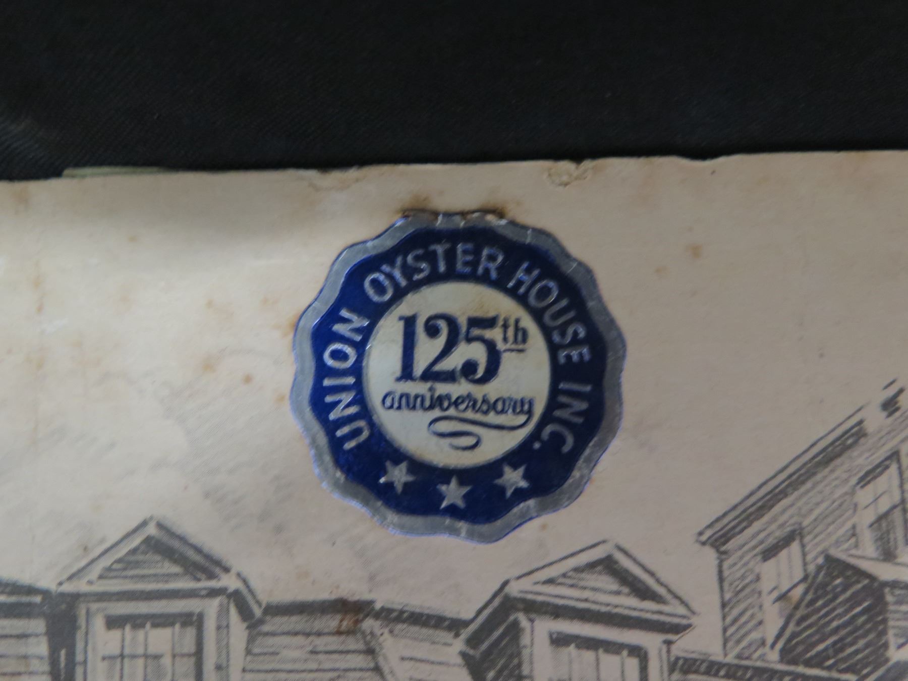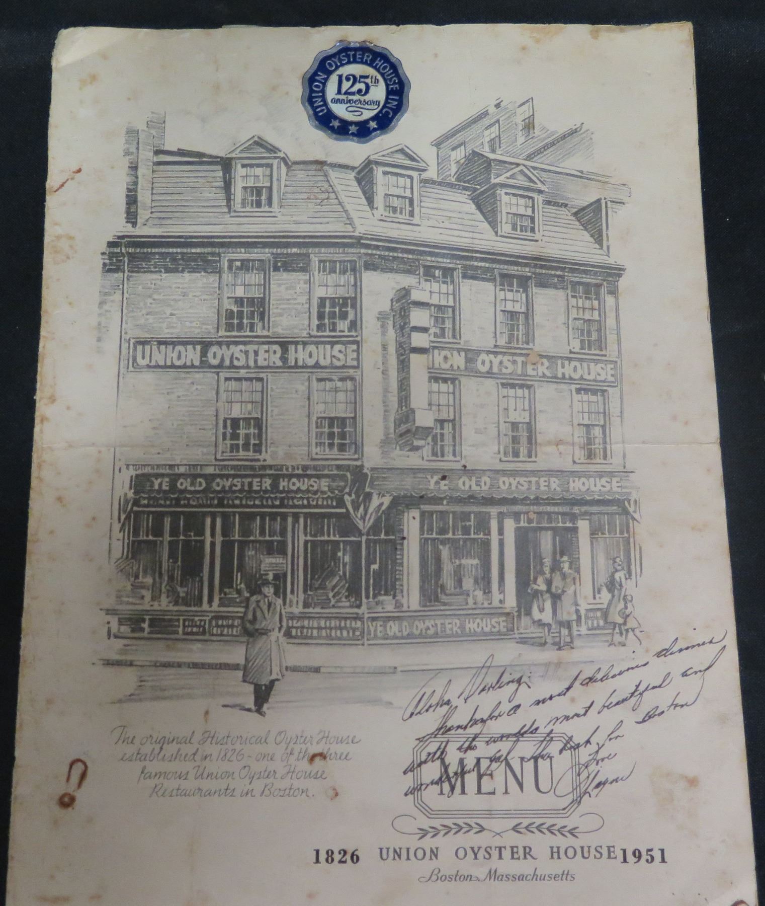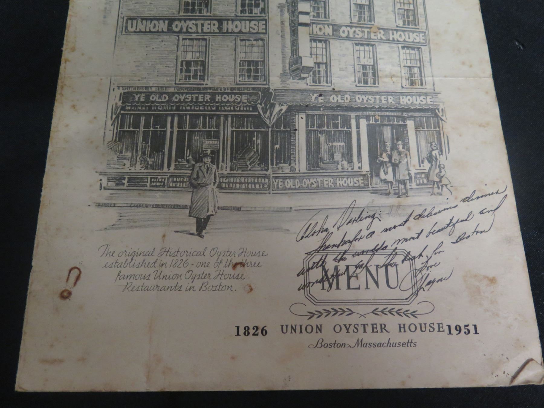 Union Oyster House 1826-1951 125th Anniversary Menu, Signed 18"x12"