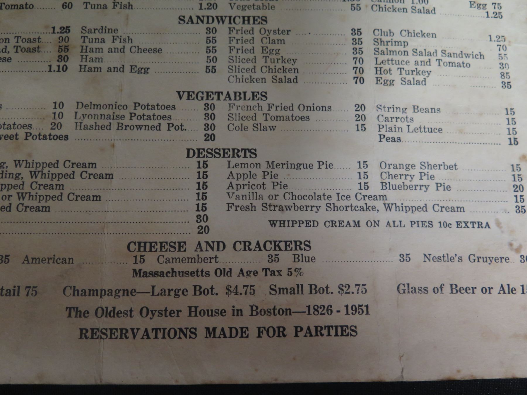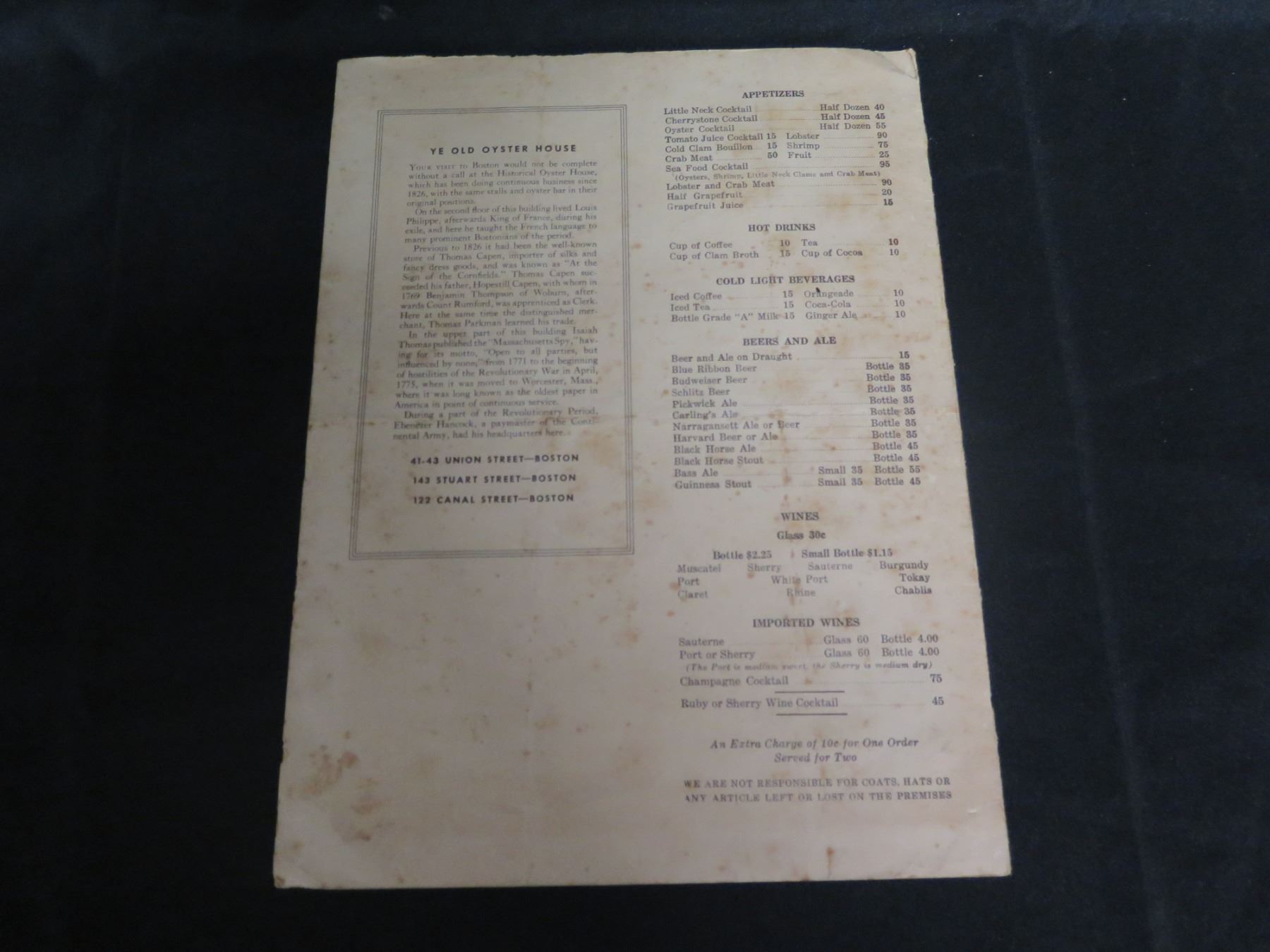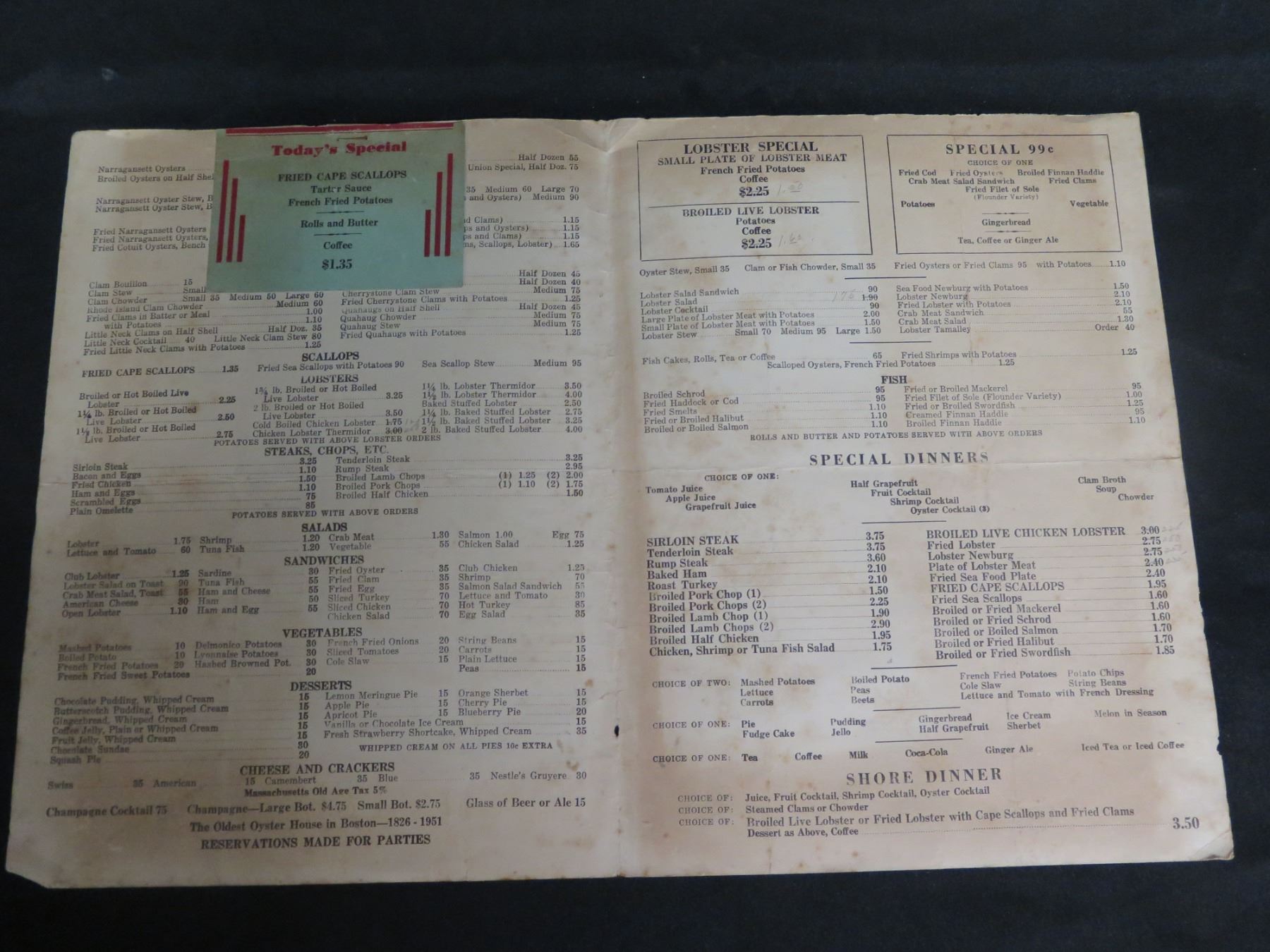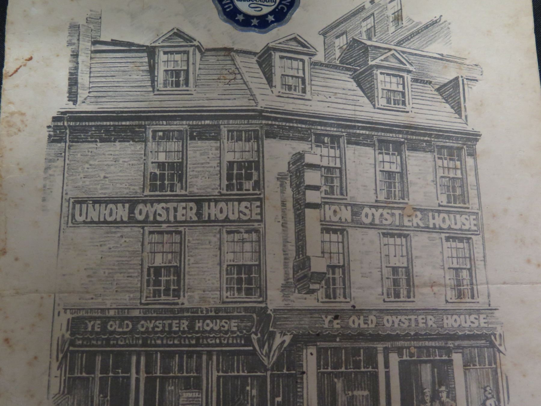 Union Oyster House 1826-1951 125th Anniversary Menu, Signed 18"x12"