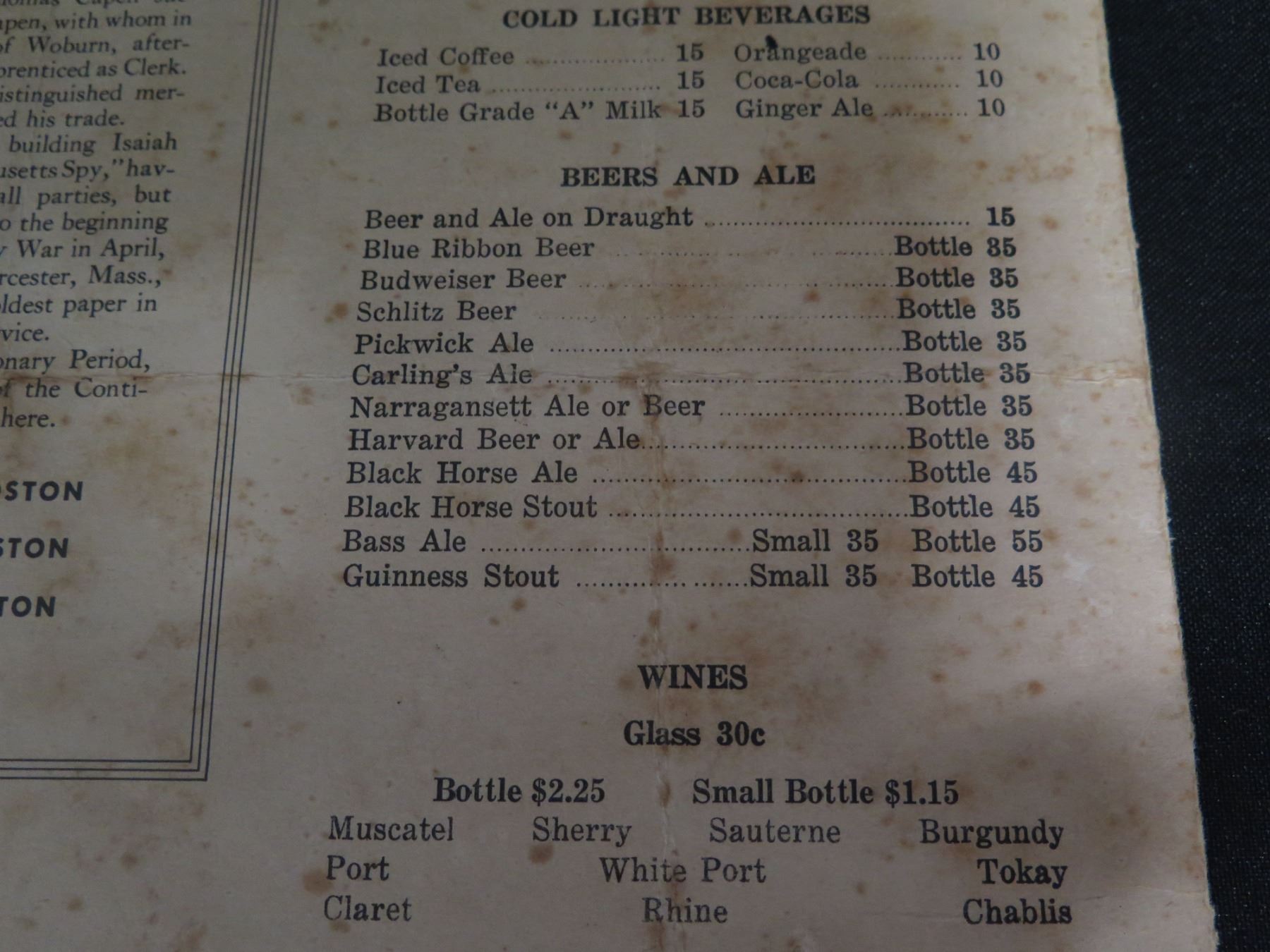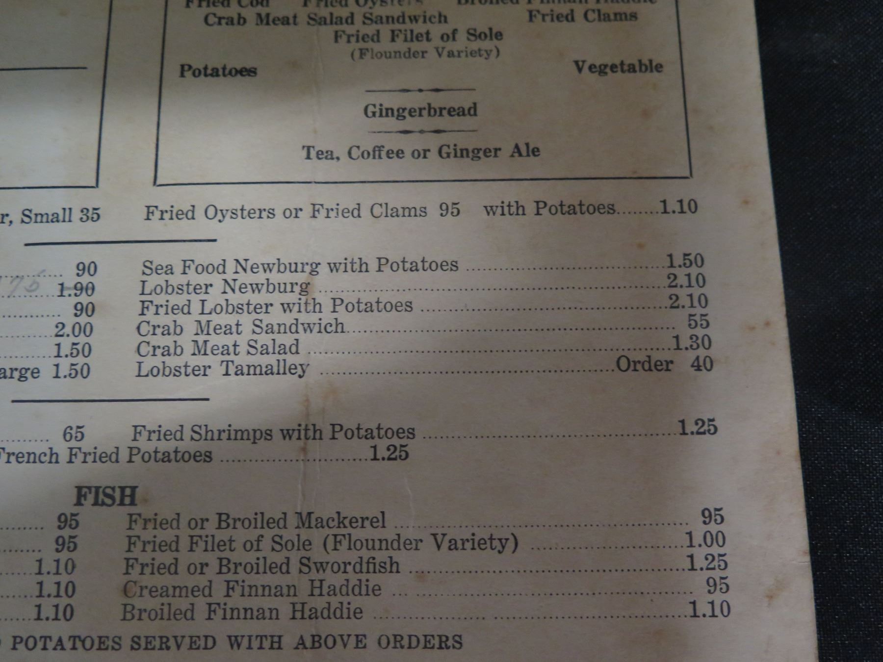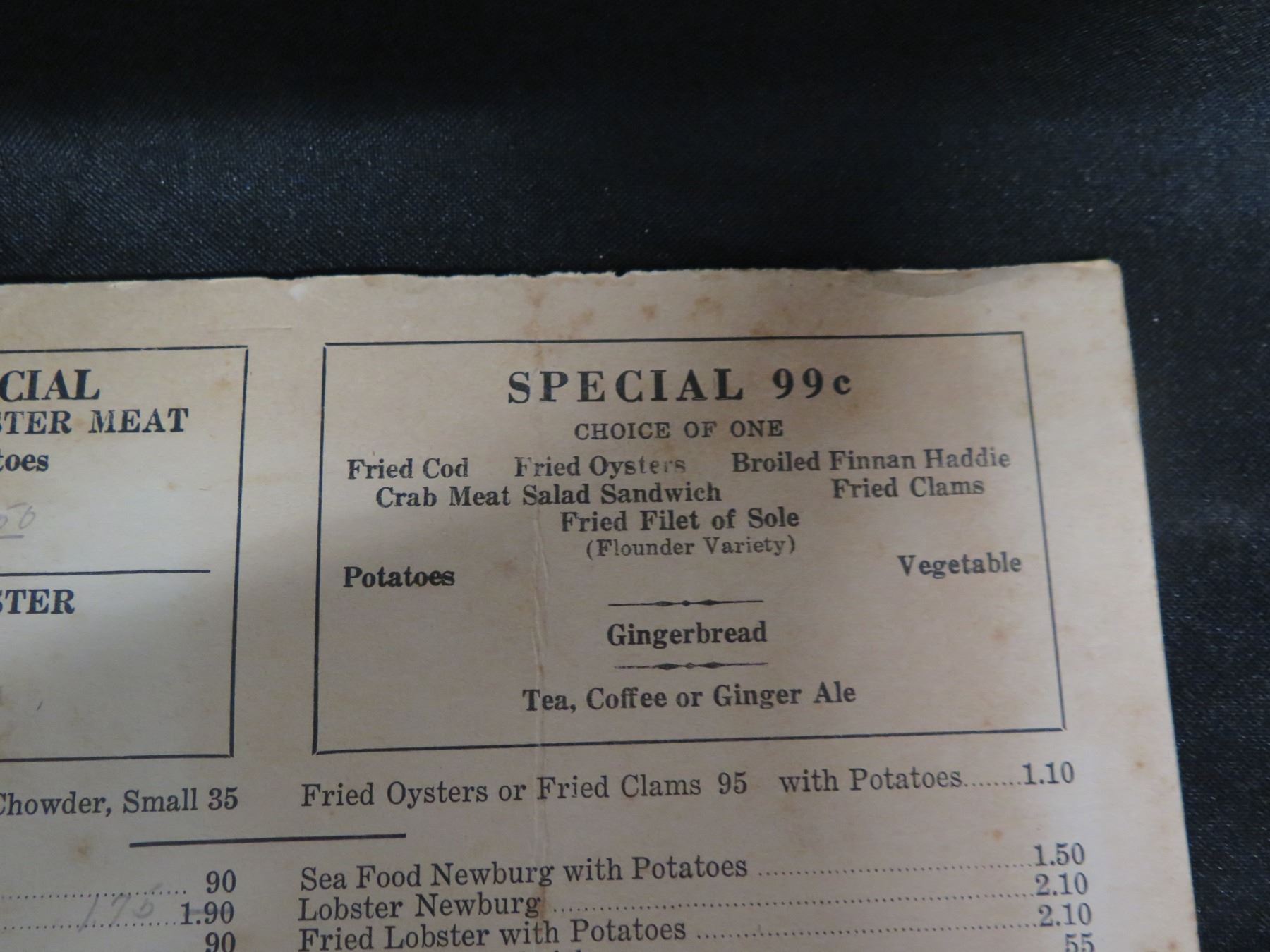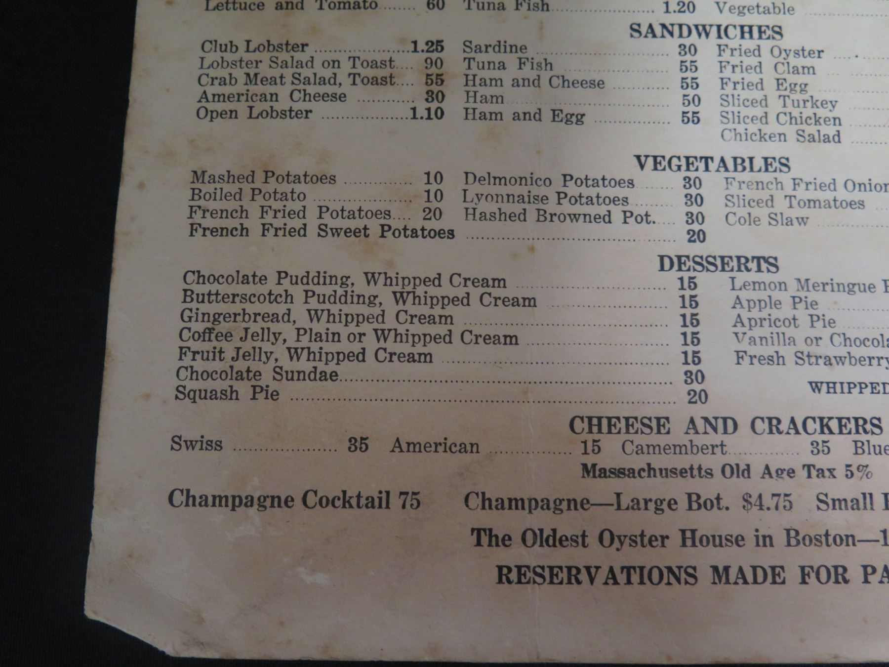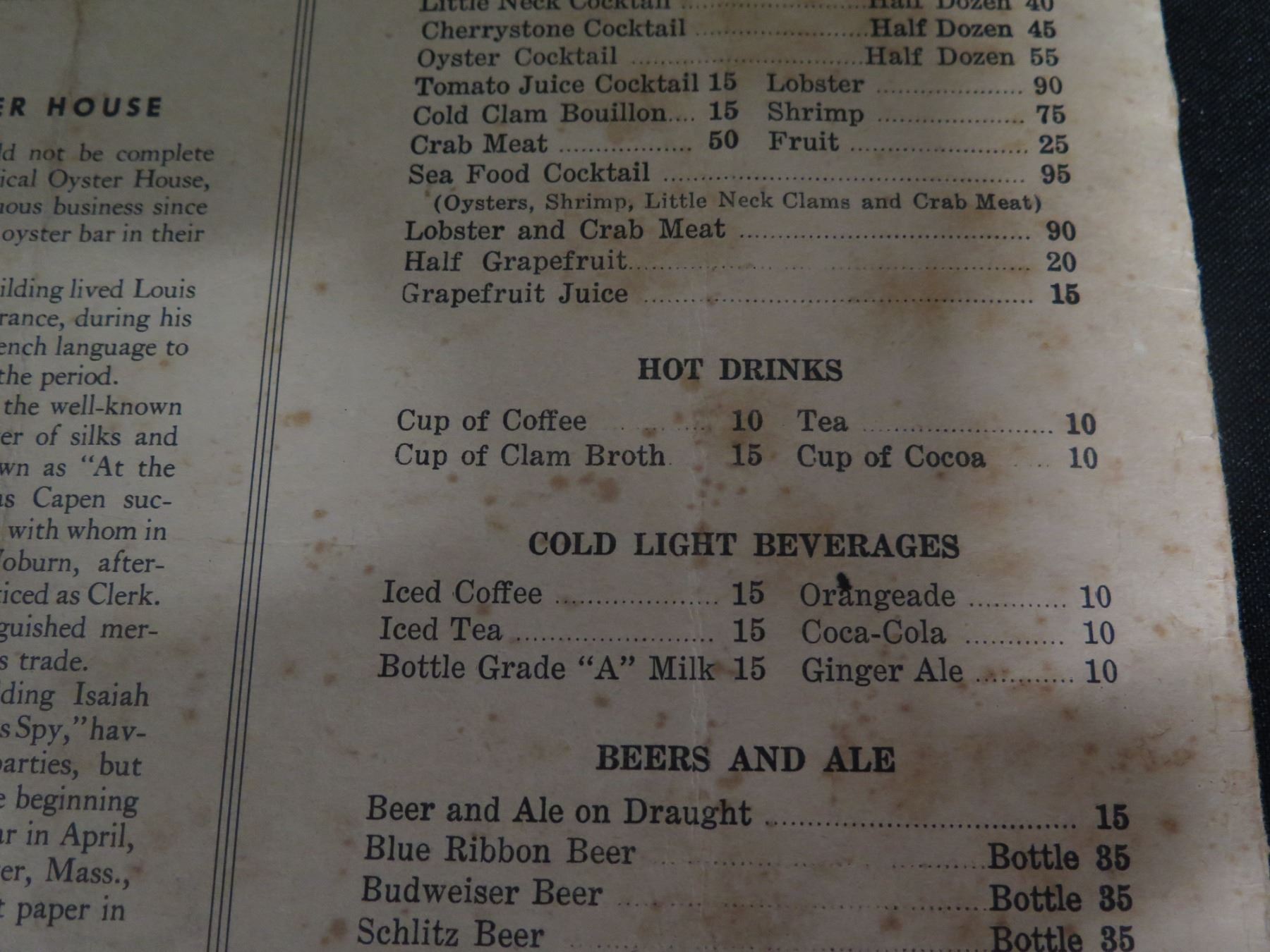 Union Oyster House 1826-1951 125th Anniversary Menu, Signed 18"x12"