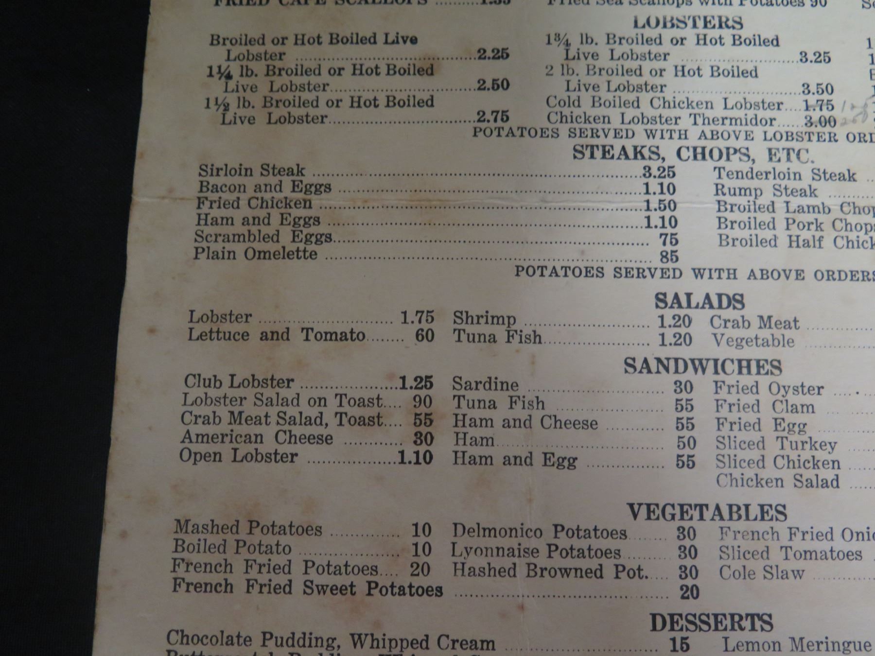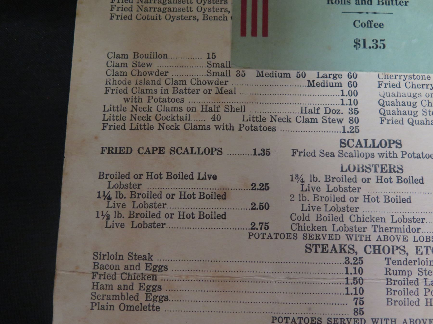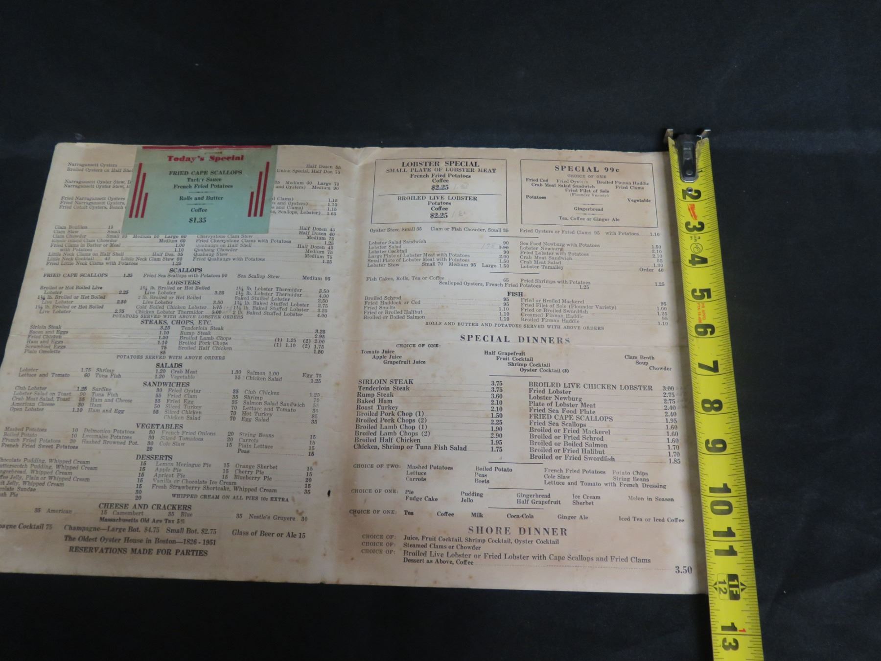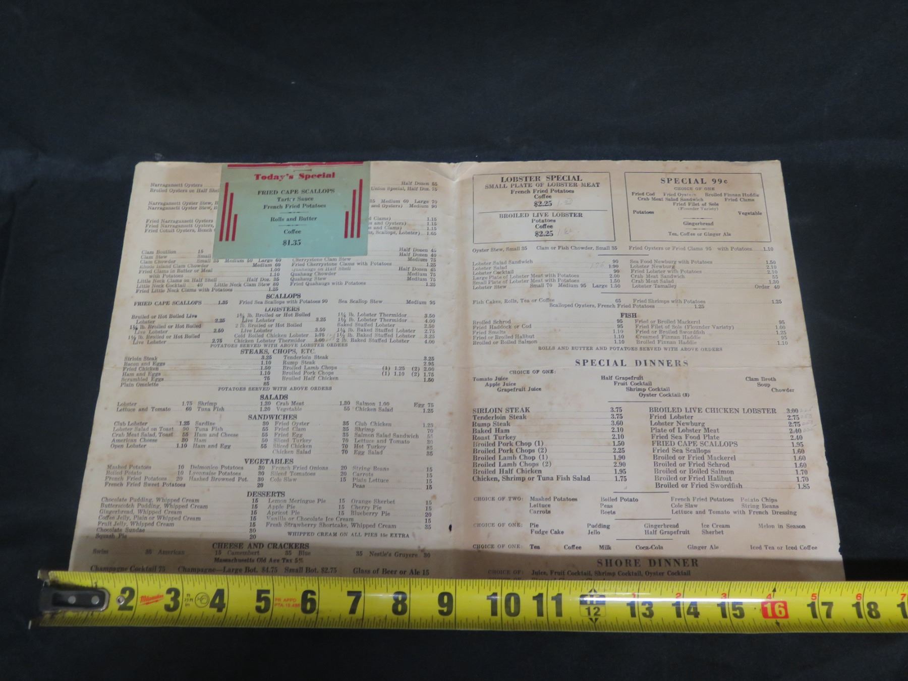 Union Oyster House 1826-1951 125th Anniversary Menu, Signed 18"x12"