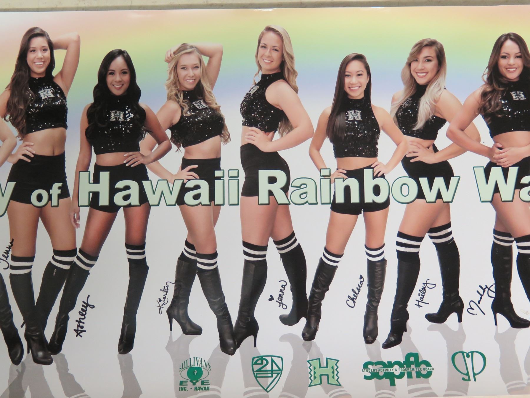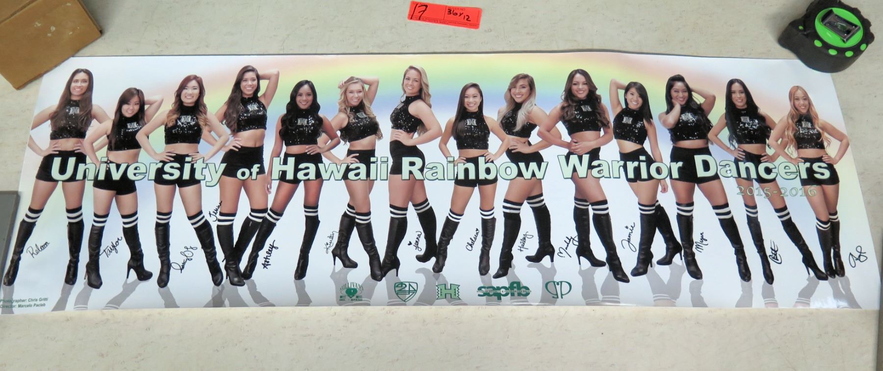 University of Hawaii Rainbow Warrior Dancers Banner, Signed, 36"x12"