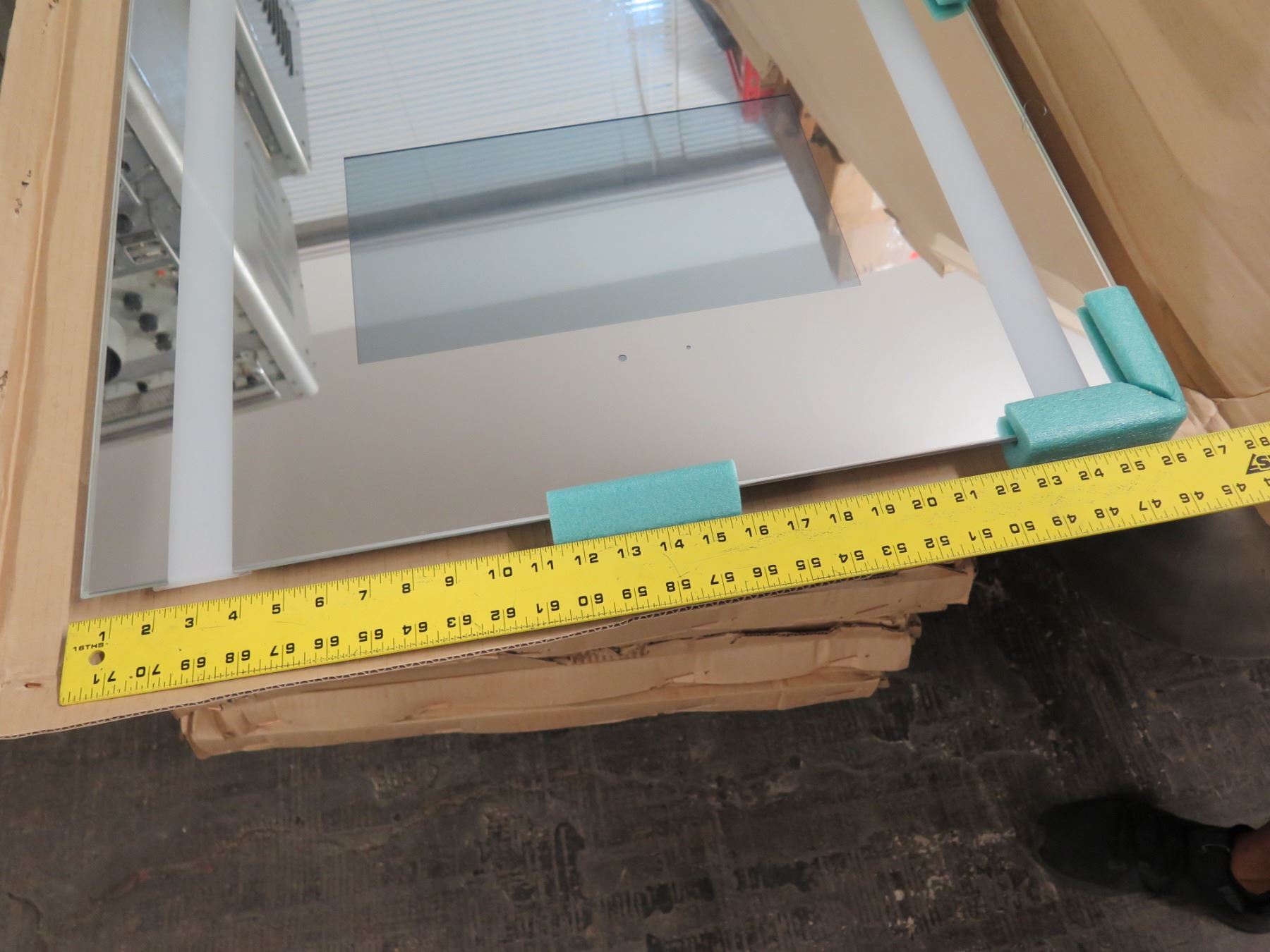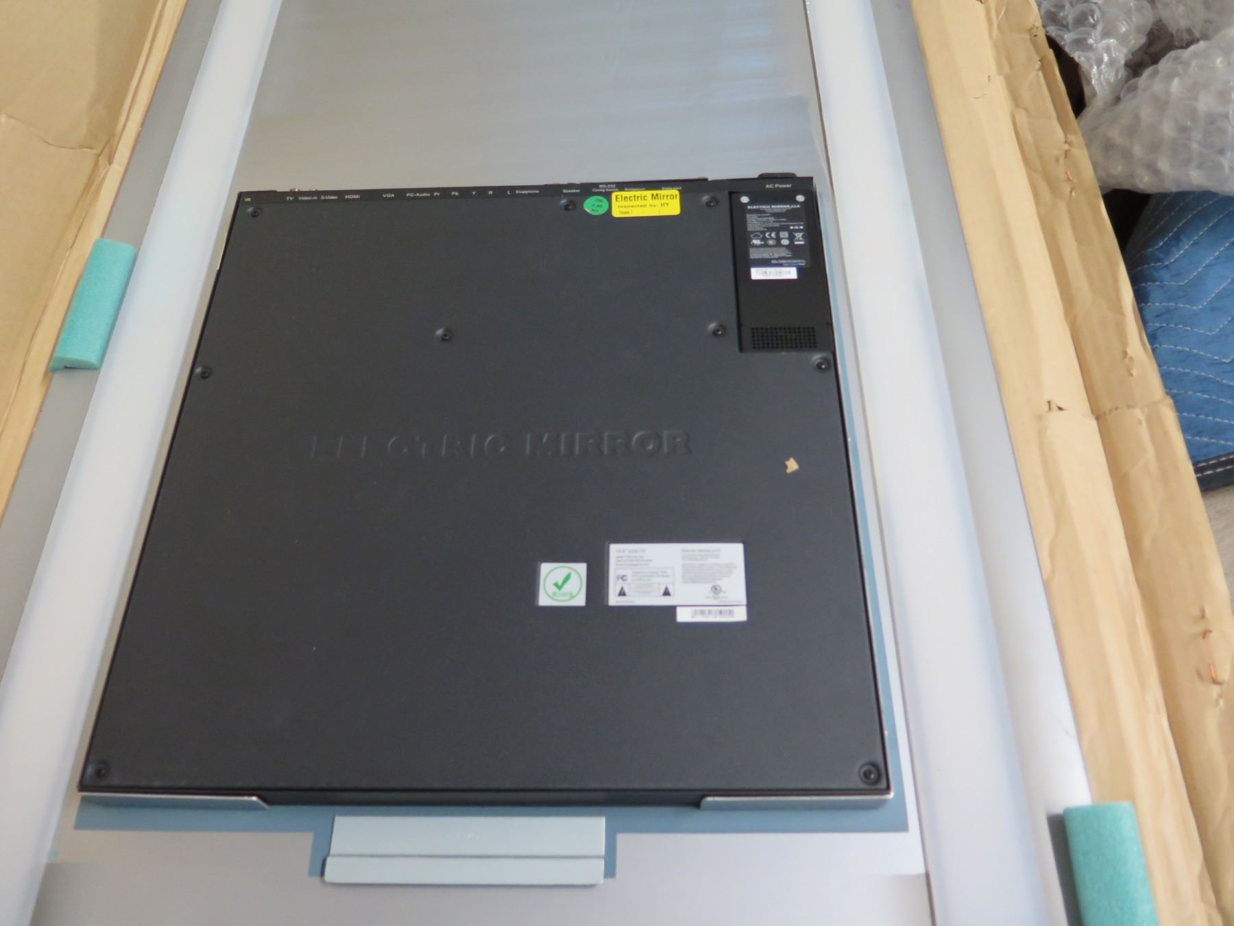 Unused Electric Mirror, LLC. Lighted Hospitality TV Mirror w/ Built in 15.6" LCD TV, 26"x62" Overall. There's indication on the box that these were too large for the designated space (i.e. spa suite bathroom). This has not been previously installed and appears to be unused.