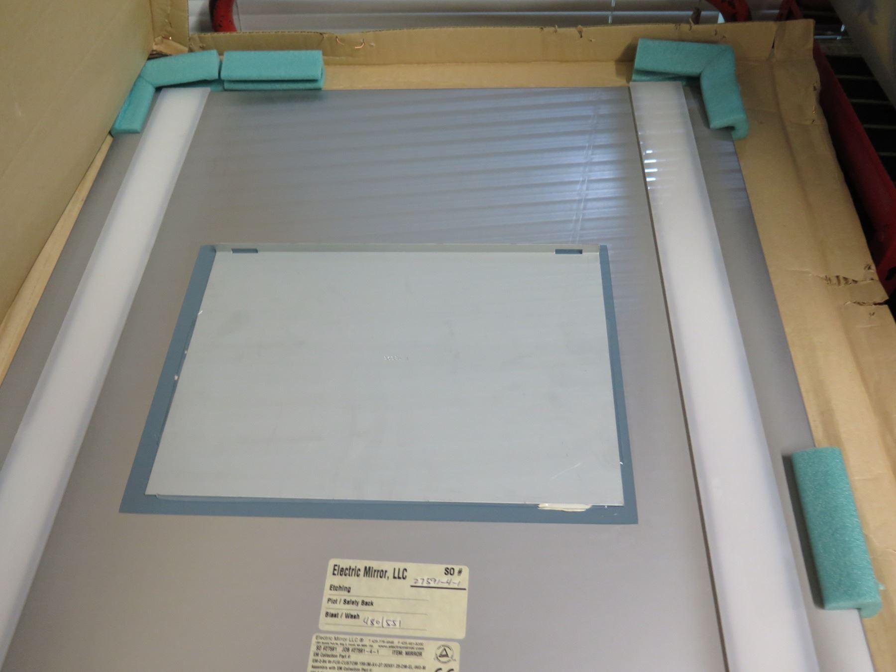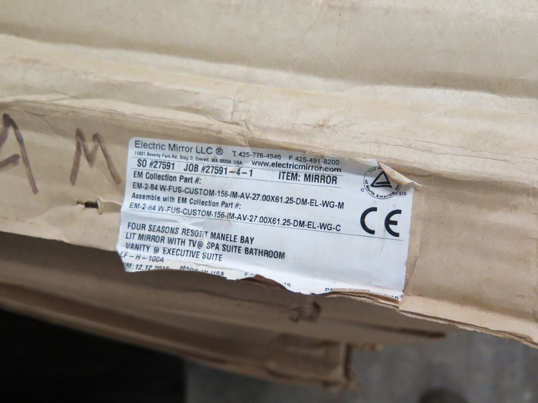 Unused Electric Mirror, LLC. Lighted Hospitality TV Mirror w/ Built in 15.6" LCD TV, 26"x62" Overall. There's indication on the box that these were too large for the designated space (i.e. spa suite bathroom). This has not been previously installed and appears to be unused.
