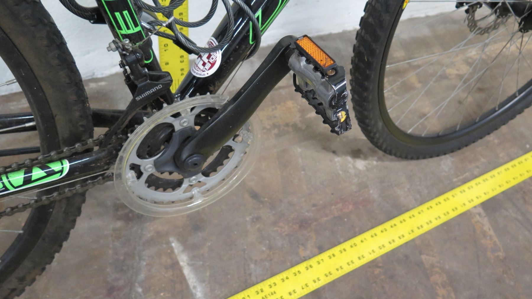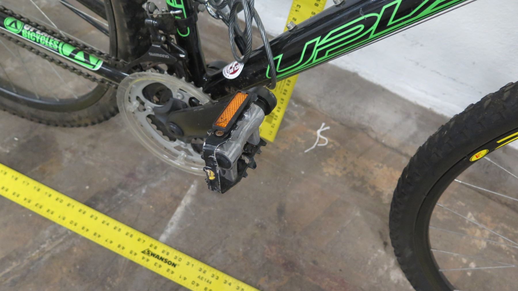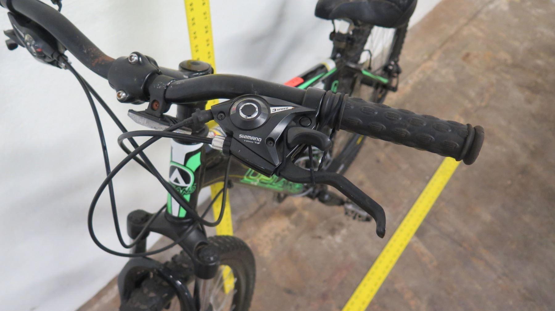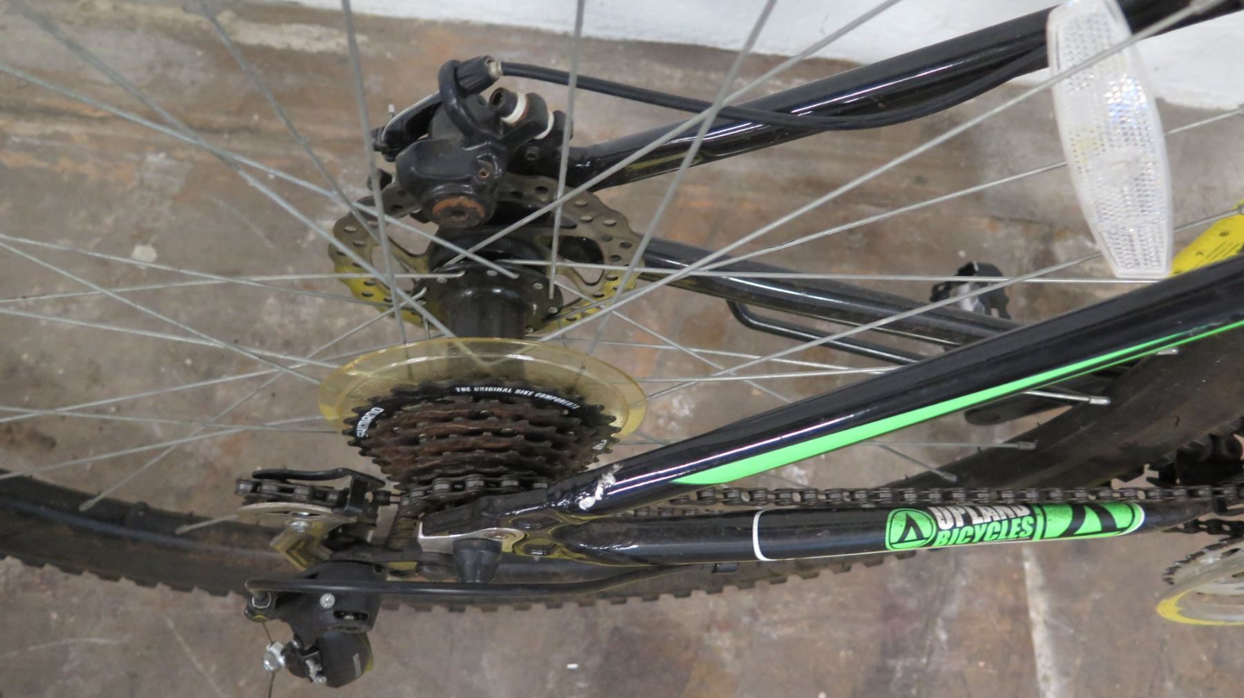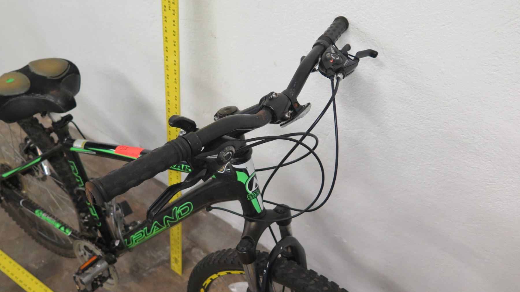 Upland Raider Shimano 3-Speed Mountain Bike, Black/Green. Bikes have been in storage at the HPD warehouse for some time and will need to have tires inflated and basic maintenance done. May be missing parts.