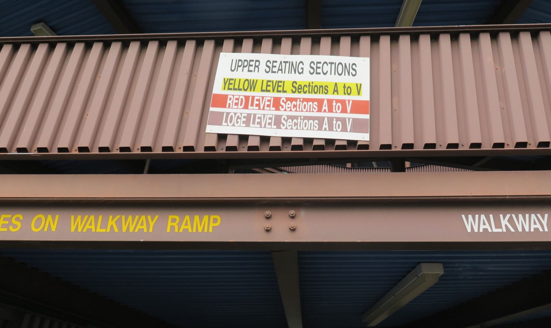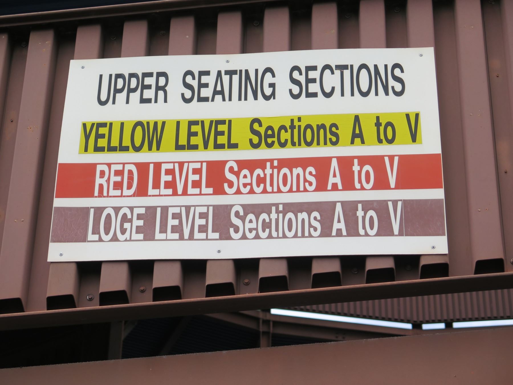Upper Seating Sections w/ Color Coded Levels 46"x38". Note: Signs will be removed if hanging prior to pick up