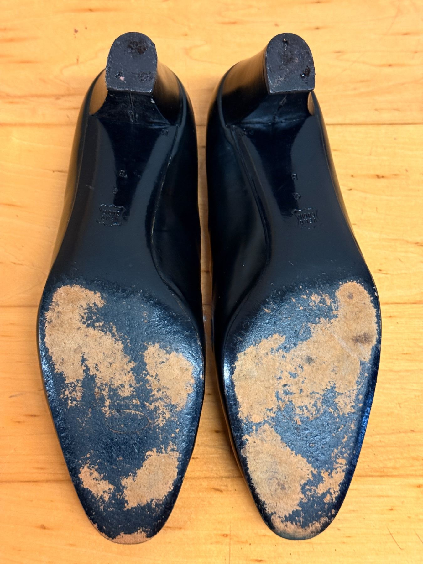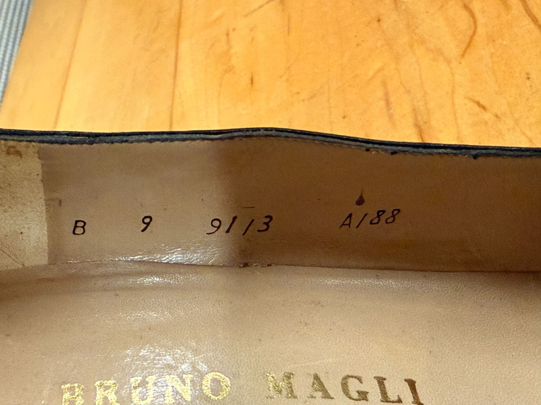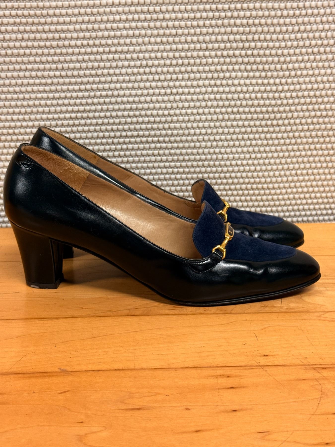 Sophisticated Bruno Magli loafers combining smooth black leather with plush navy suede uppers. Finished with gold horsebit hardware for a polished, timeless look. Lightly worn insoles from storage. A classic Italian-made style perfect for elevated everyday wear.