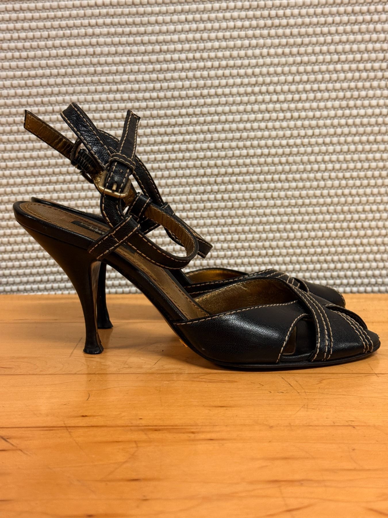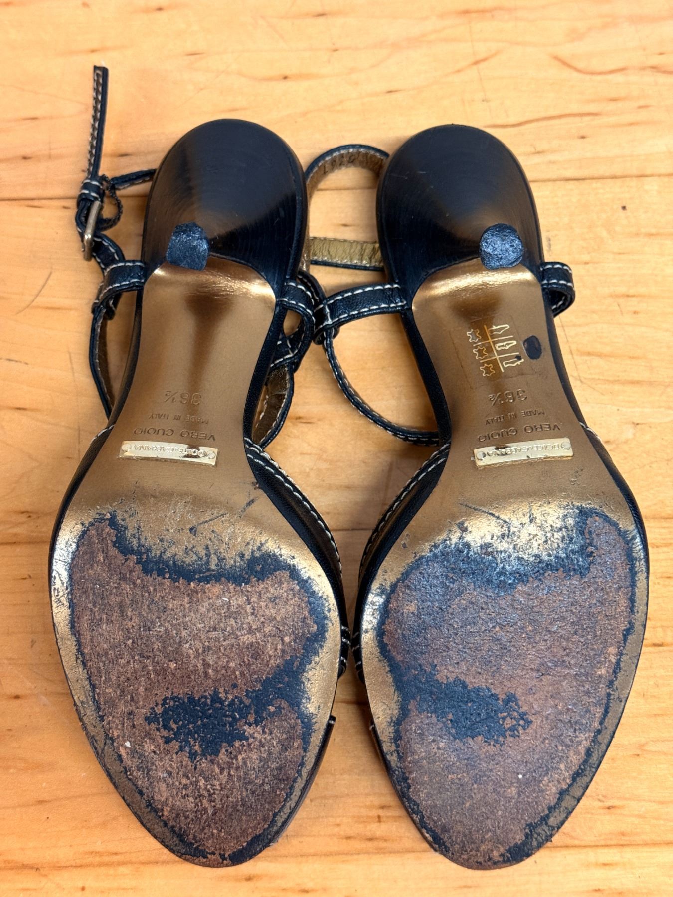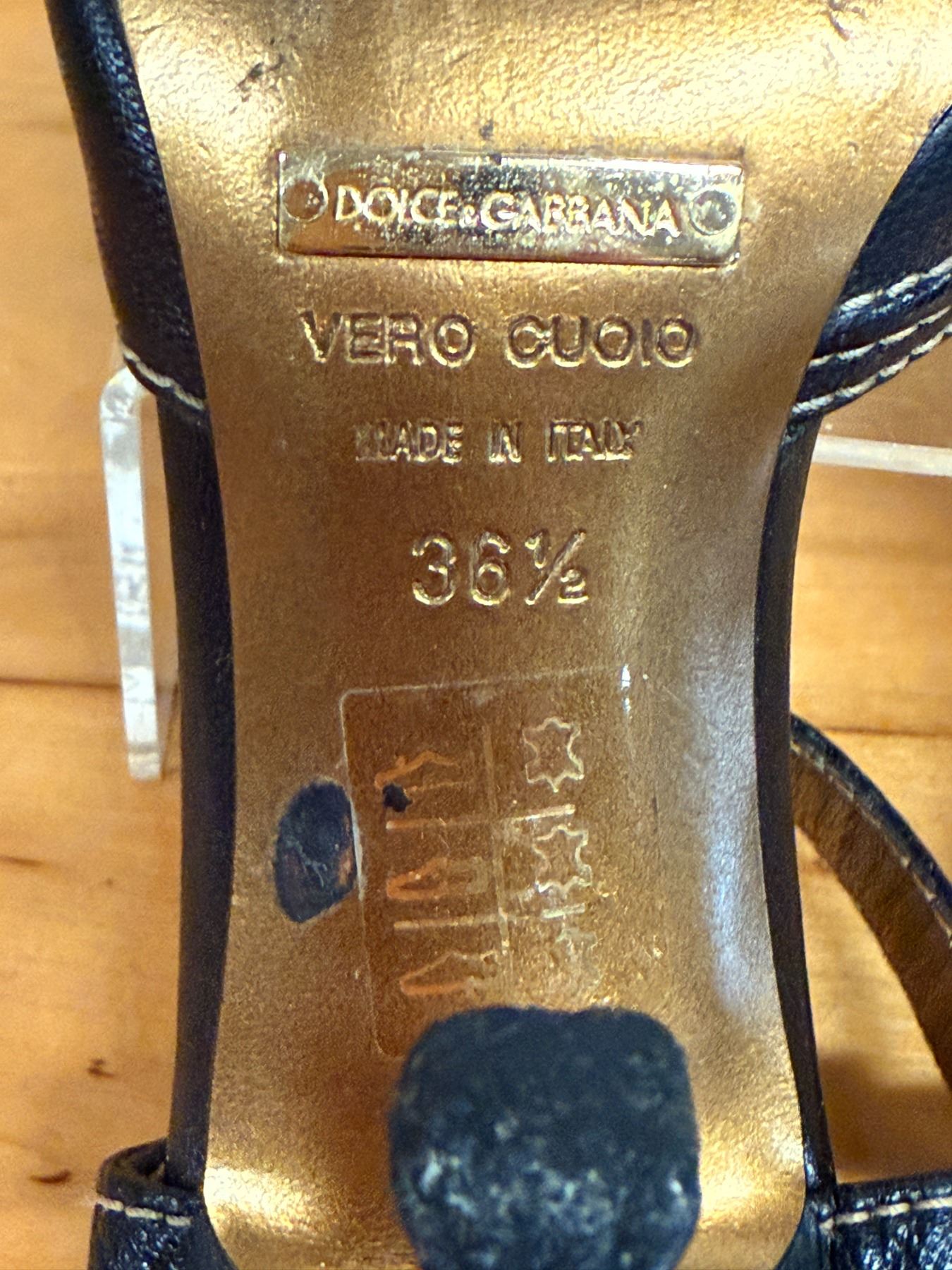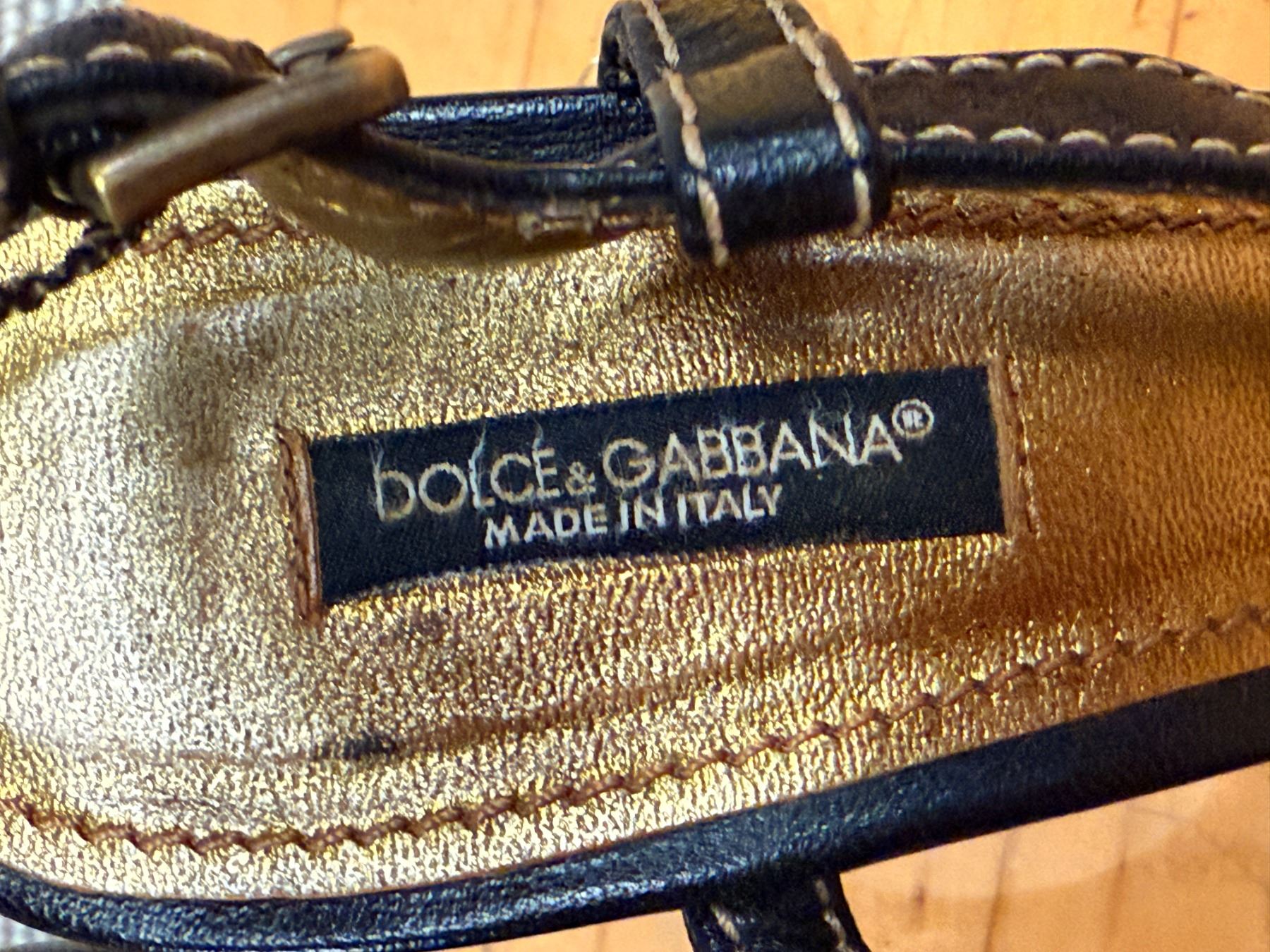 Used Dolce & Gabbana Black Sandals w/ Heels, Sz. 36.5, (heel needs repair)