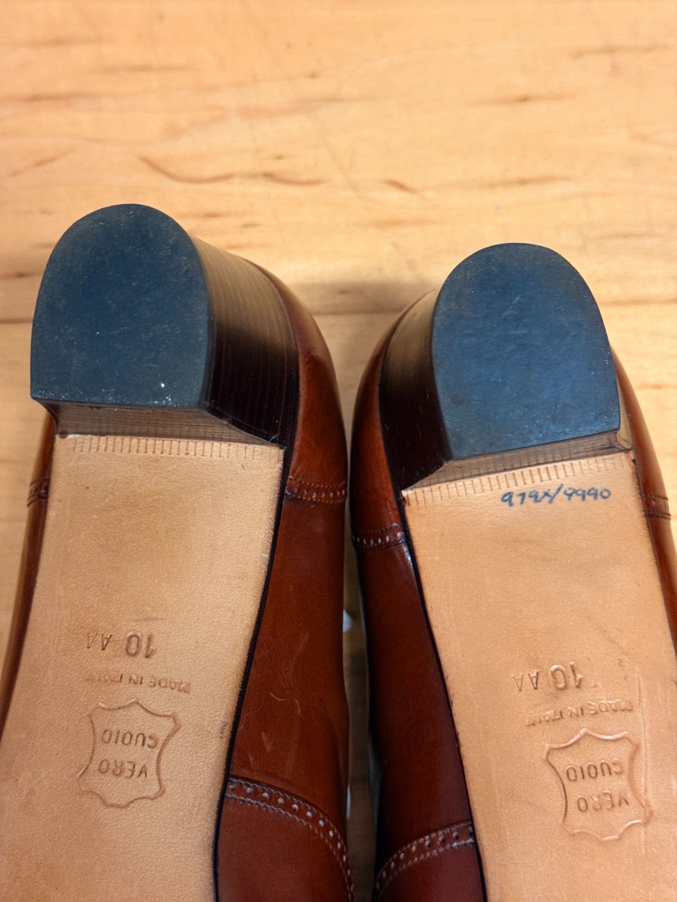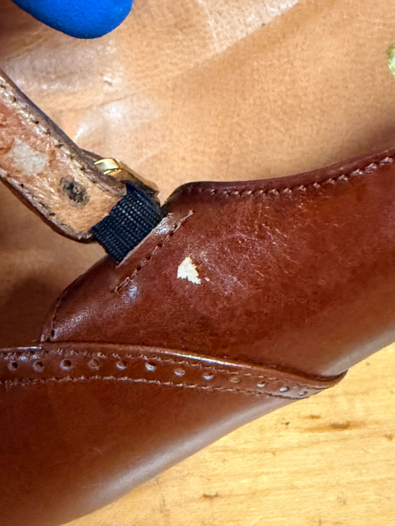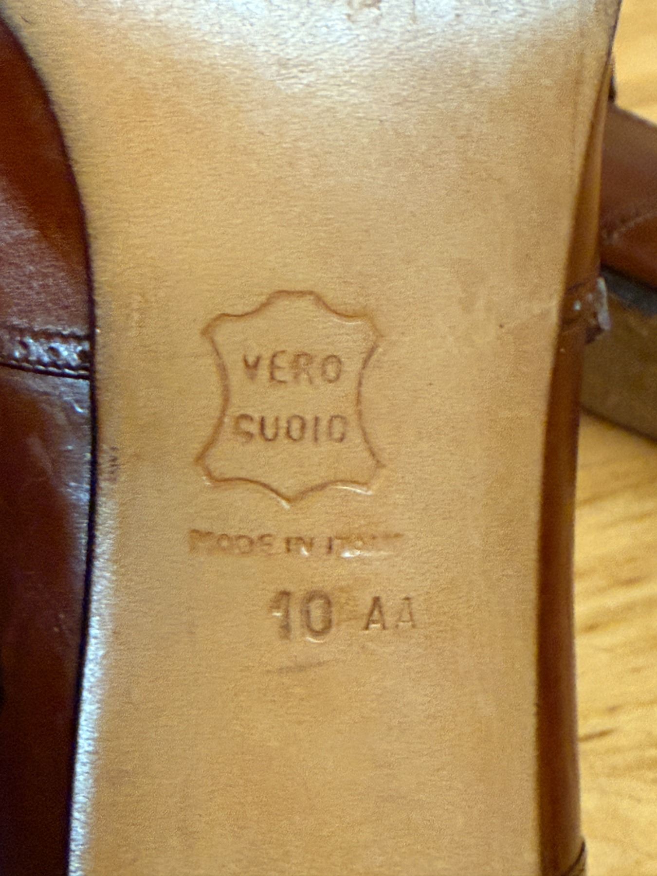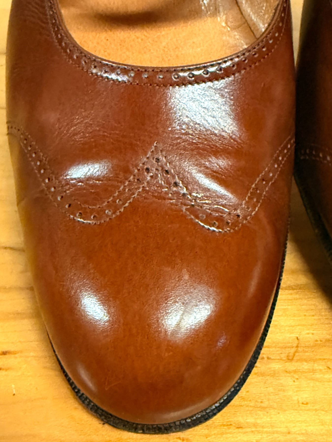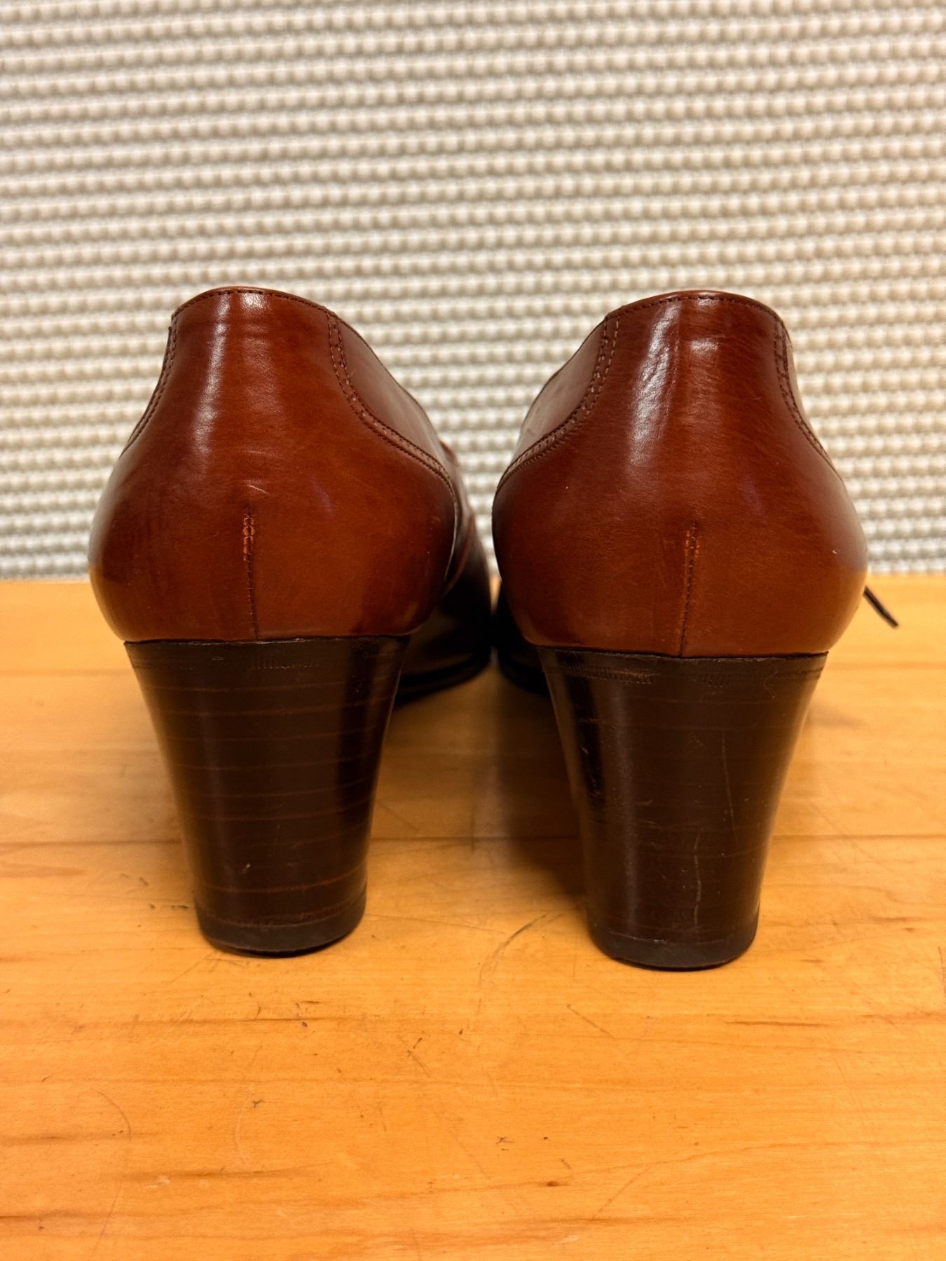 Rich brown leather Mary Jane heels with classic Ferragamo craftsmanship, gold buckle straps, and subtle stitched detailing. Timeless, polished, and ideal for everyday or office wear.