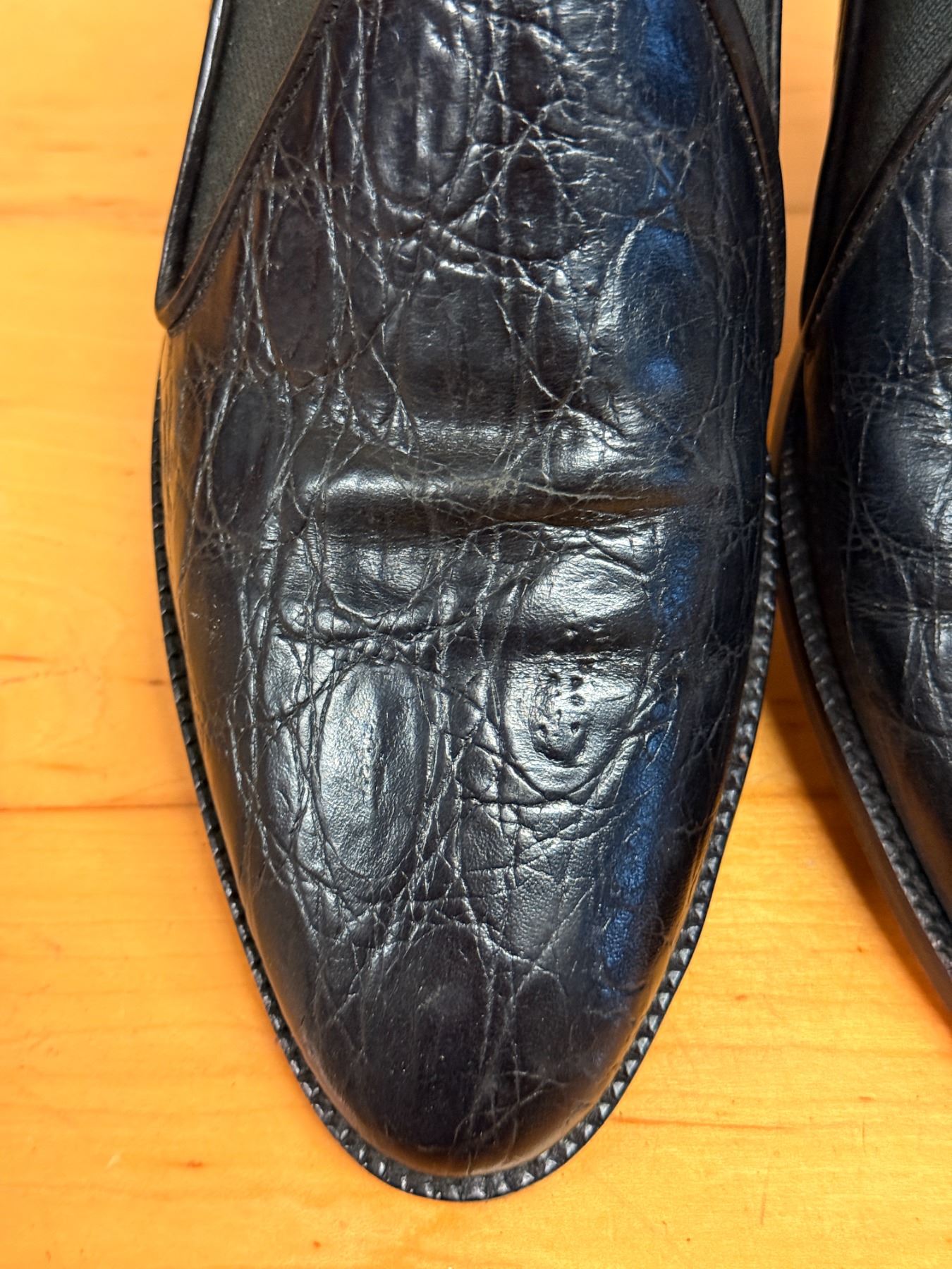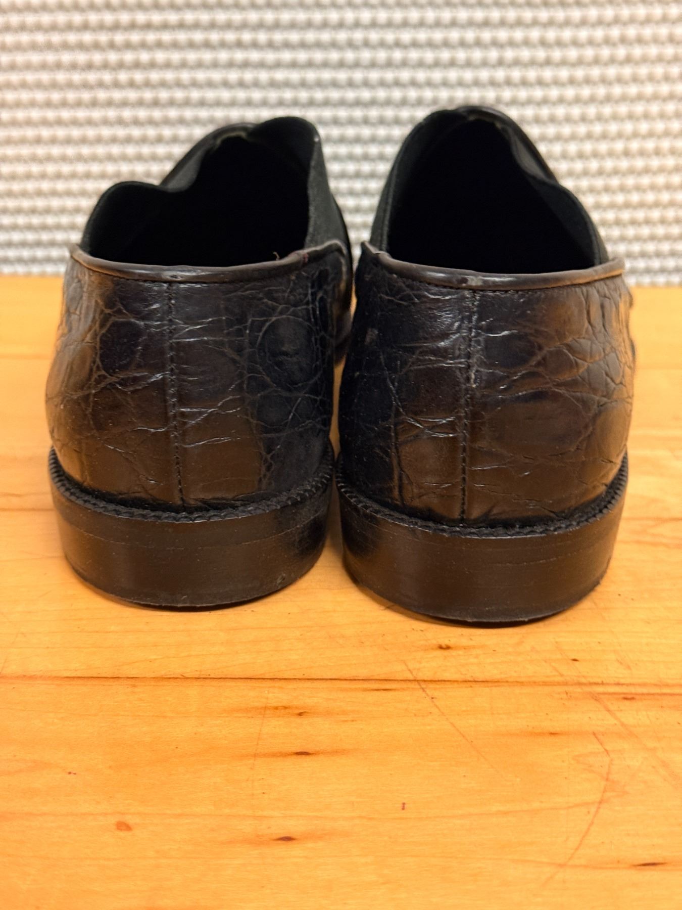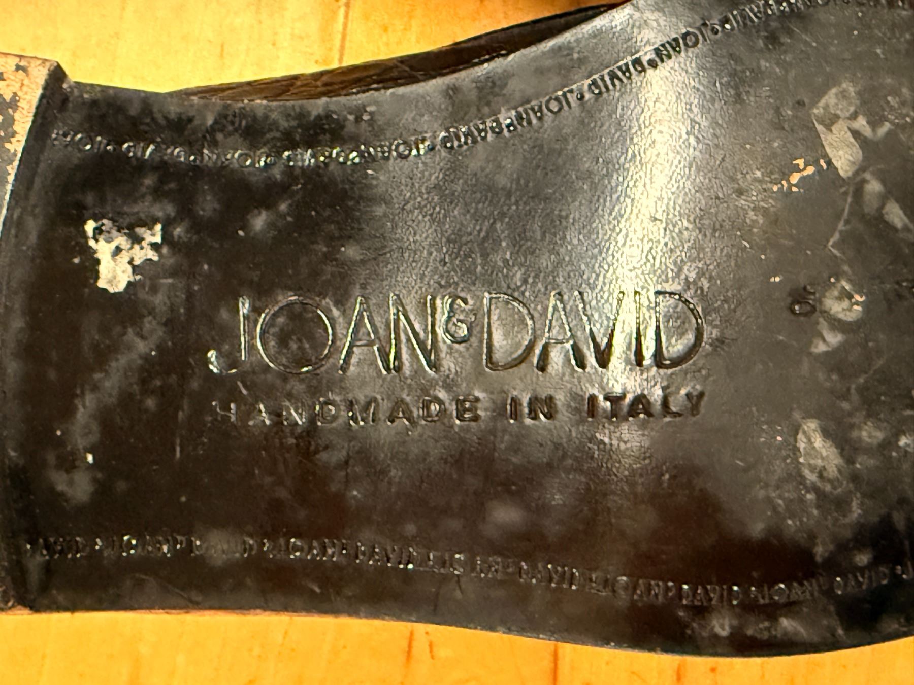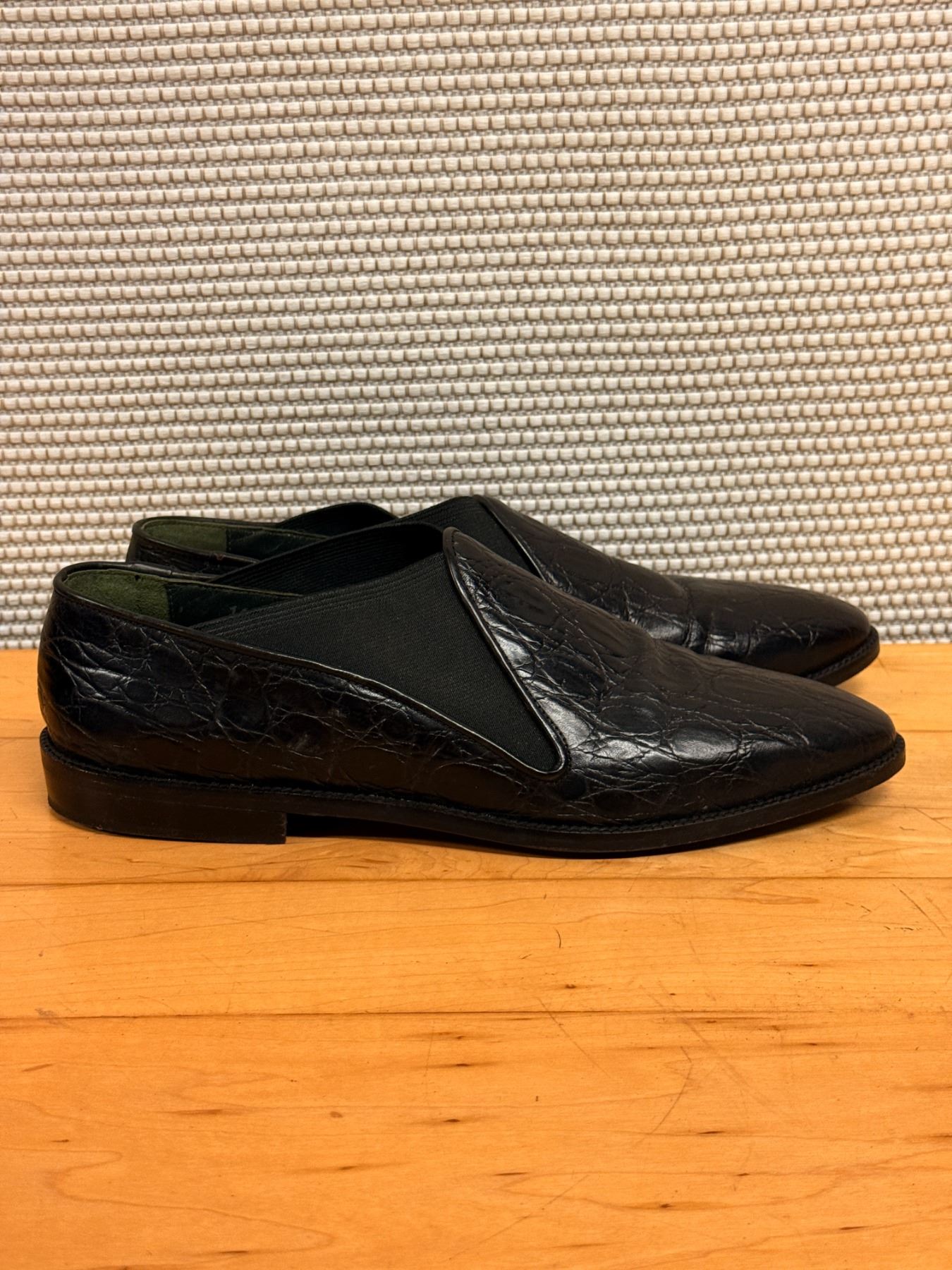 Classic Joan & David loafers crafted in black print-calf leather with a soft, textured finish. Features an easy slip-on design with stretchy side panels, cushioned interior, and timeless Italian craftsmanship. A comfortable, versatile everyday style.