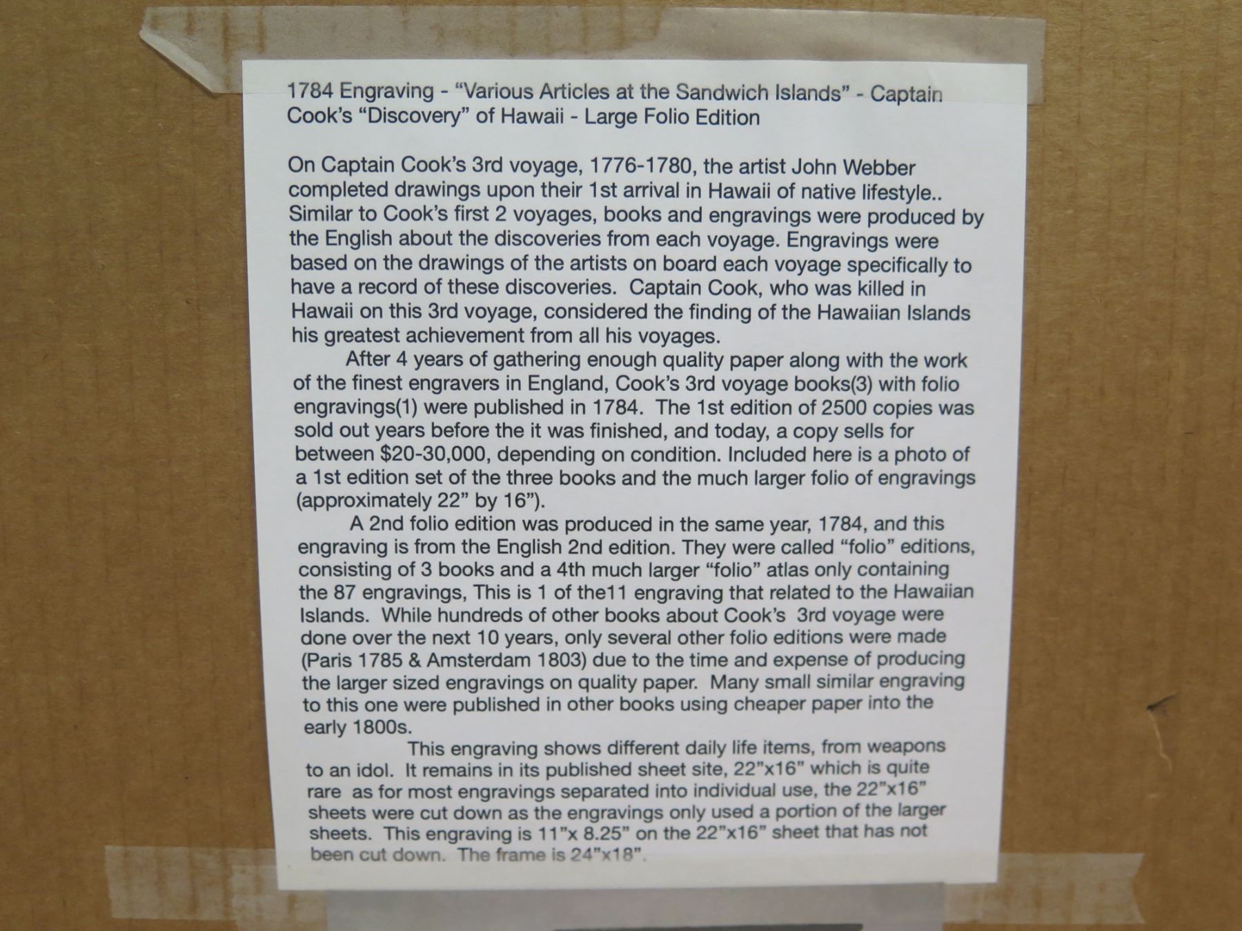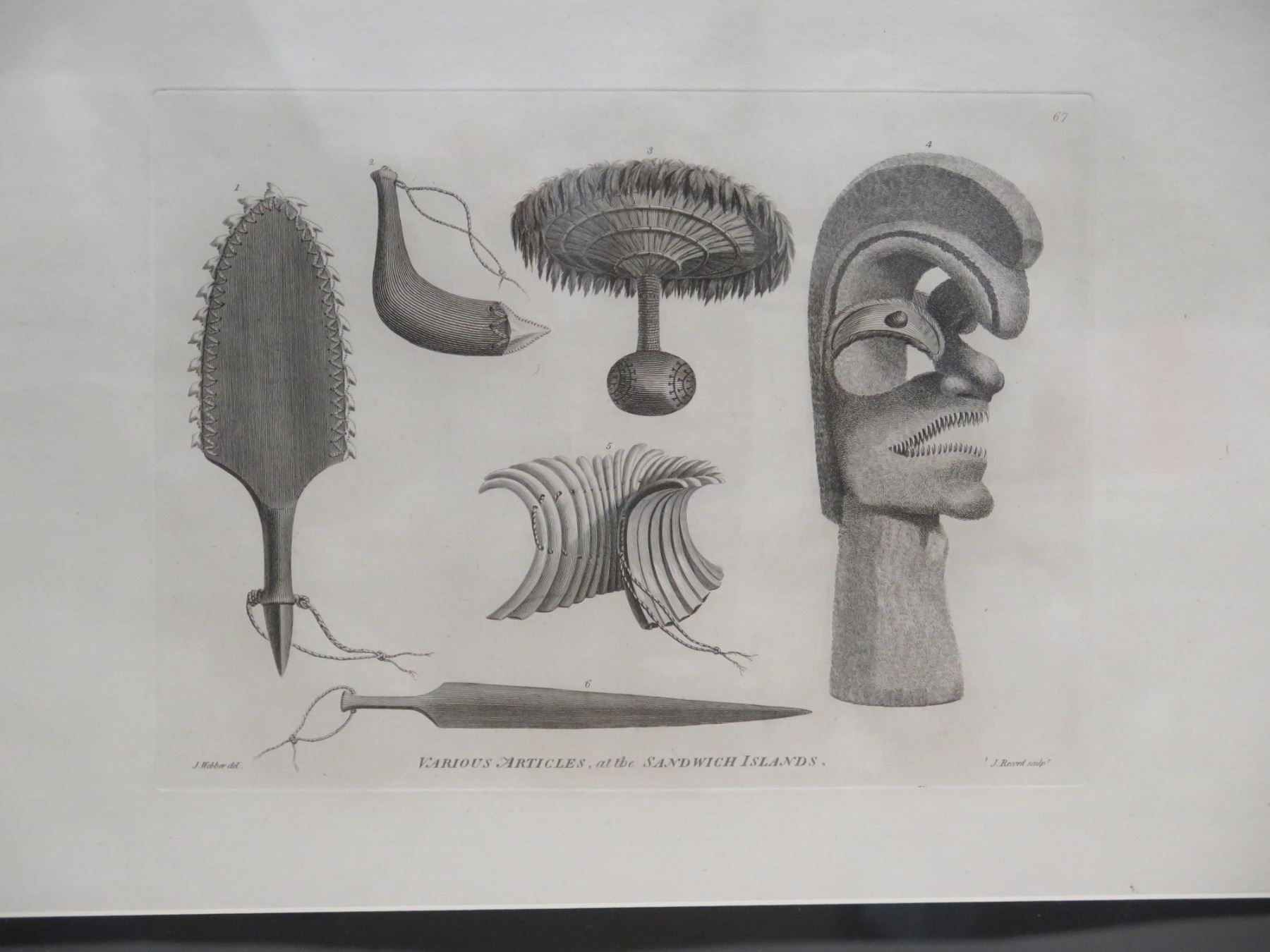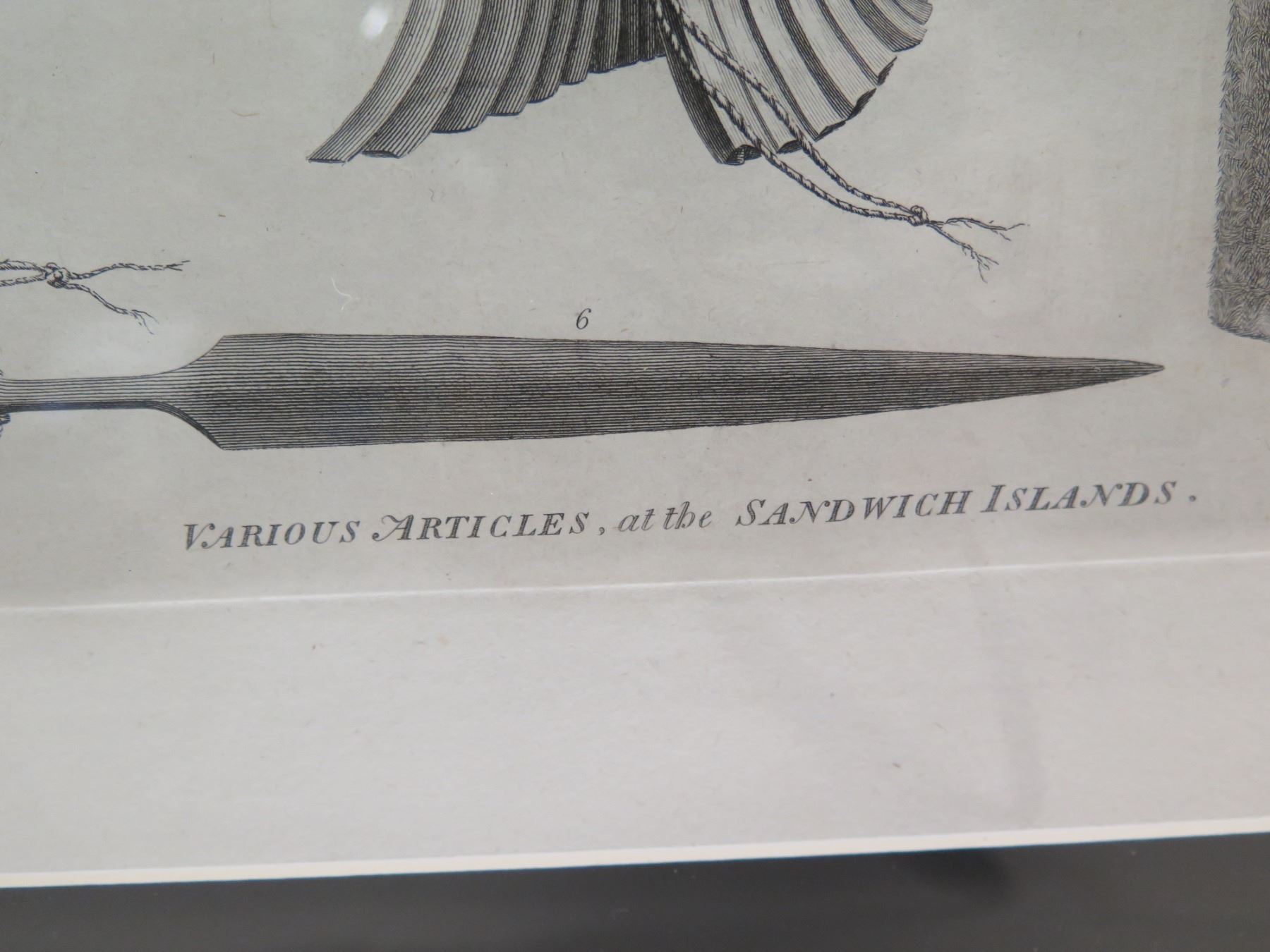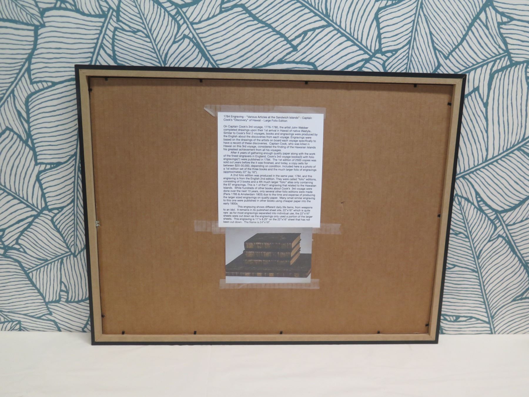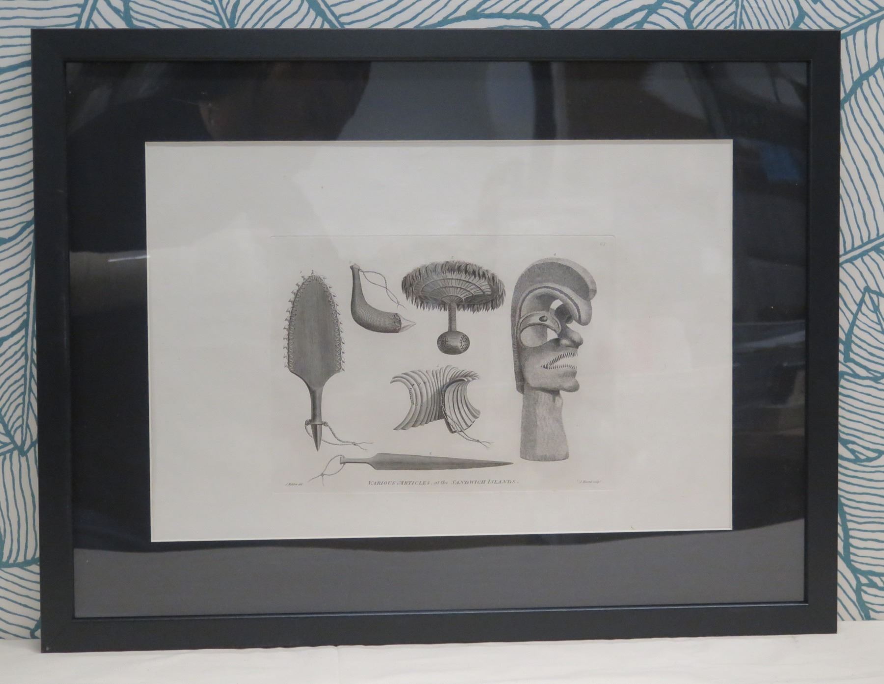 Various Articles at the Sandwich Islands 1784 Folio Engraving, Framed, 25.5"x20"