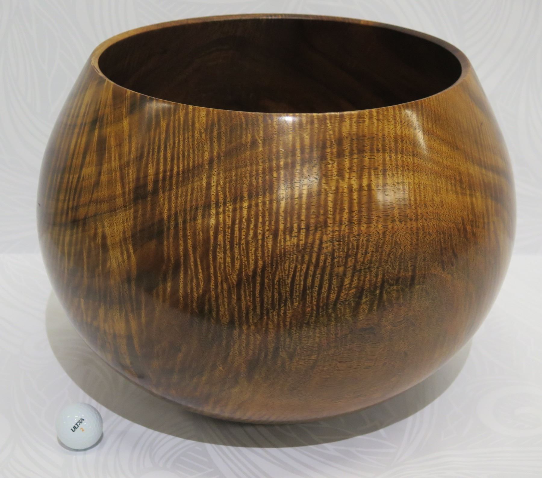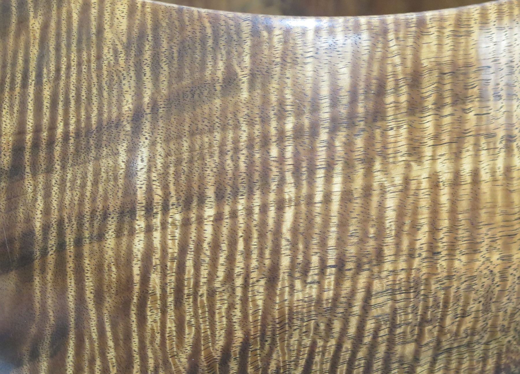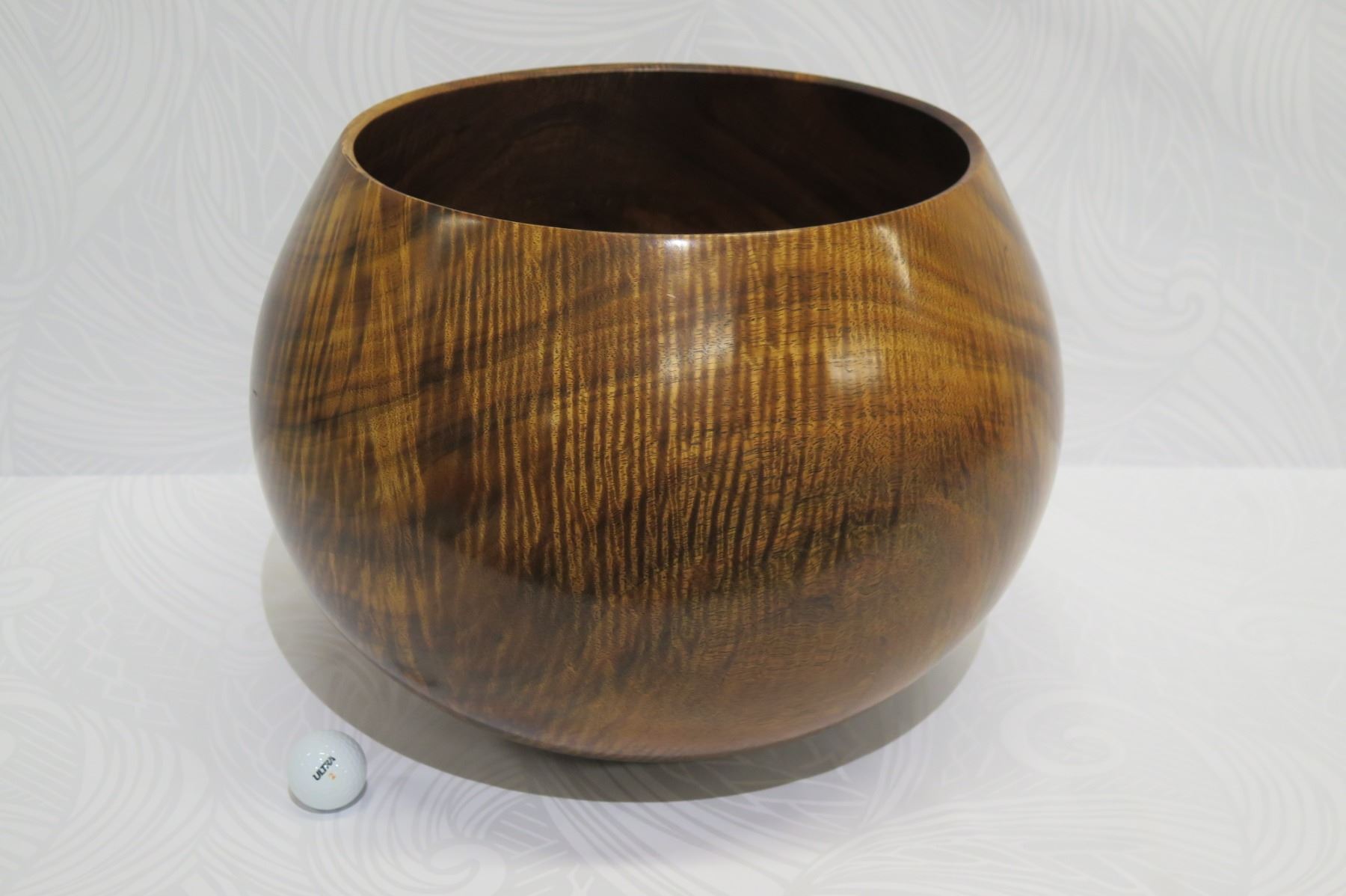 Very Large Curly Koa Wood Bowl, Artist Robert W. Butts, Approx. 13" Dia (top), 14.5" Tall