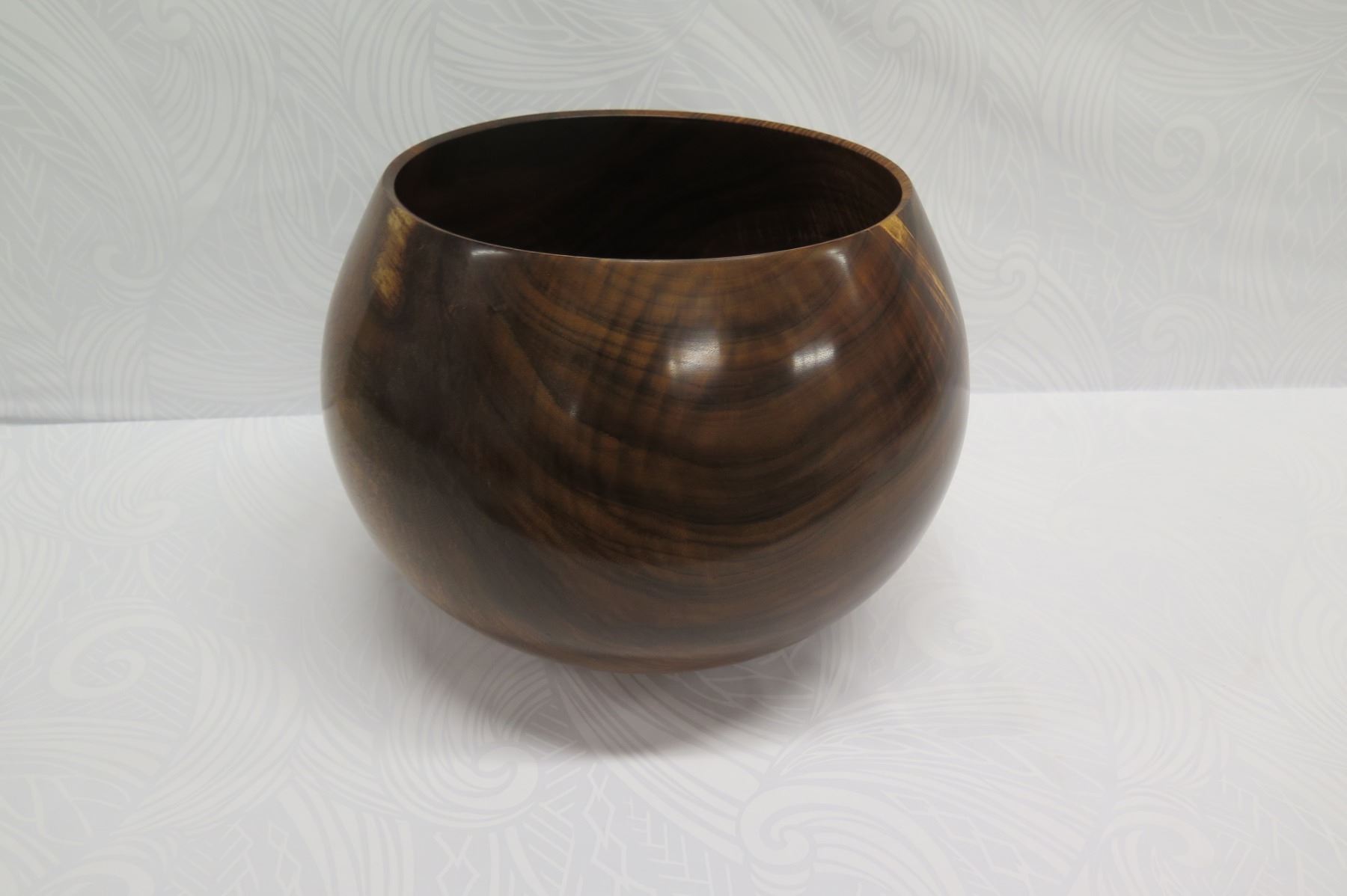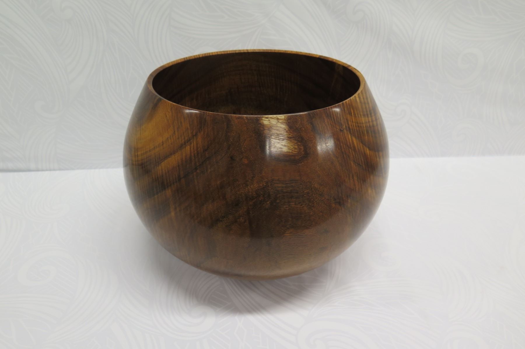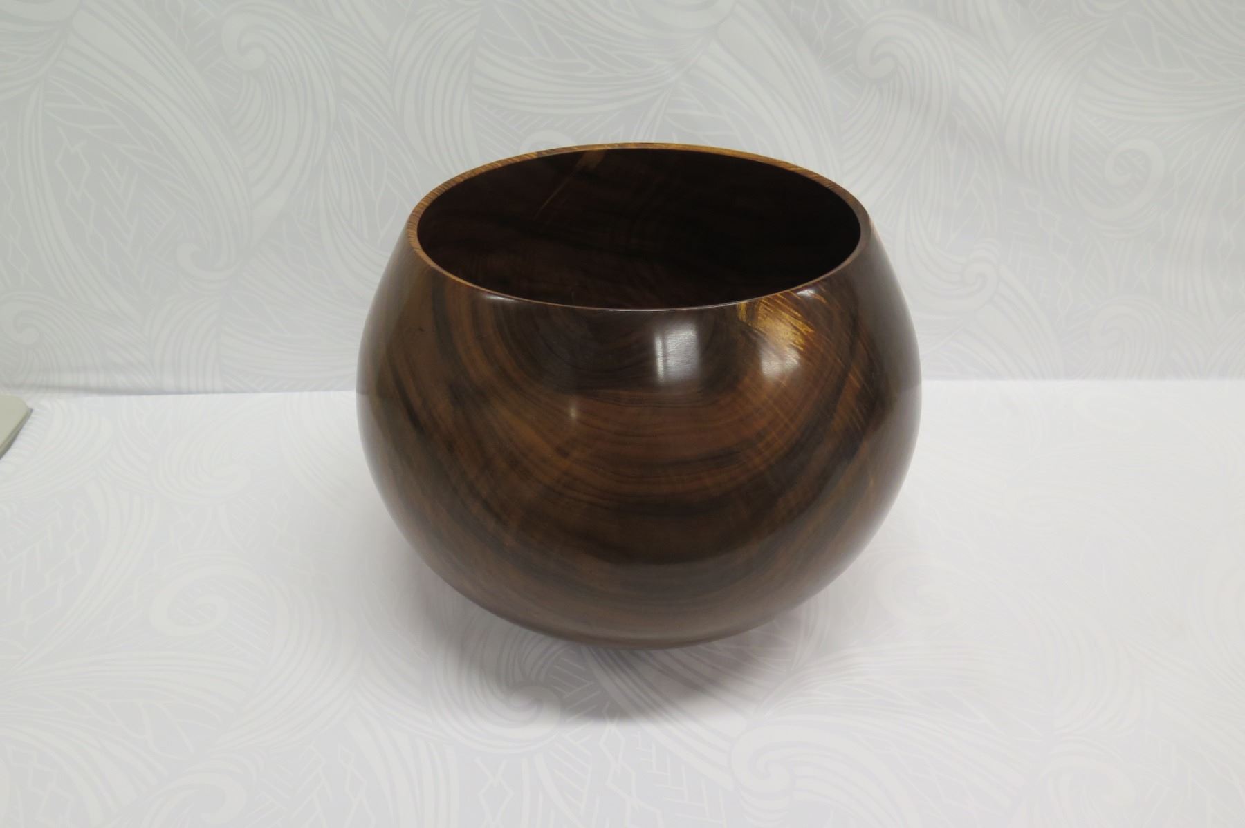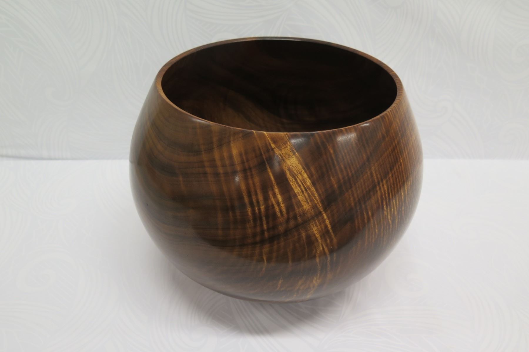 Very Large Curly Koa Wood Bowl, Artist Robert W. Butts, Approx. 13" Dia (top), 14.5" Tall