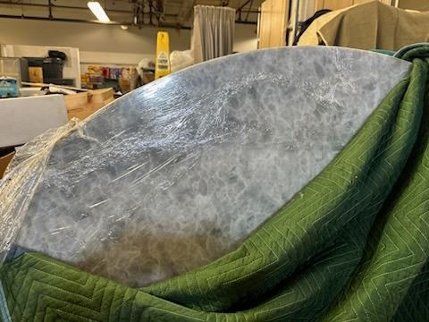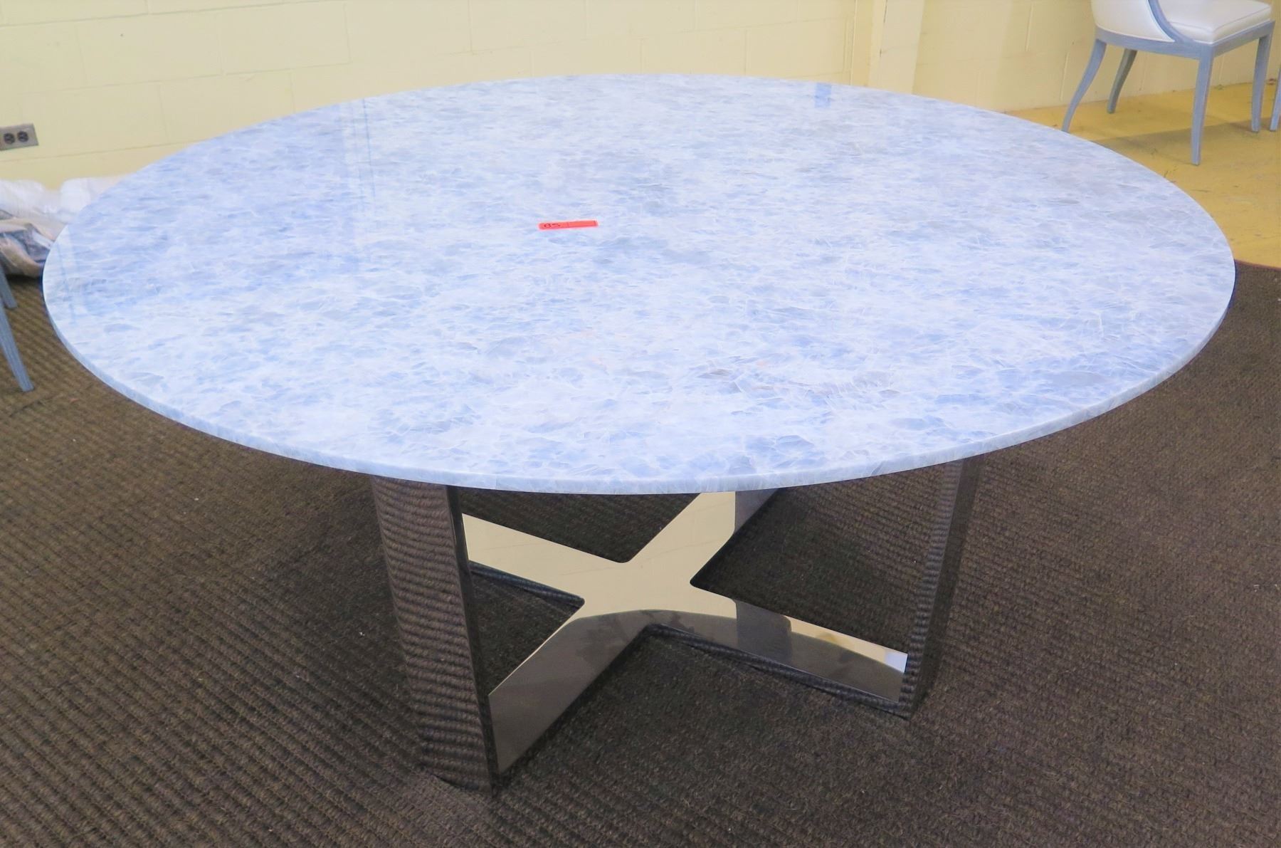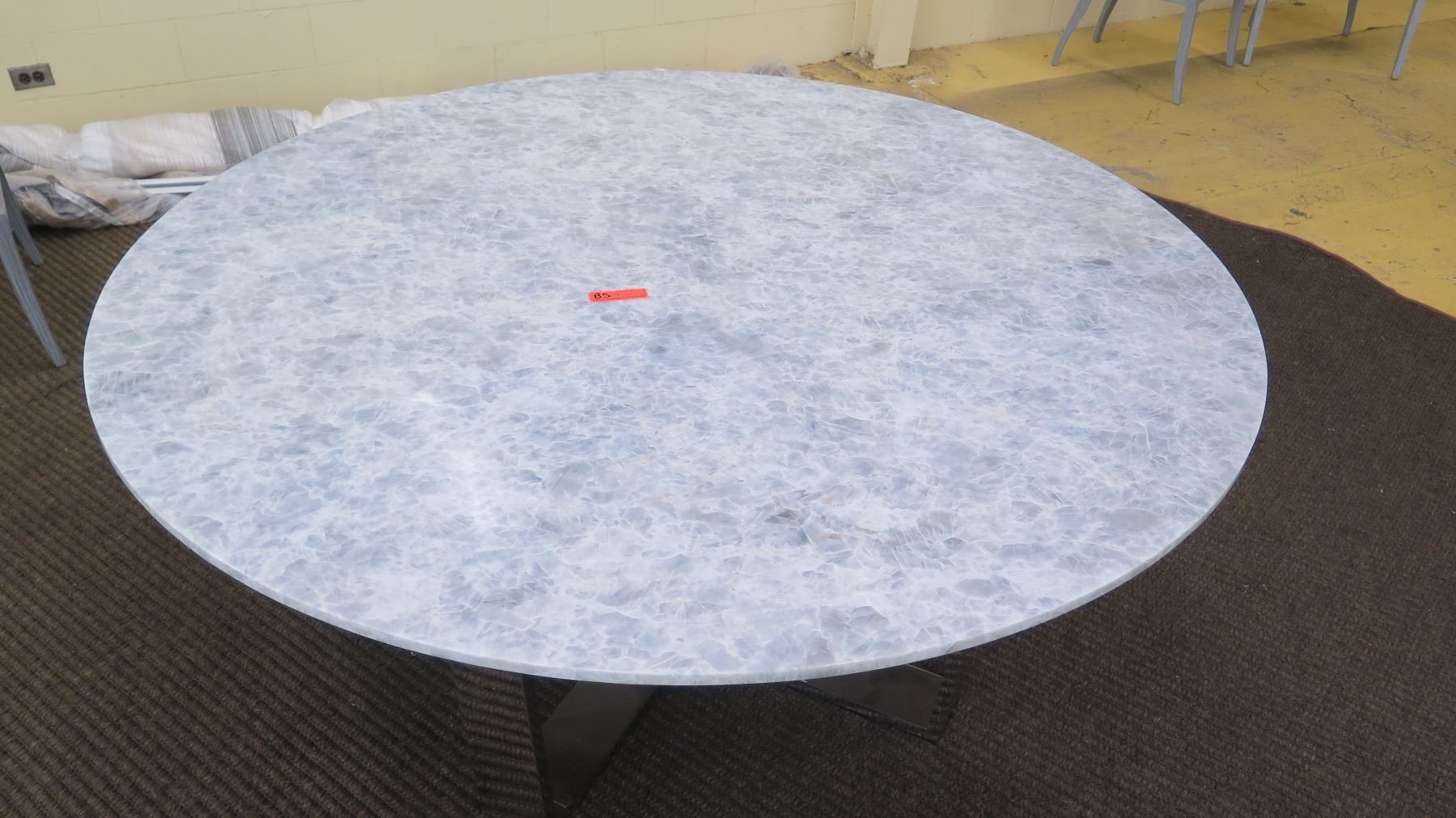 Very Large Marble-Top Round Table, Gray/White, Chrome Base, 68" Dia.