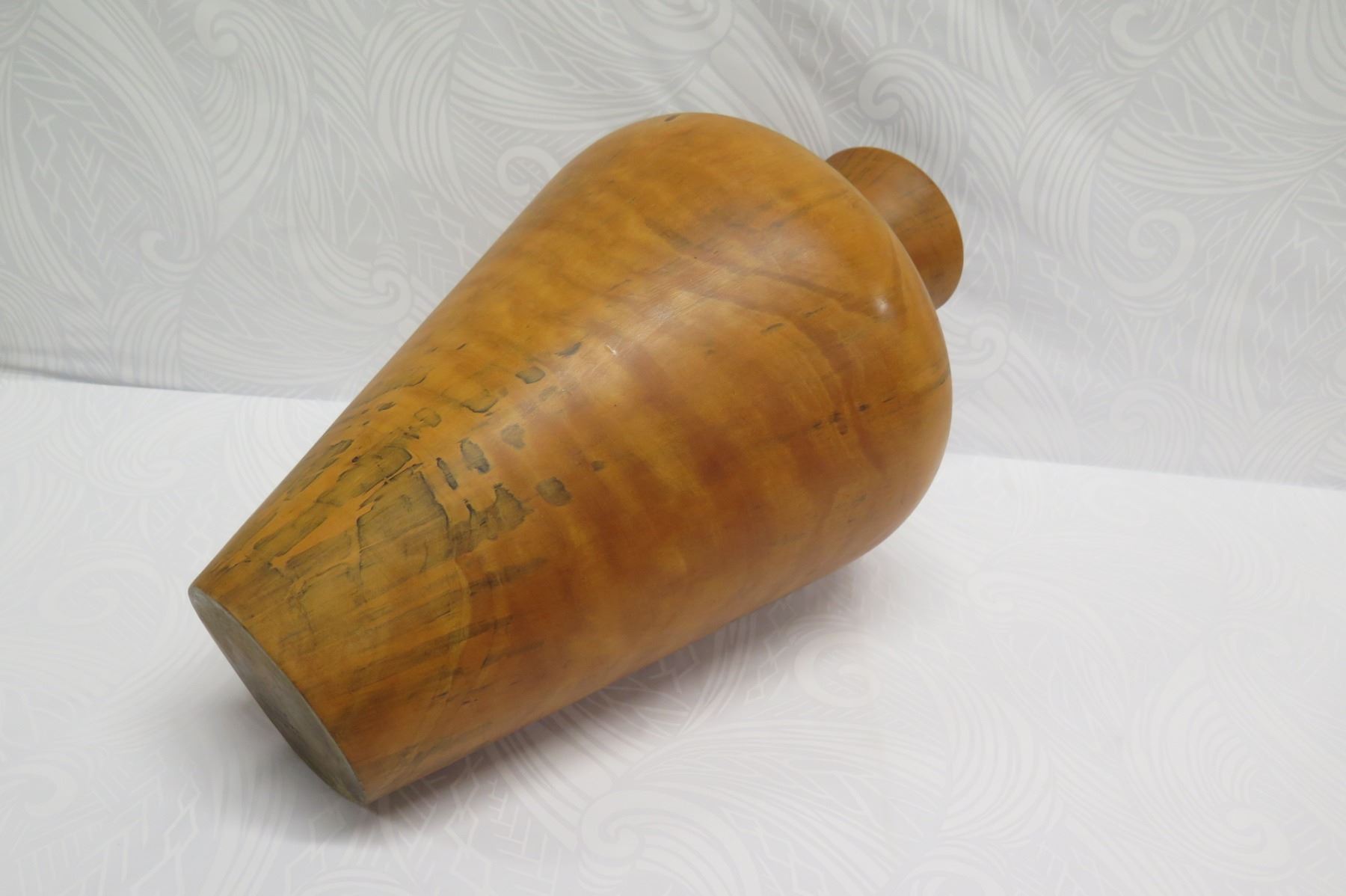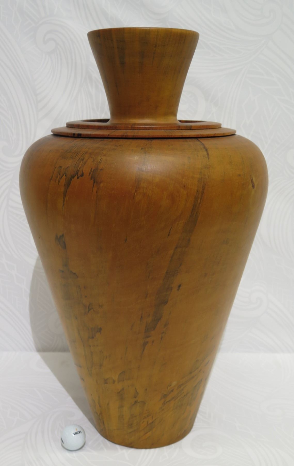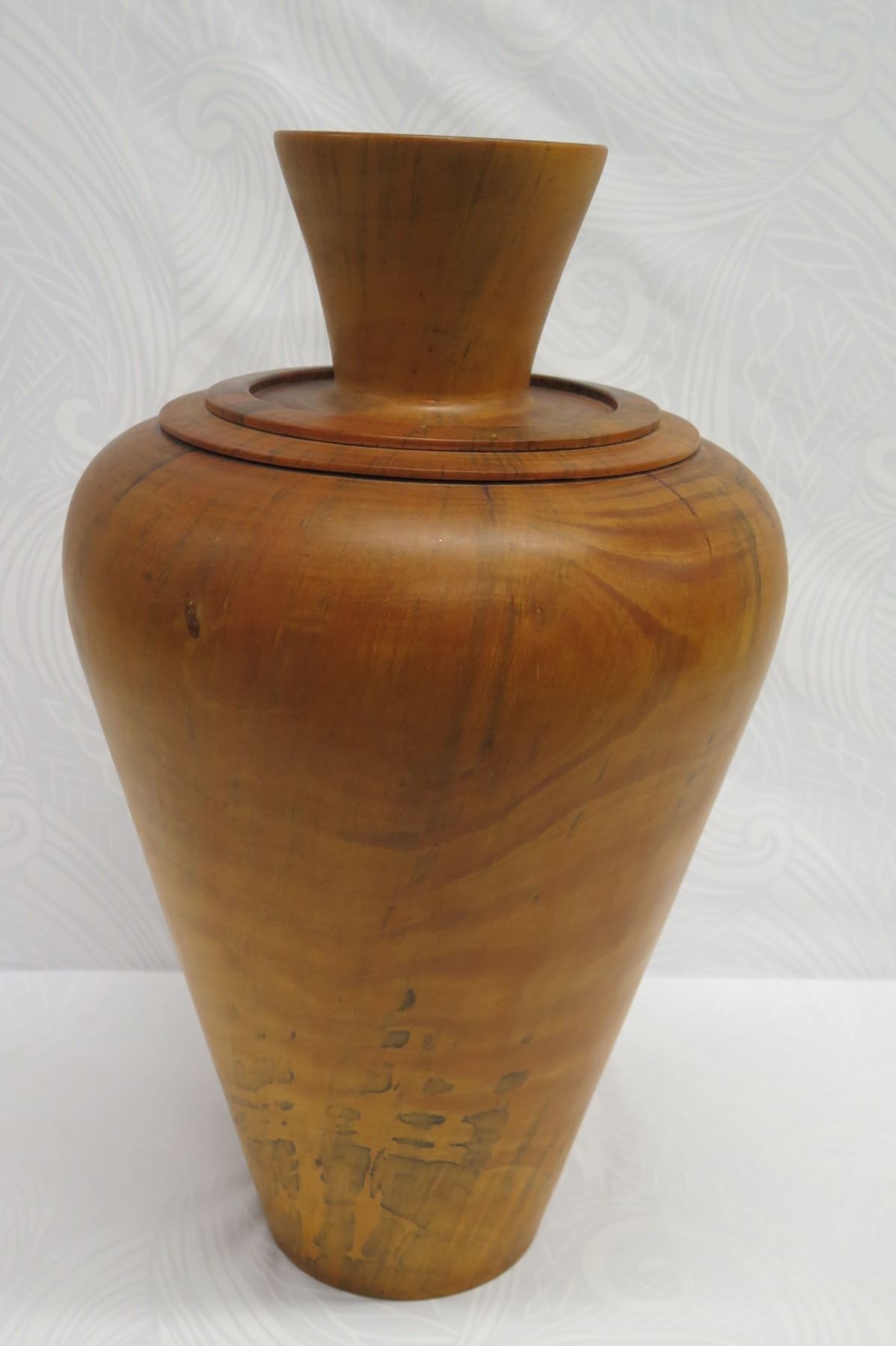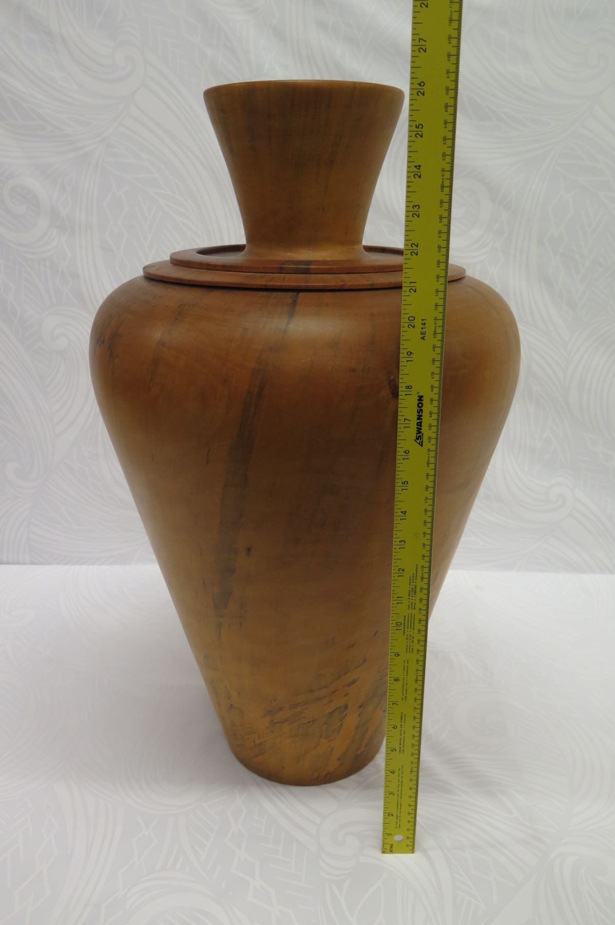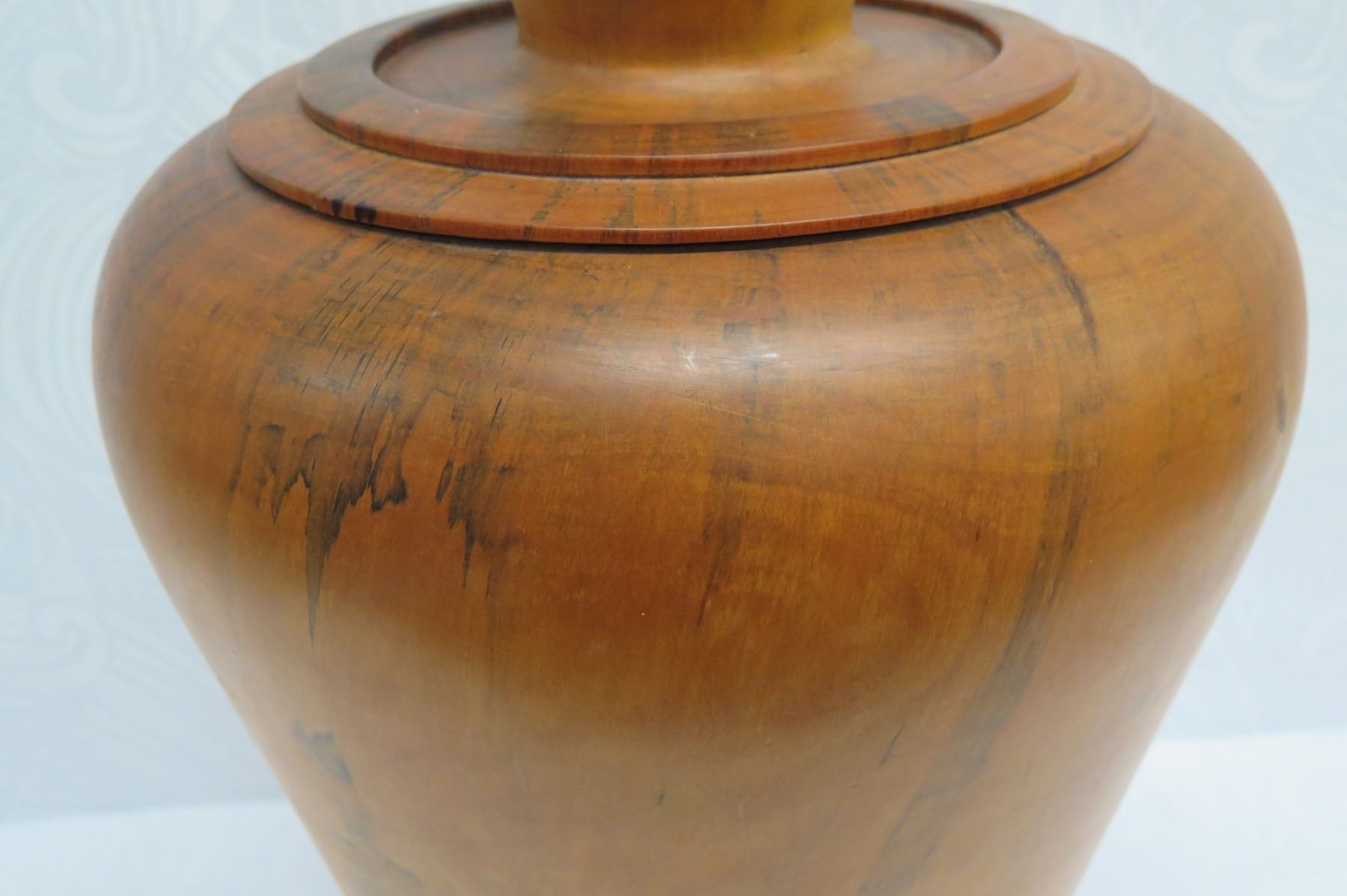 Very Large Tall Norfolk Pine Wood Vessel with Lid, Tapered Base, Artist-Signed 2011, Approx. 26" Tall, 14" Dia.