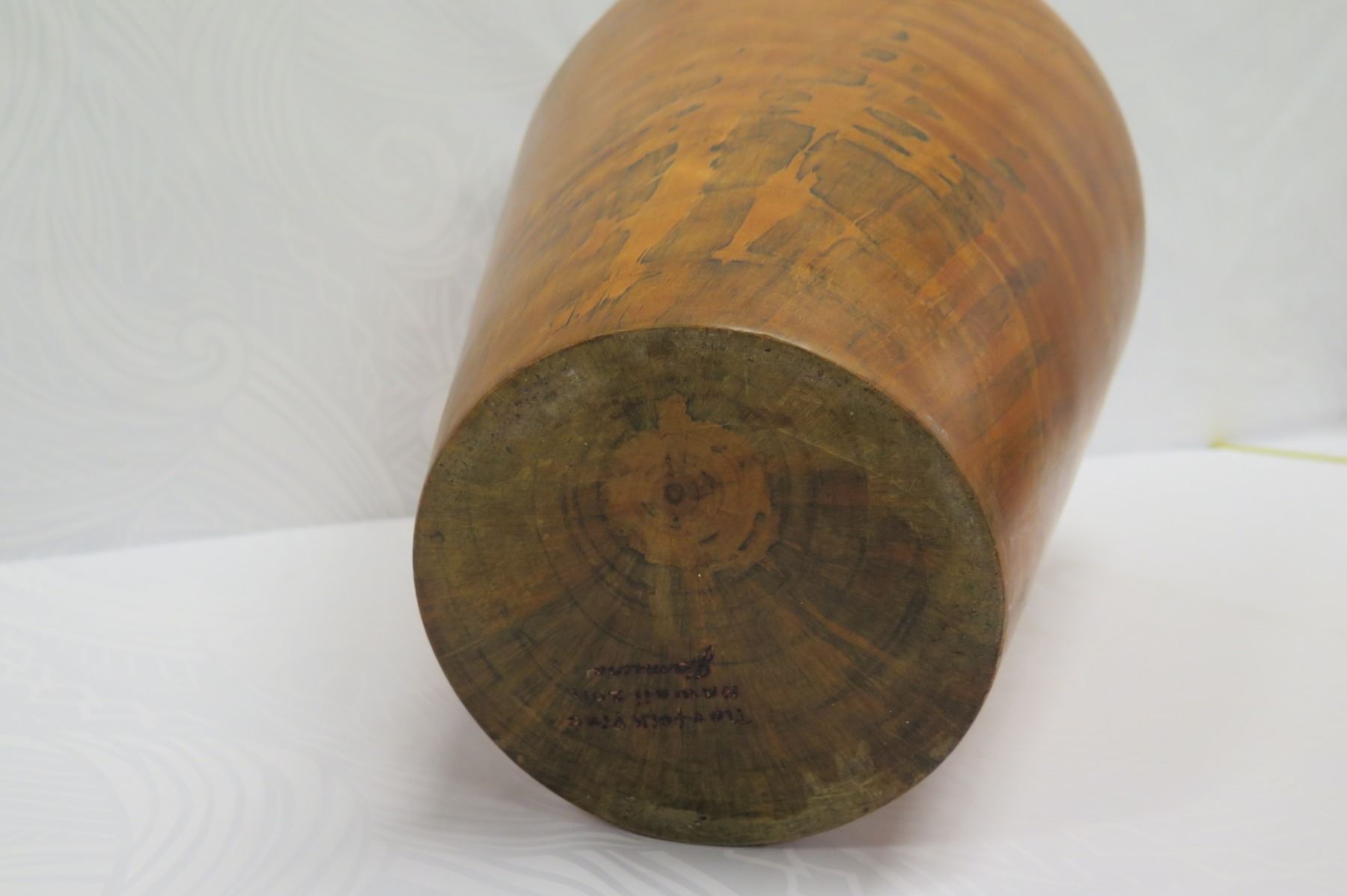 Very Large Tall Norfolk Pine Wood Vessel w/Lid, Tapered, Artist-Signed 2011, Approx. 26" H, 14" Dia