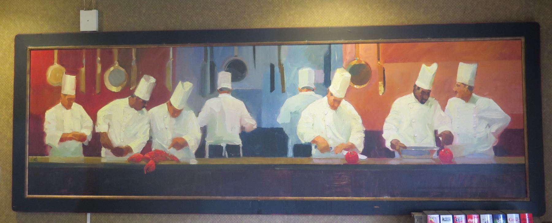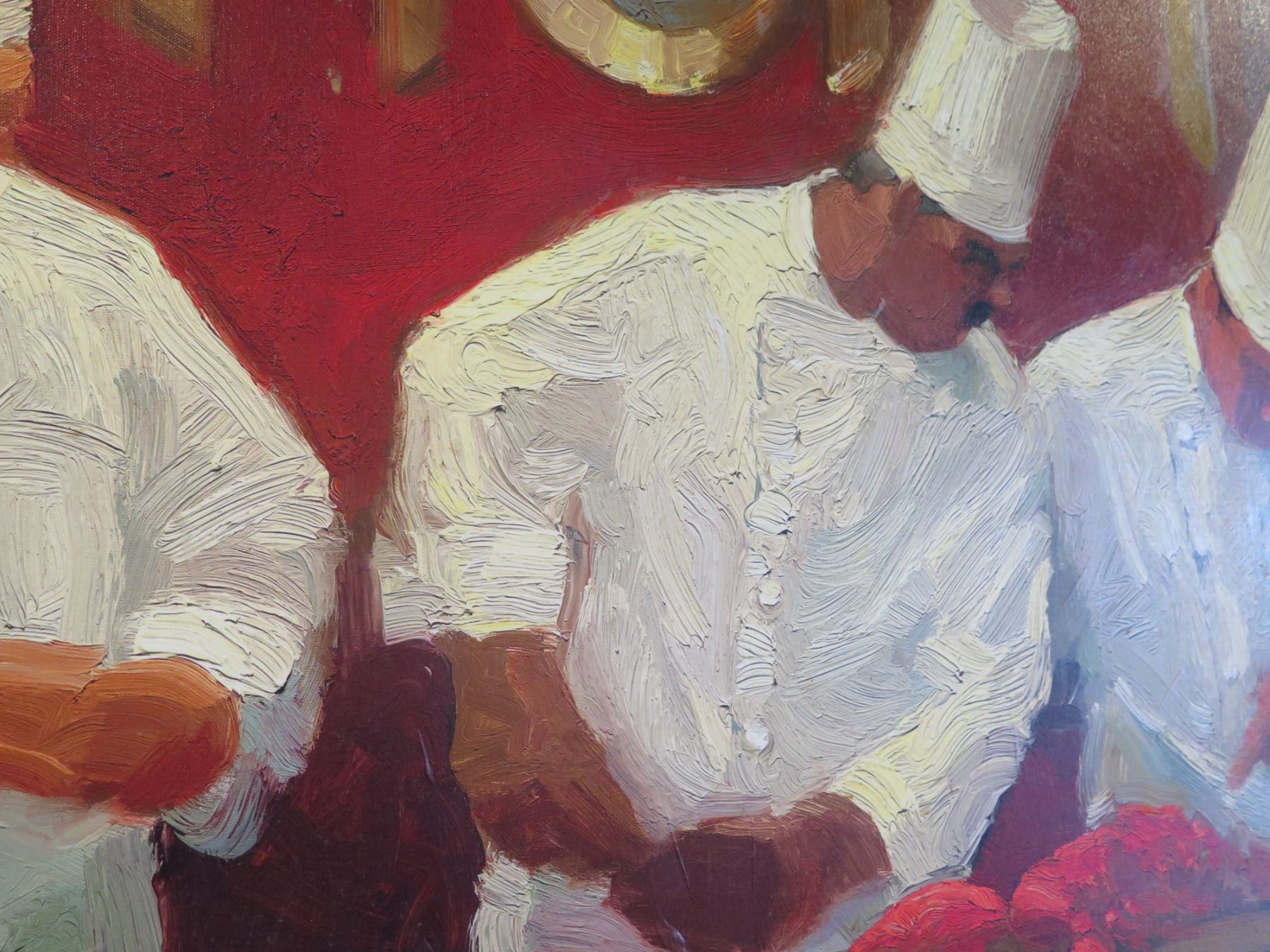 Very Large Wood-Framed Embellished Giclee Canvas Artwork: Chefs, 120" x 42"