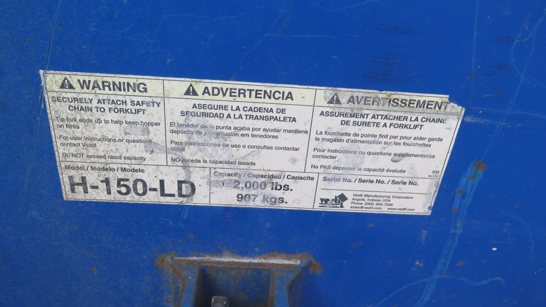 Vestil Self-Dumping Hopper w/Wheels, Model H-150-LD, 49"L x 46.5"W x 43.5"H