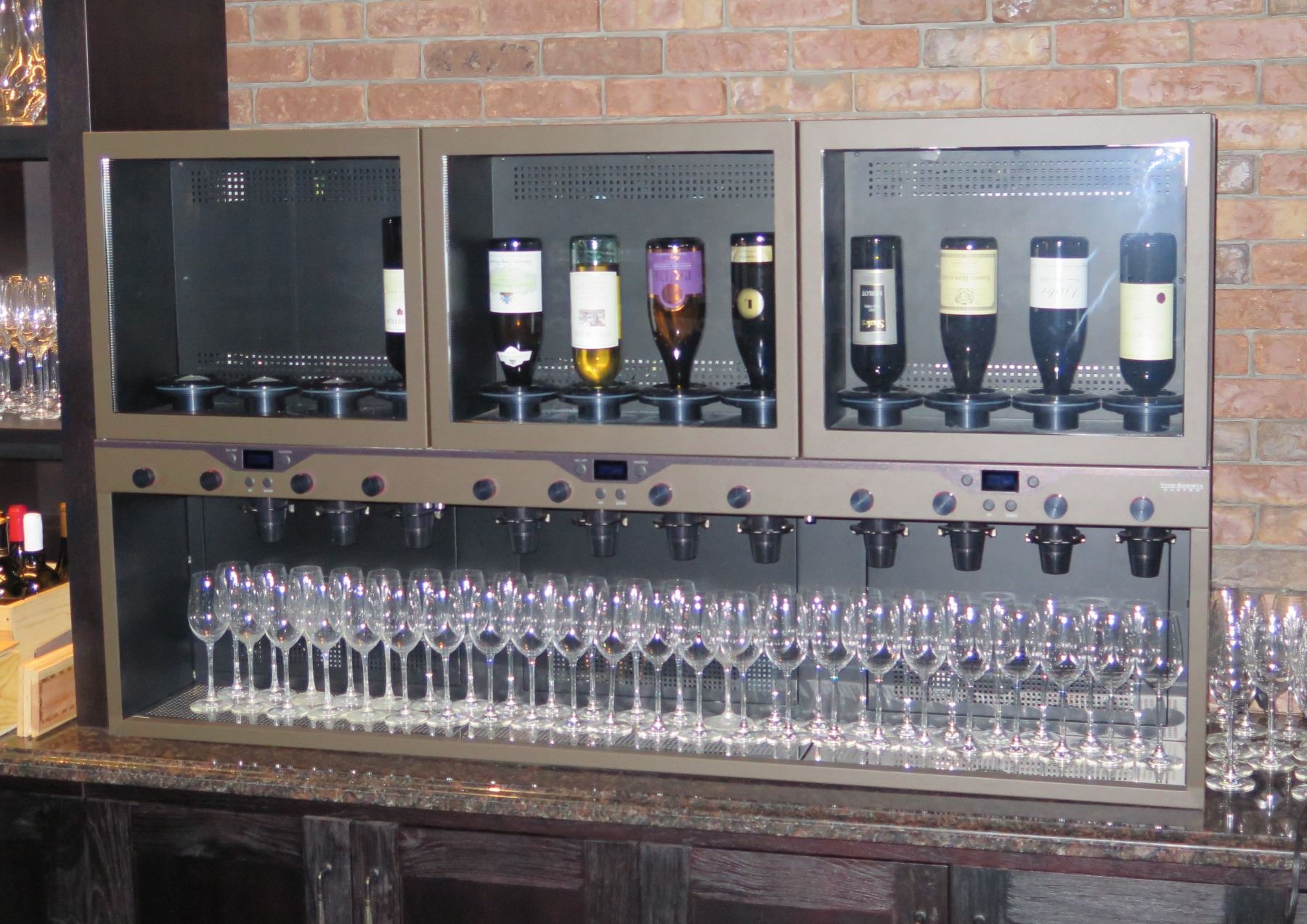 Vino-Barista Custom 12-Bottle Wine Dispenser System. This system has not been disconnected. Buyer will be responsible for de-installation and removal. This is a fragile and heavy unit. Hiring a professional mover is reccommended.