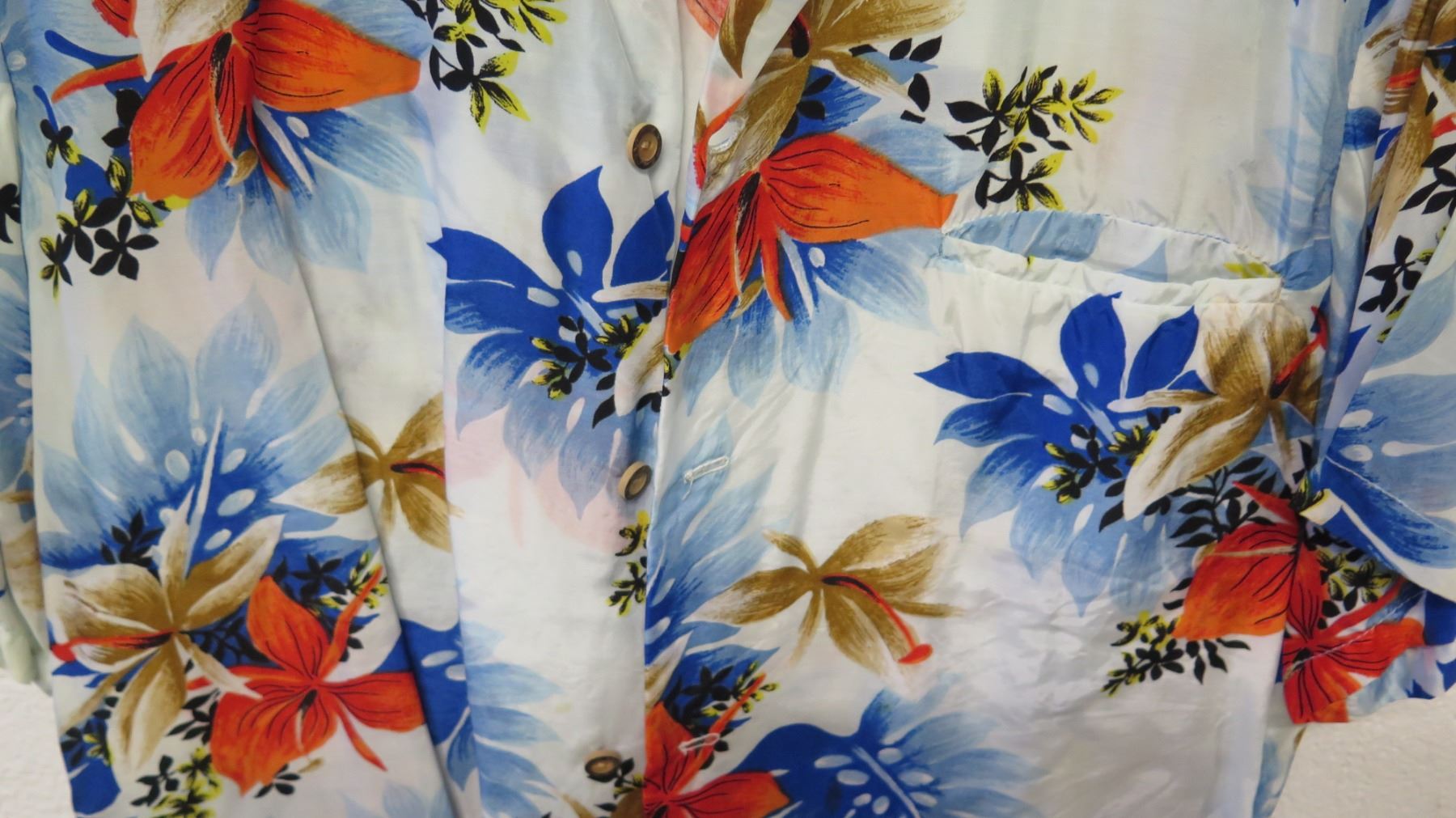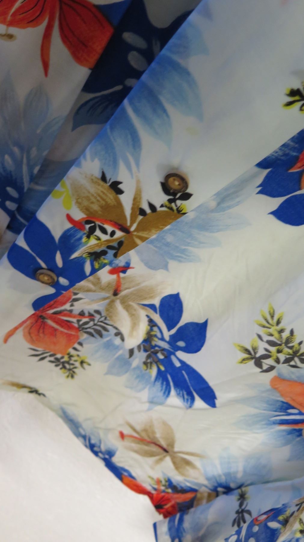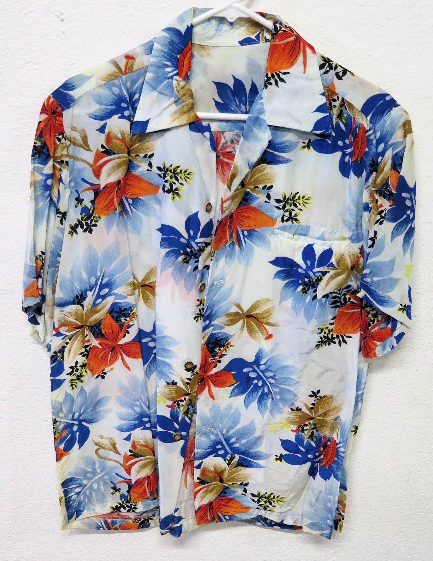 Vintage Aloha Shirt - Blue & Red Floral Print, No Tags, Size Unknown